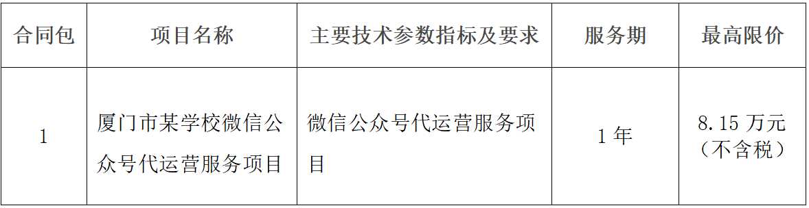 福建广电网络融媒体科技有限责任公司对厦门市某学校微信公众号代运营服务项目下述内容进行询价。欢迎国内合格报价人对该询价服务进行密封报价。
