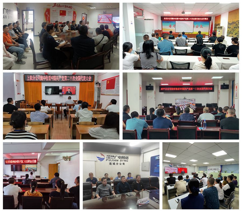 全体党员干部职工认真聆听了习近平总书记代表第十九届中央委员会向党的二十大所作的主题为“高举中国特色社会主义伟大旗帜,全面贯彻新时代中国特色社会主义思想,弘扬伟大建党精神,自信自强、守正创新,踔厉奋发、勇毅前行,为全面建设社会主义现代化国家、全面推进中华民族伟大复兴而团结奋斗”的报告,认真学习领会了党的二十大精神。通过观看,全体党员干部职工深受鼓舞,倍感振奋,纷纷表示要认真学习贯彻党的二十大精神,充分认识党的二十大的重大意义,深刻理解把握习近平总书记所作报告的丰富内涵和精神实质,深刻领悟“两个确立”的决定性意义,不断增强“四个意识”、坚定“四个自信”、做到“两个维护”,紧密团结在以习近平同志为核心的党中央周围,提高政治站位,勇于担当作为,立足本职岗位,踔厉奋发、奋勇争先,切实把思想和行动统一到学习贯彻落实党的二十大精神上来,把力量凝聚到实现党的二十大确定的目标任务上来,为推动广电网络事业高质量发展凝心聚力、砥砺前行,不断做出新的更大贡献!