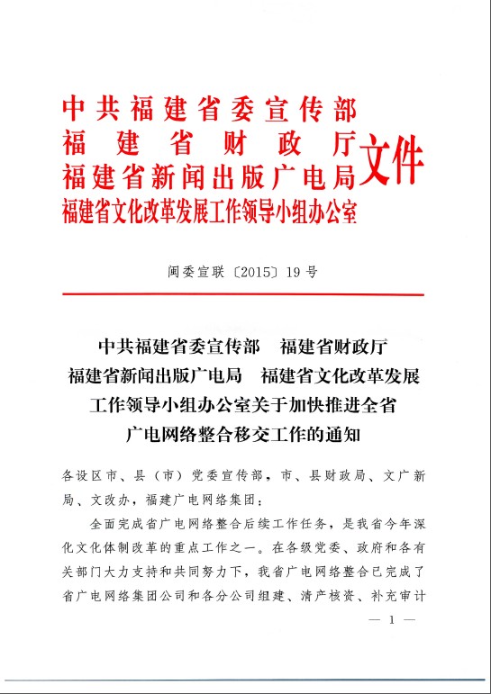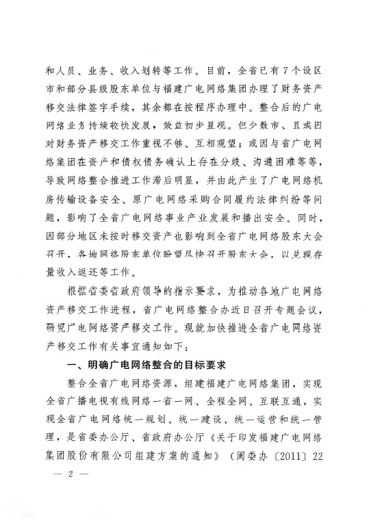 关于加快推进全省广电网络整合移交工作的通知