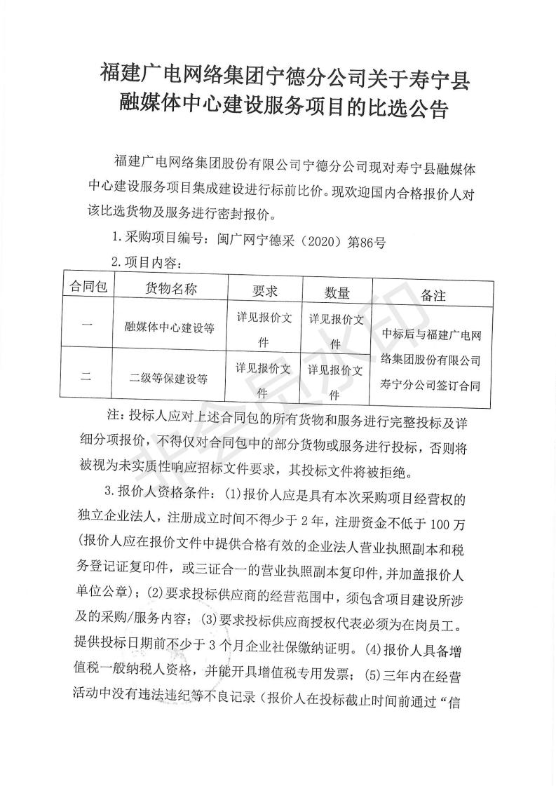 寿宁县融媒体中心建设服务项目的比选公告
