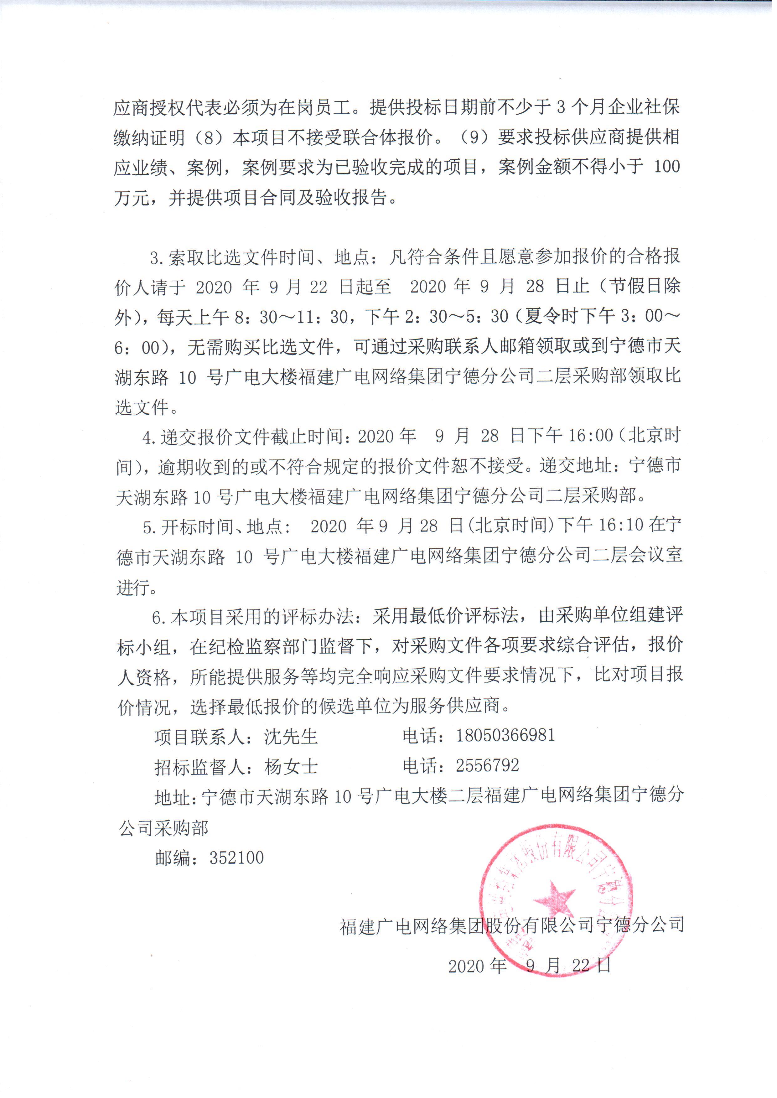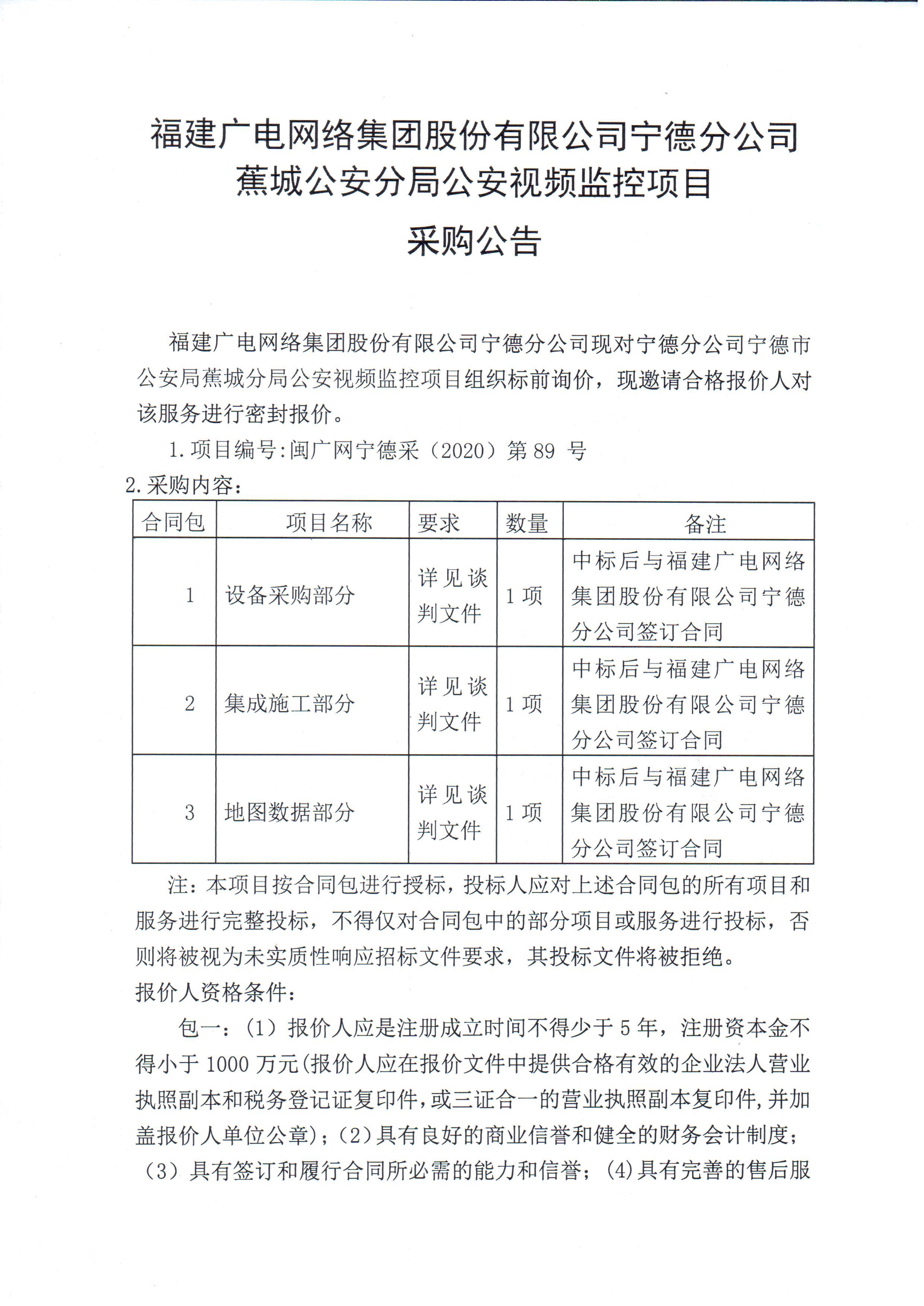 蕉城分公司公安分局公安视频项目采购公告