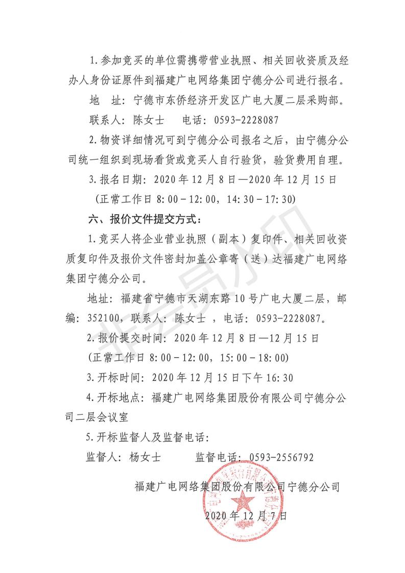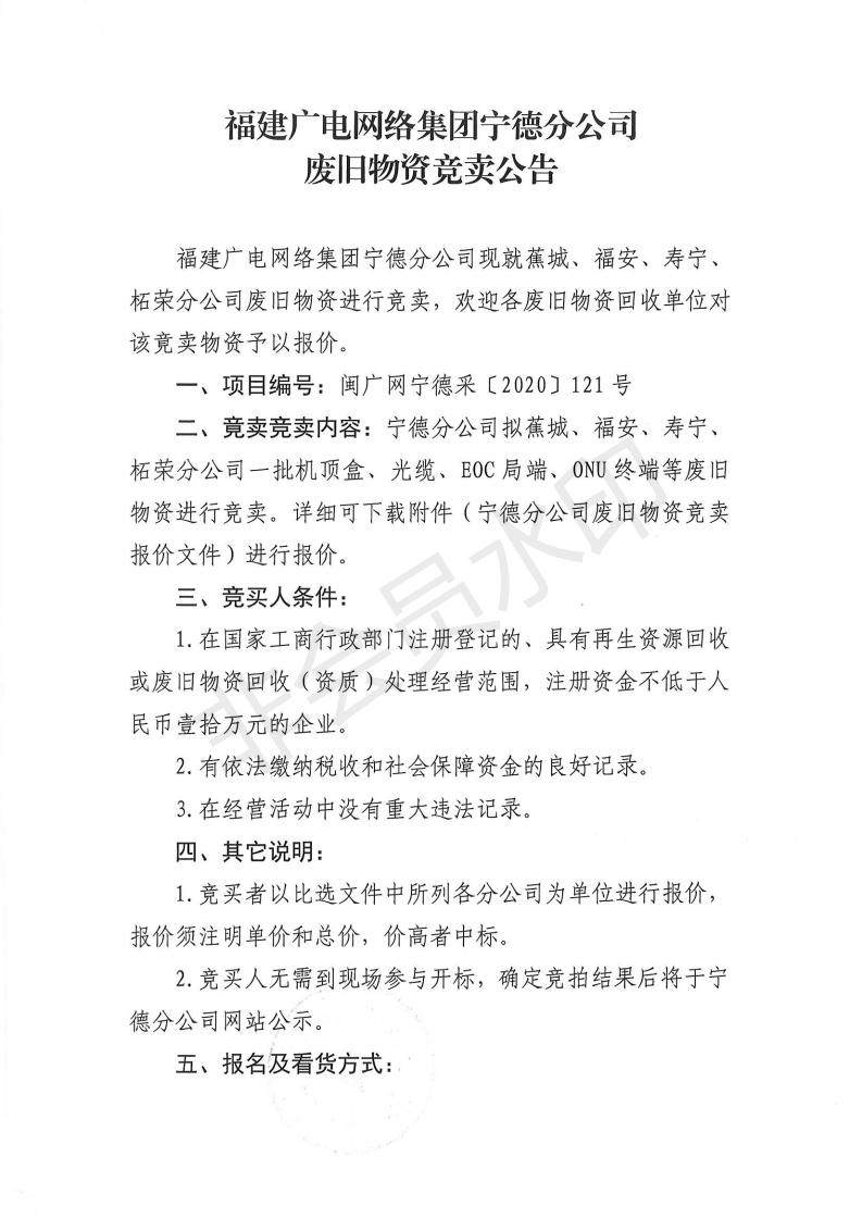 福建广电网络集团宁德分公司废旧物资报废挂网公告