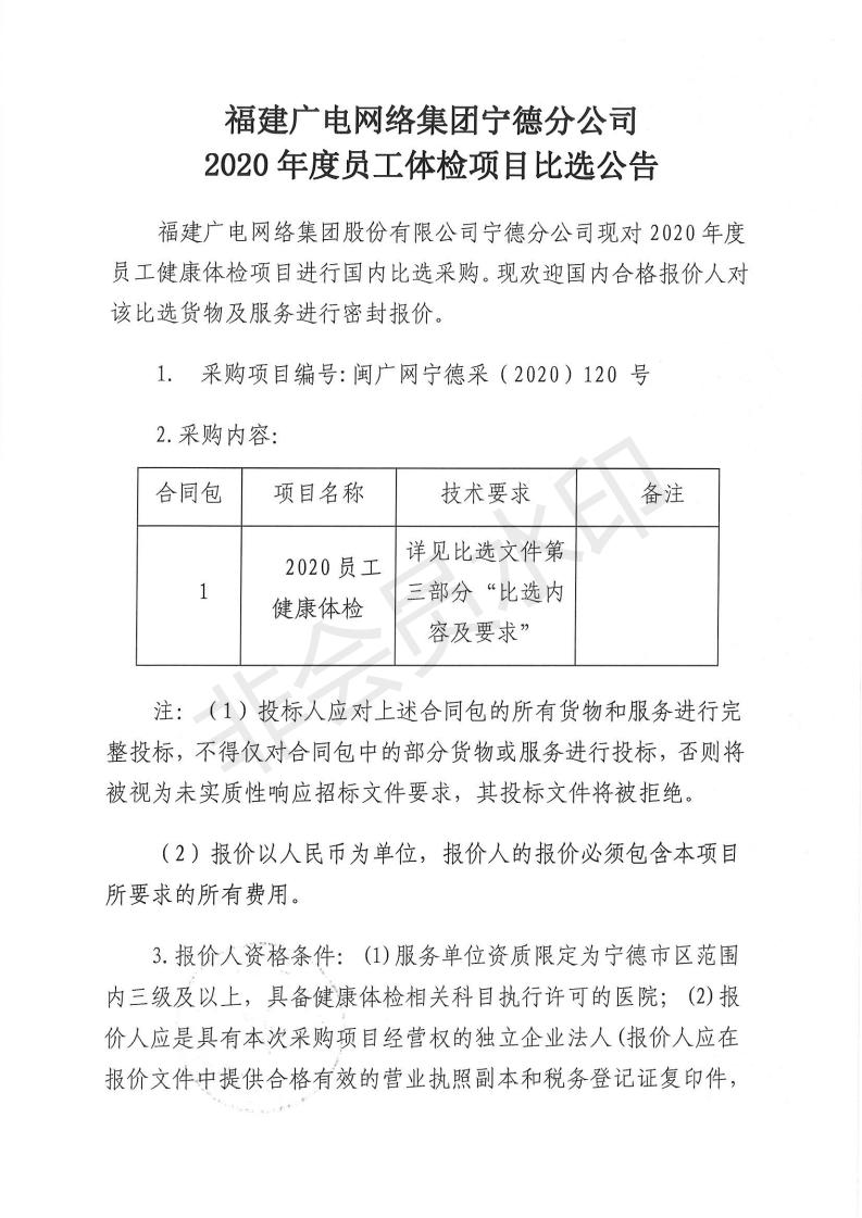 2020年度员工体检项目比选公告