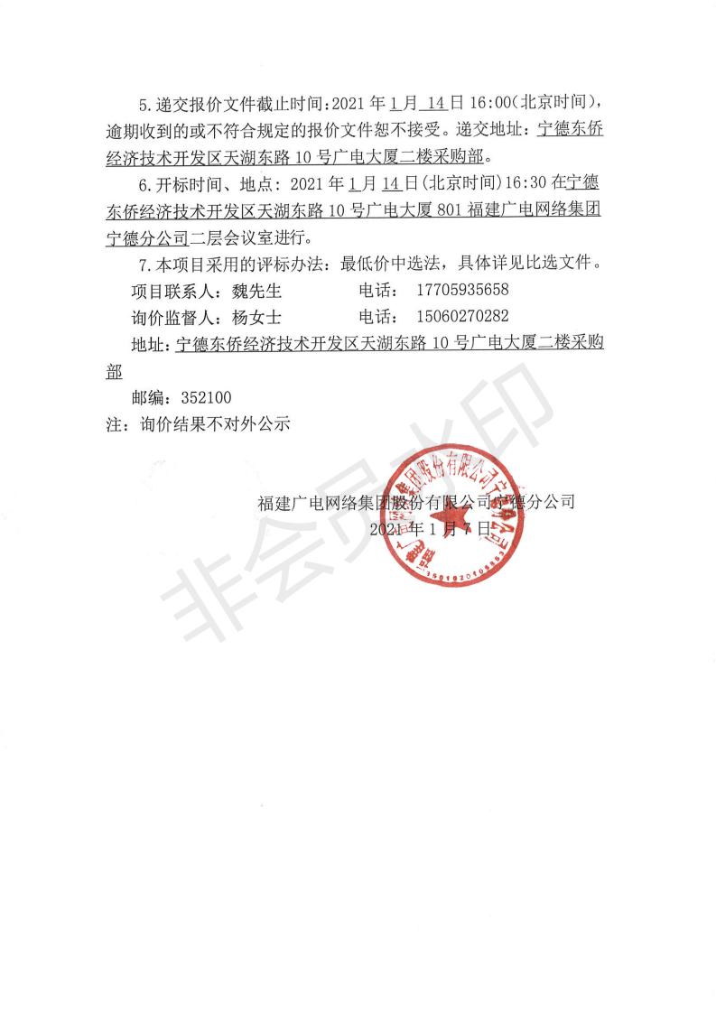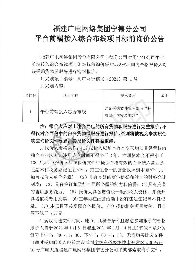 宁德分公司平台前端接入综合布线项目标前询价公告