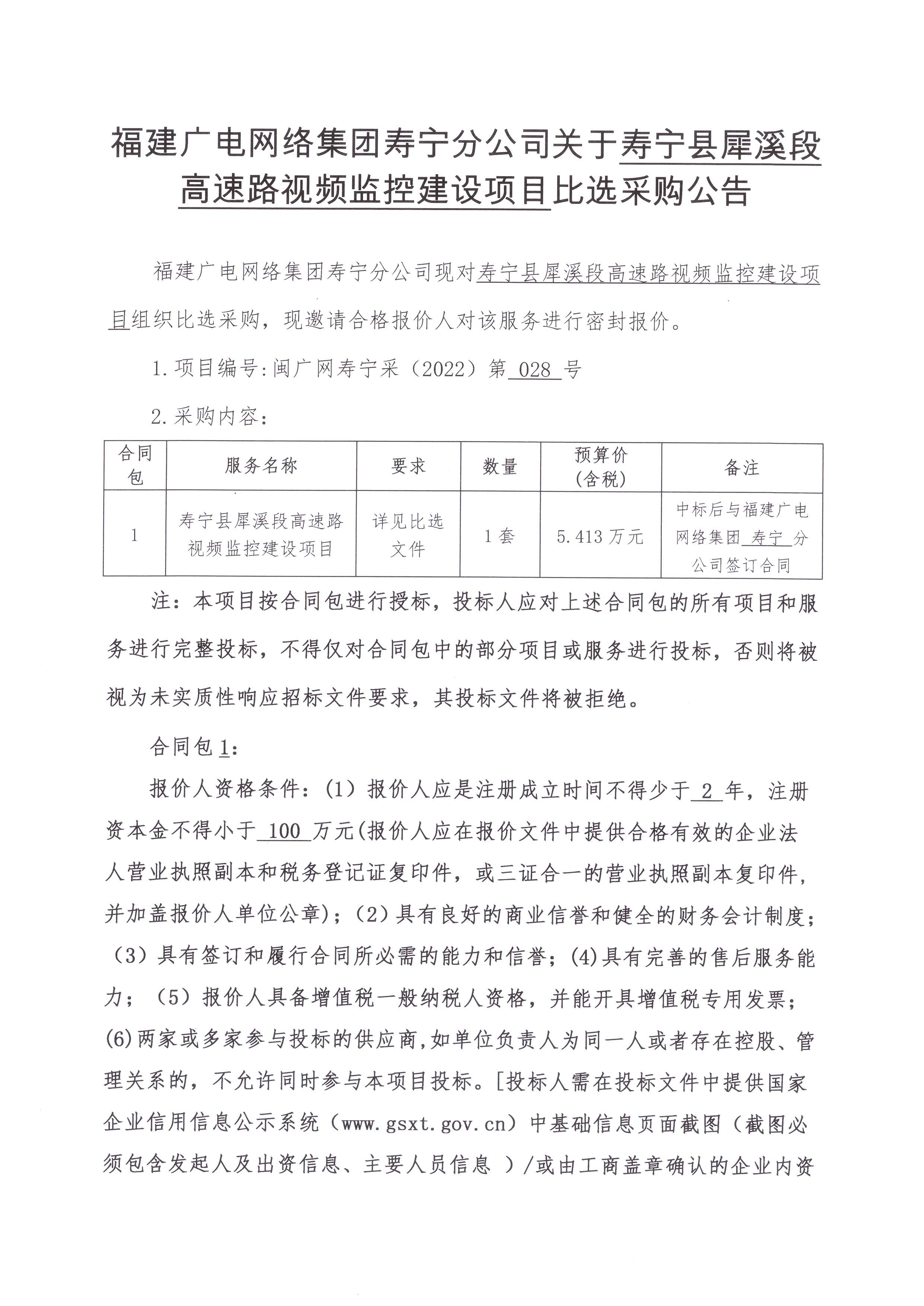 寿宁县犀溪段高速路视频监控建设项目比选采购公告