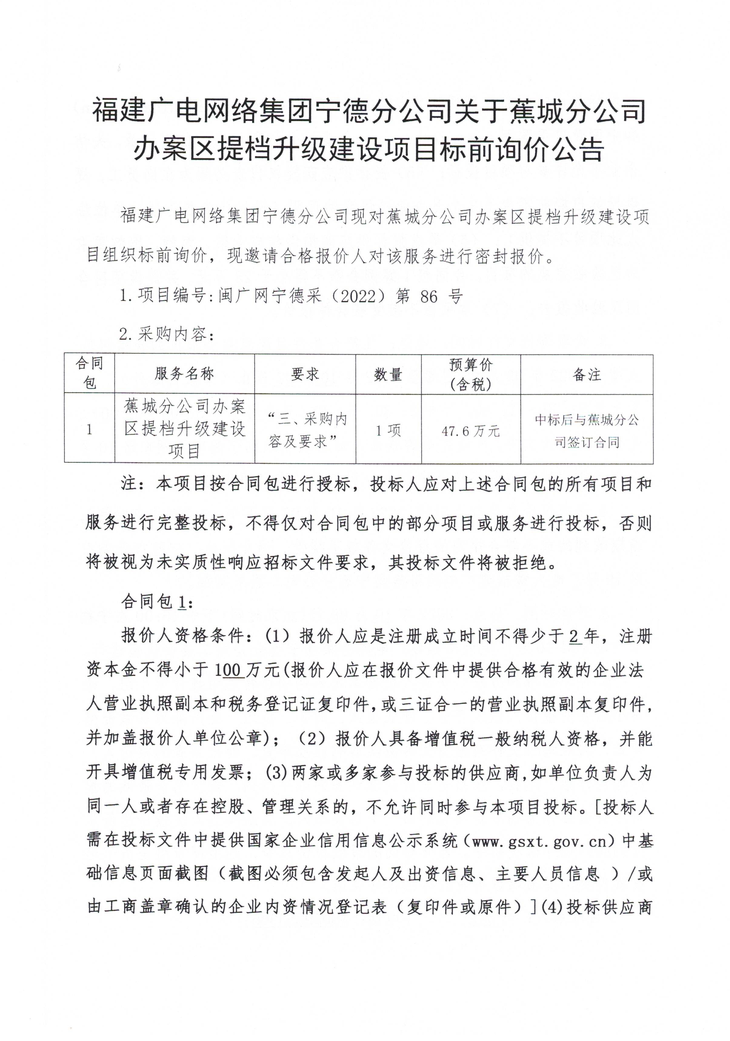 蕉城分公司办案区提档升级建设项目标前询价公告