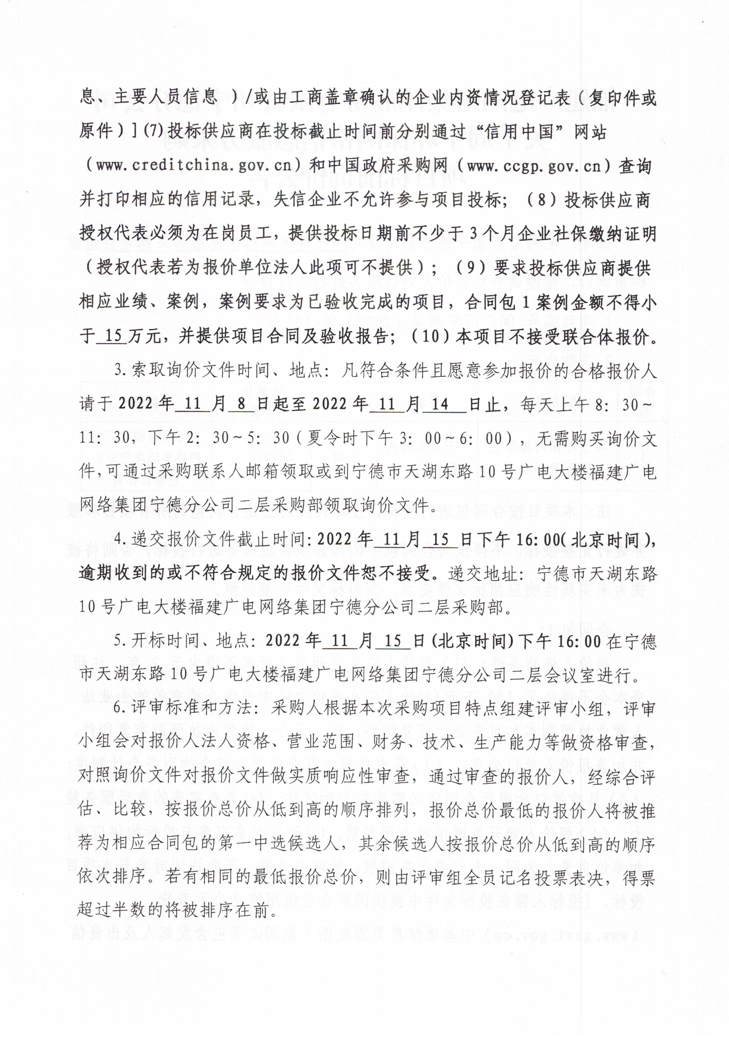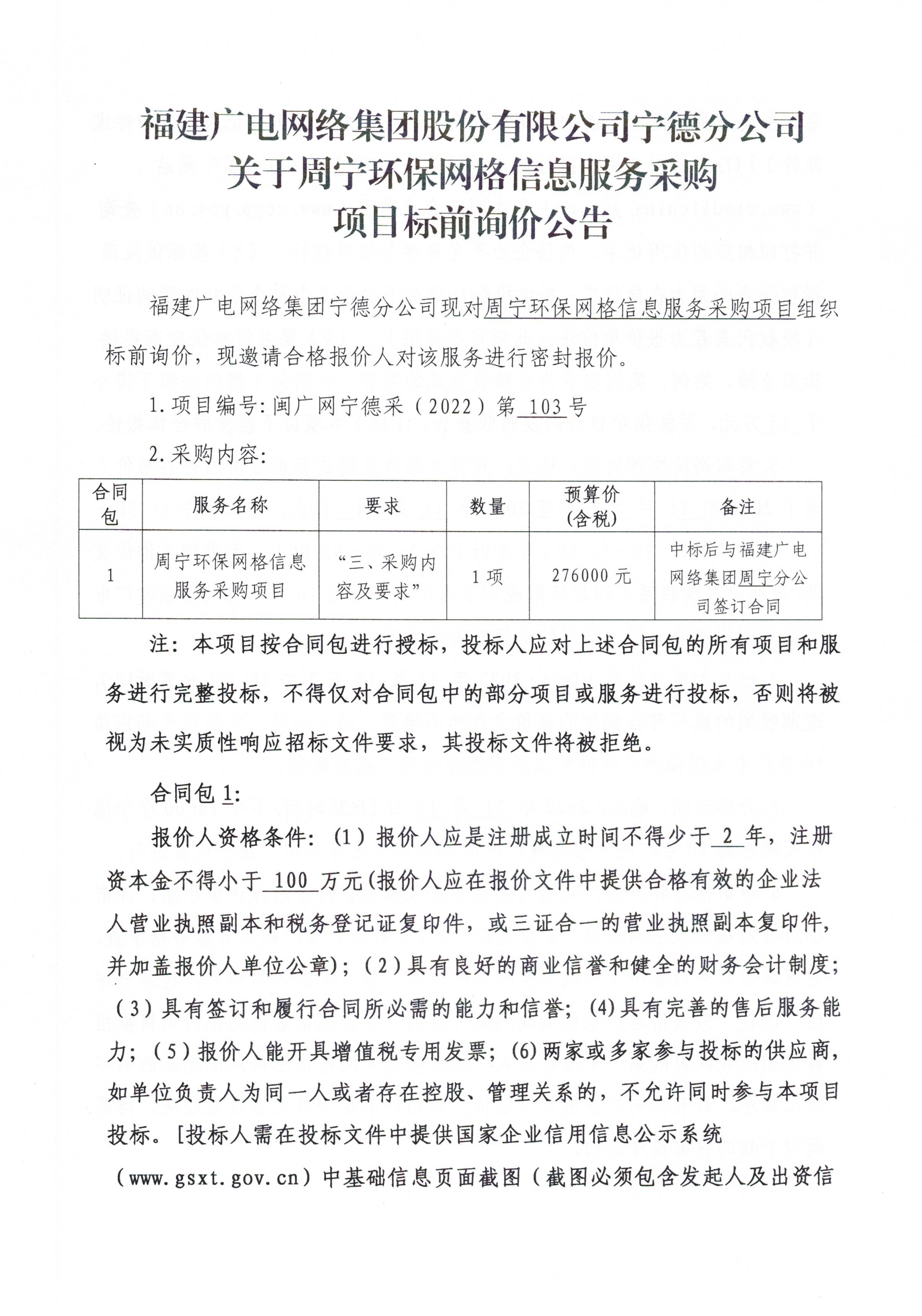 宁德分公司关于周宁环保网络信息服务采购项目标前询价公告