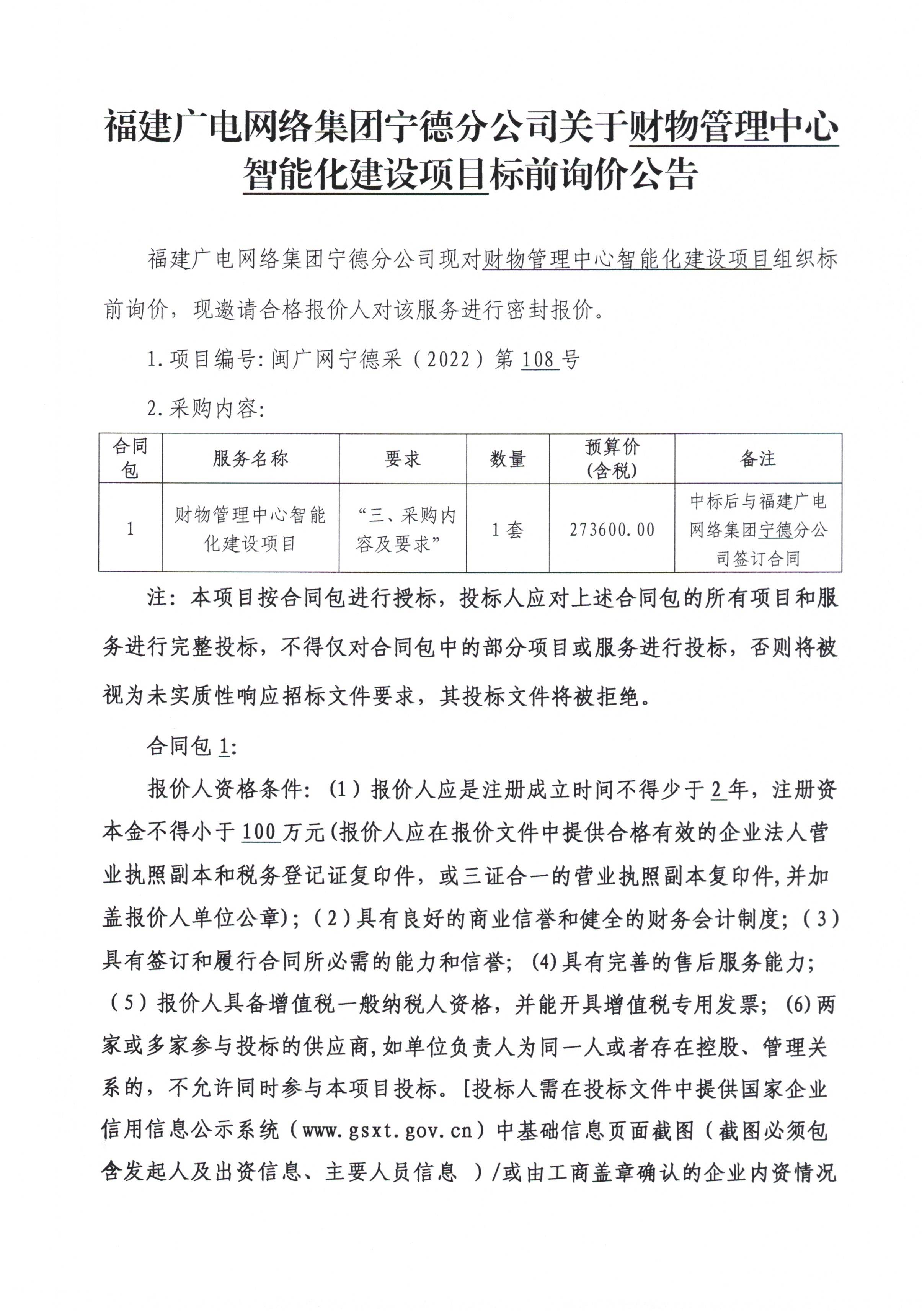宁德分公司关于财务管理中心智能化建设项目标前询价公告