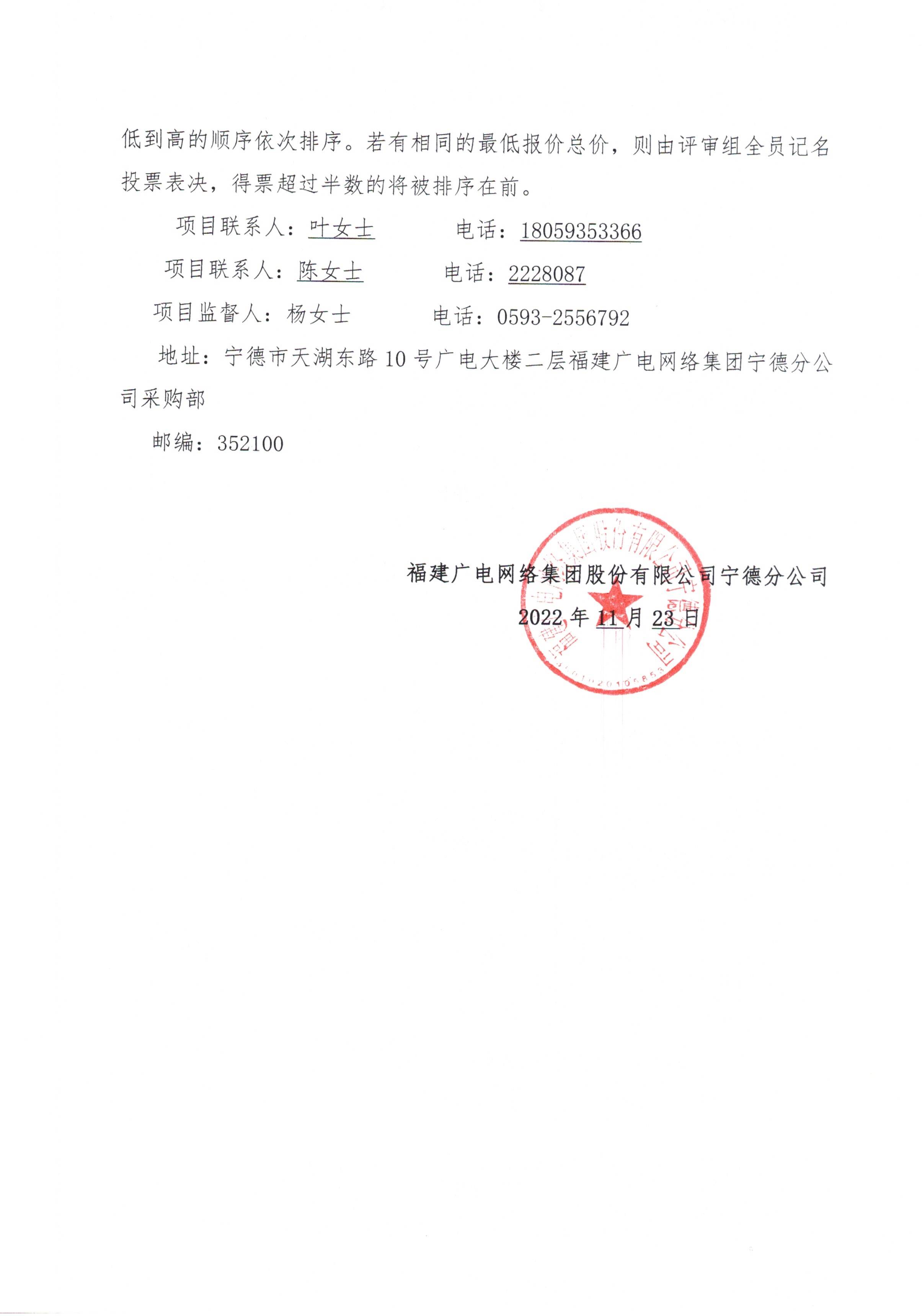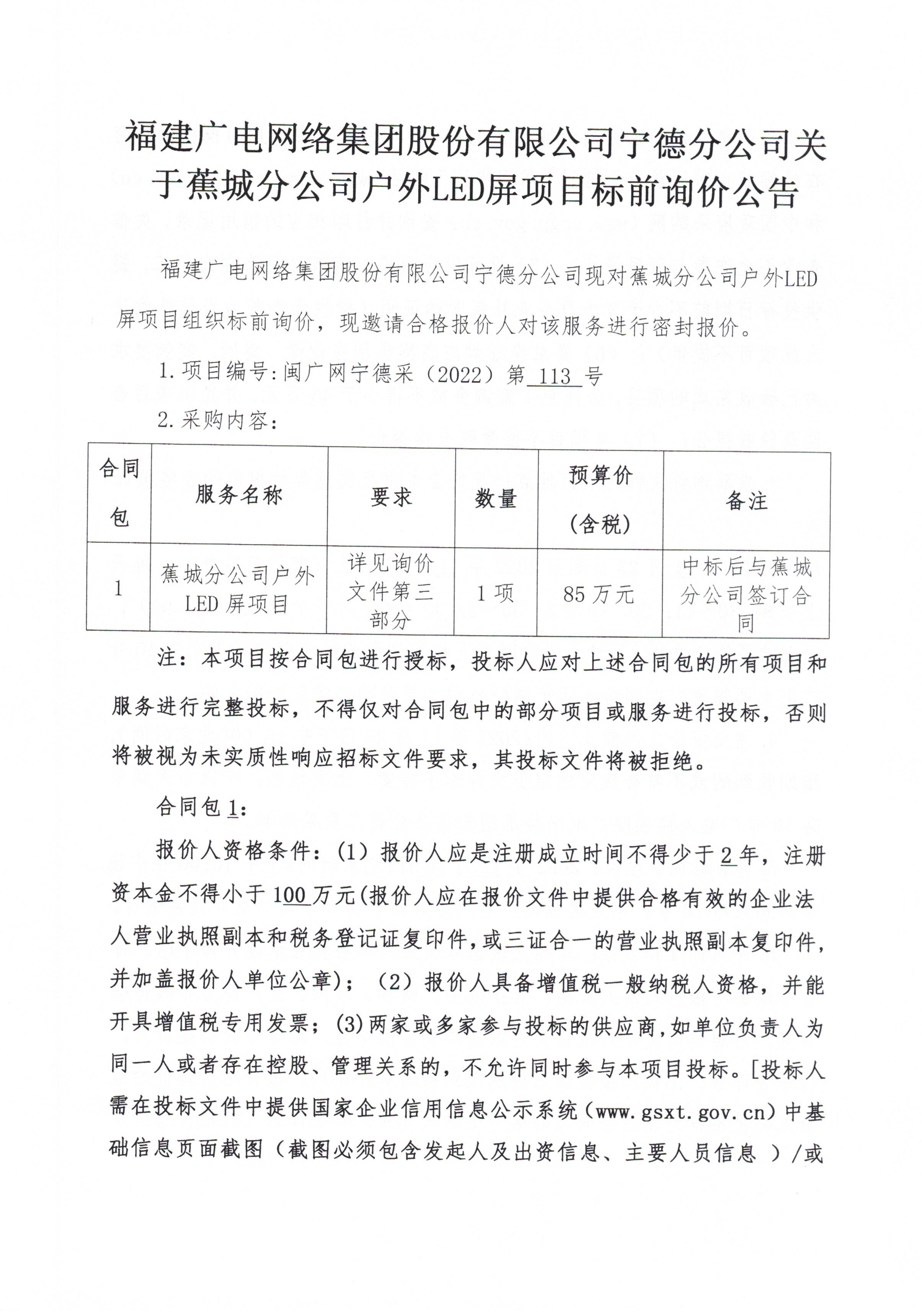宁德分公司关于蕉城分公司户外LED屏项目标前询价公告