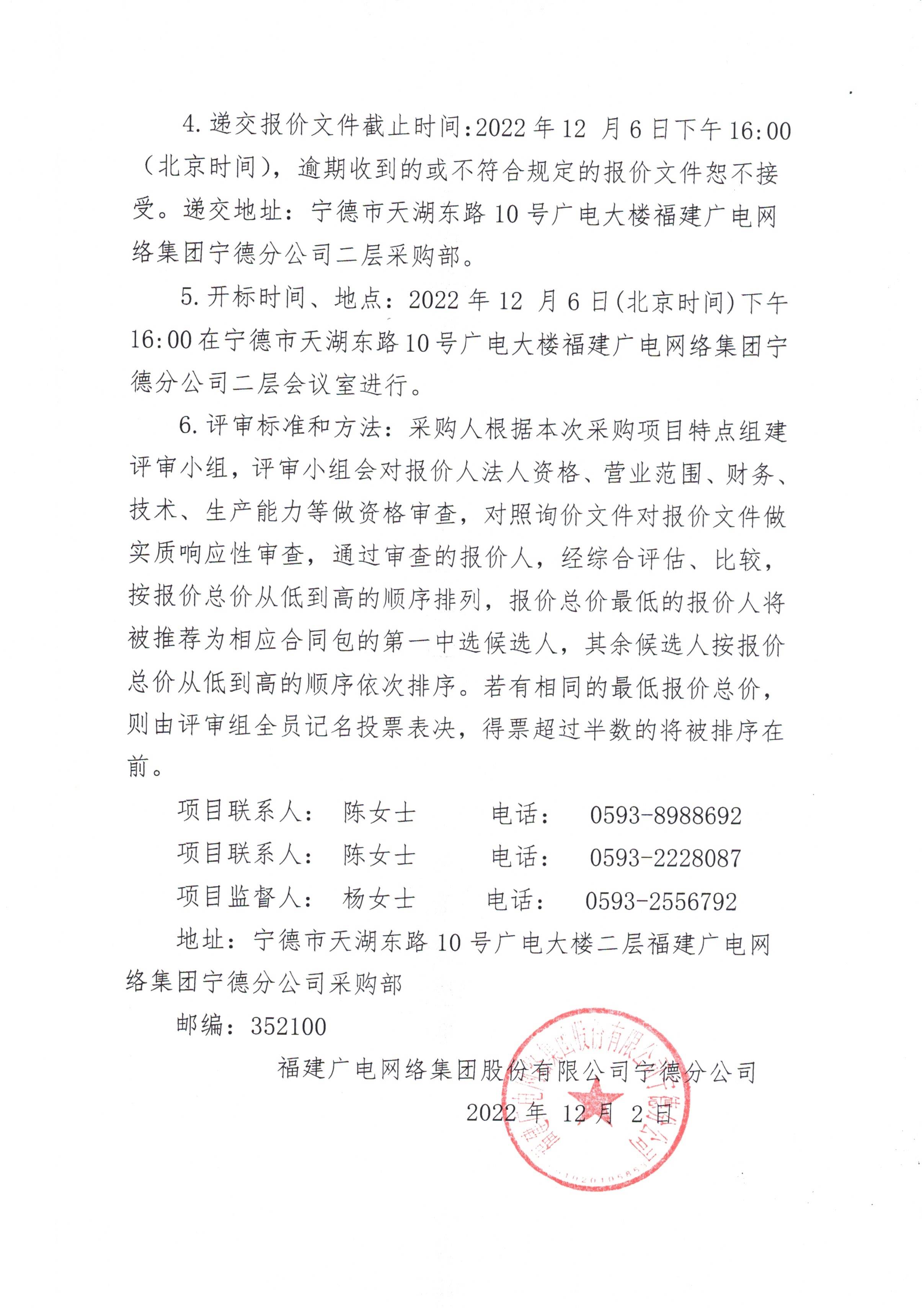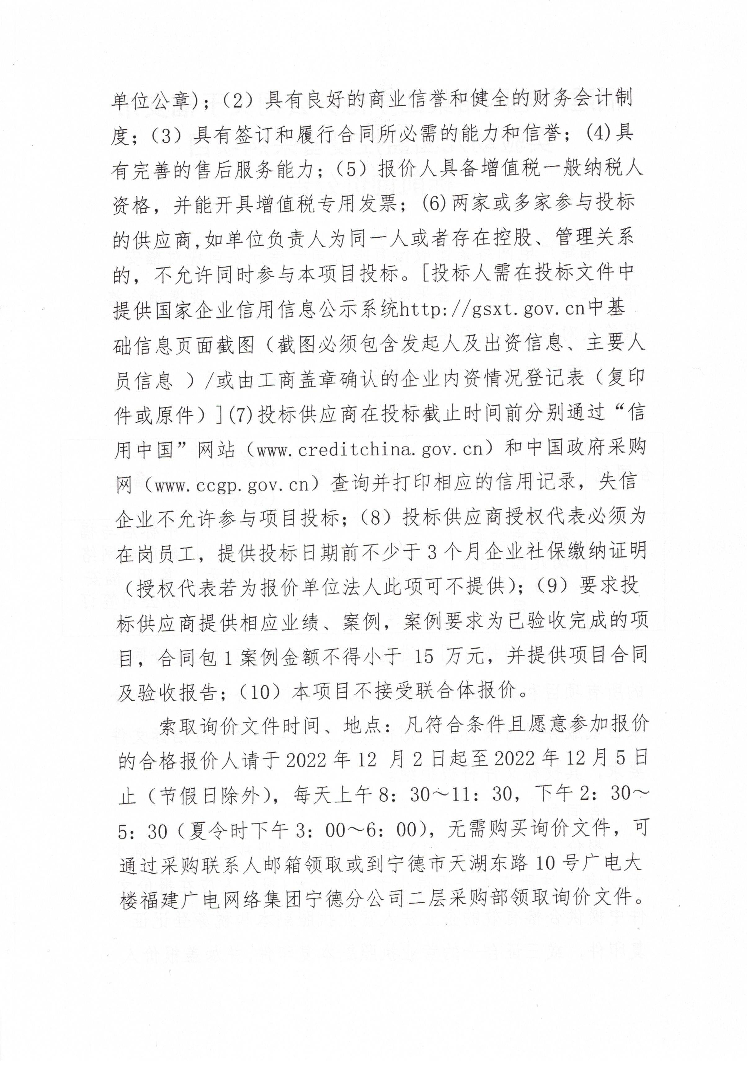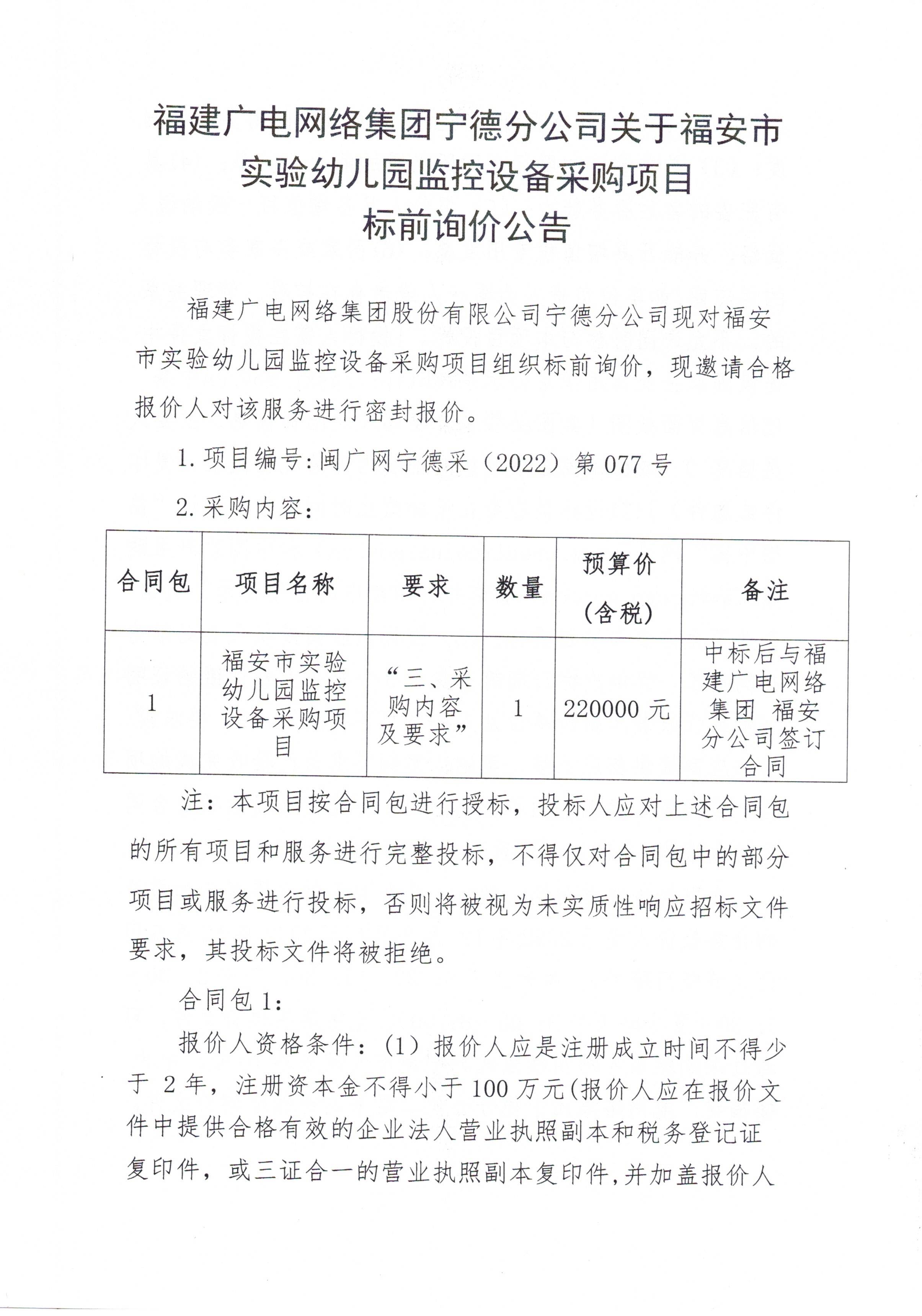 宁德分公司关于福安市实验幼儿园监控设备采购项目标前询价公告