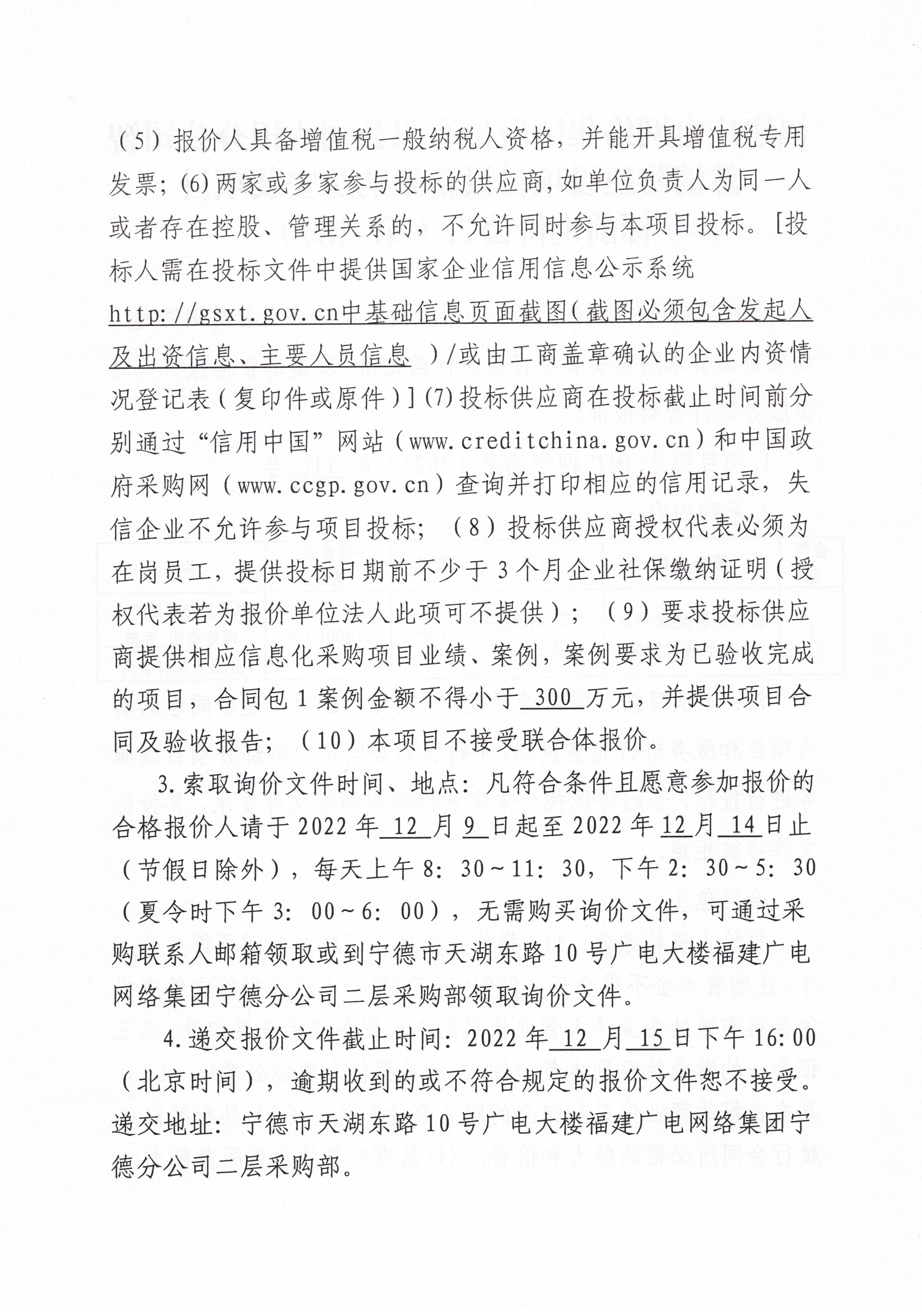 古田分公司智慧消防建设设备采购及安装项目标前询价公告(第二次)