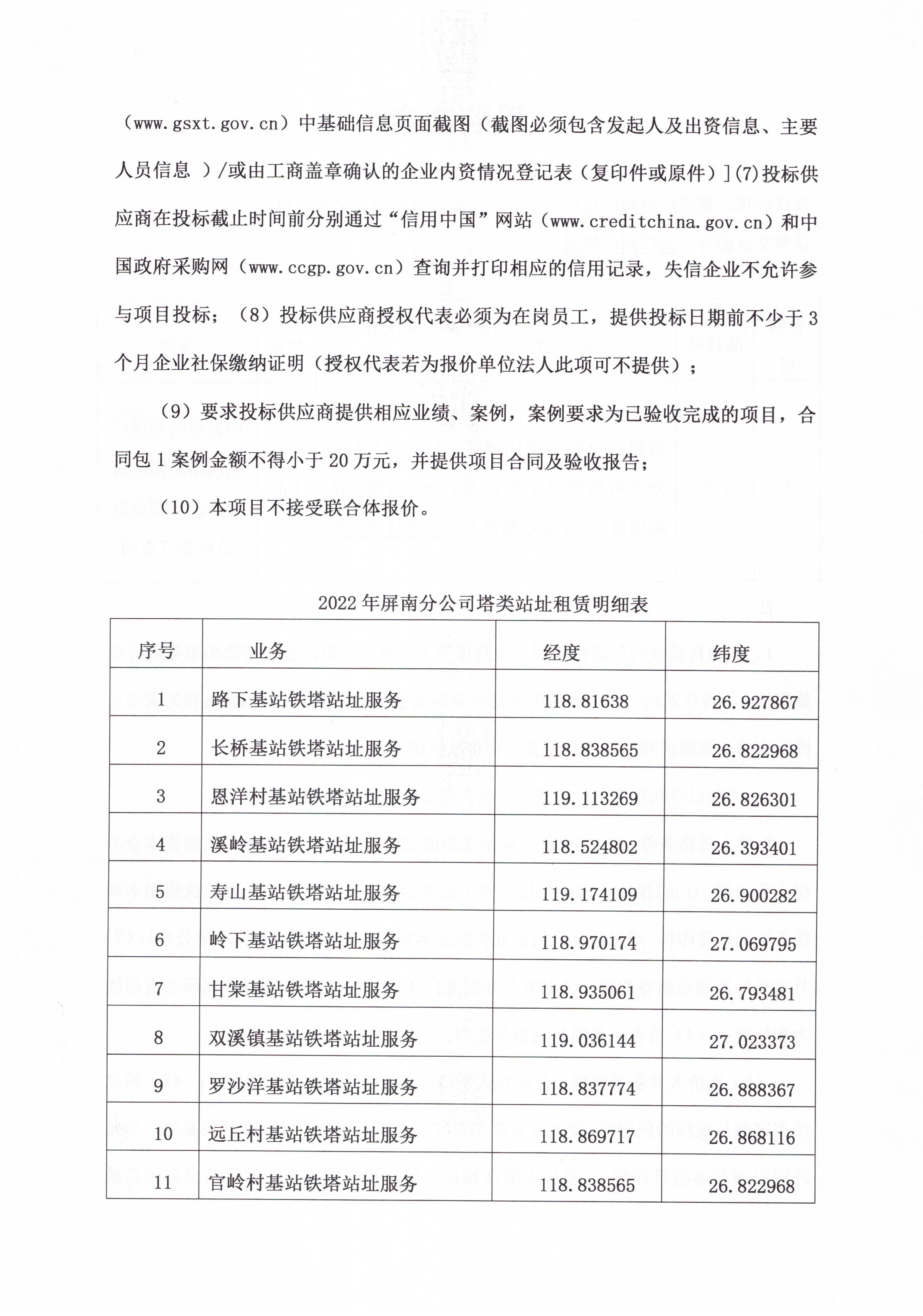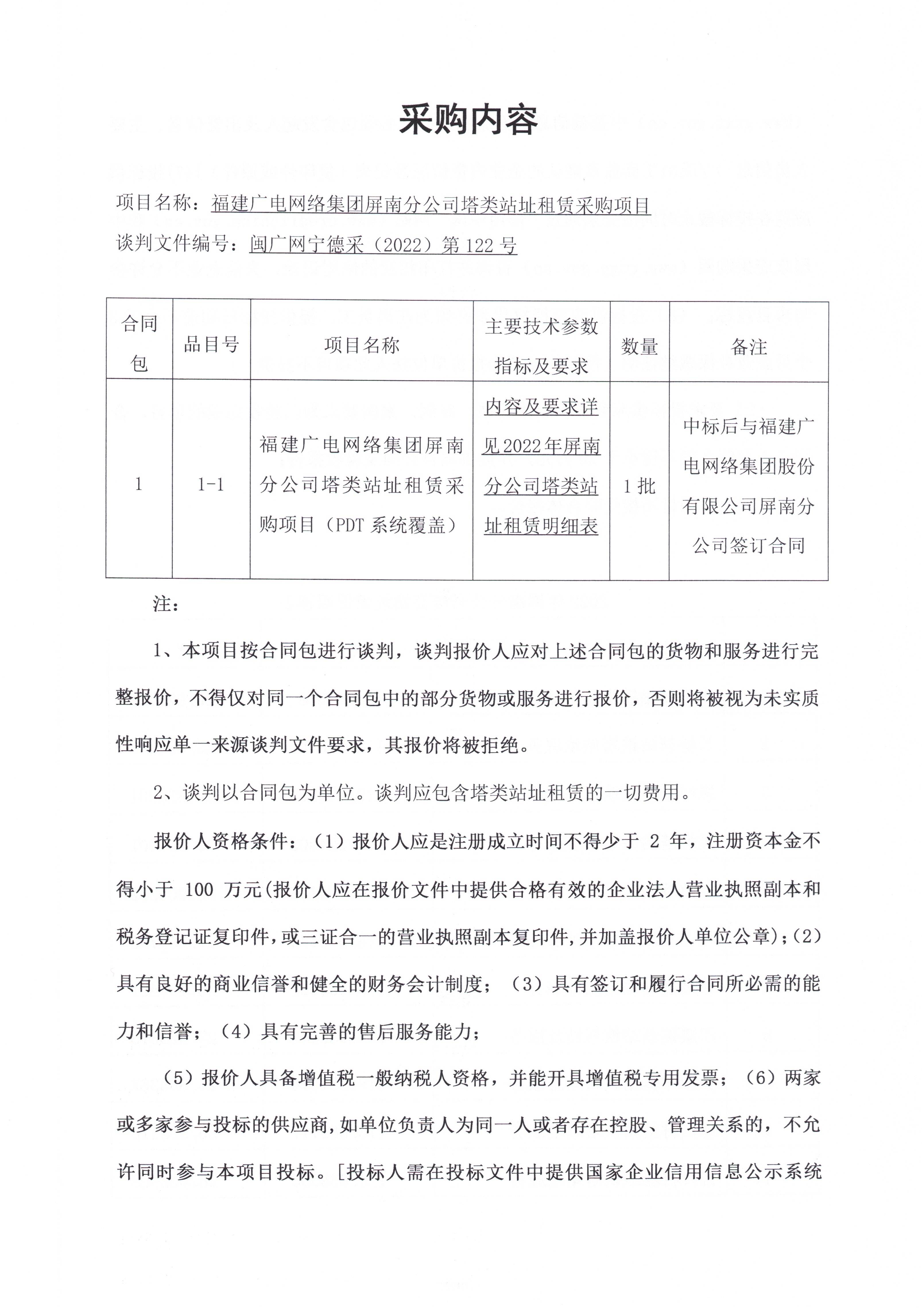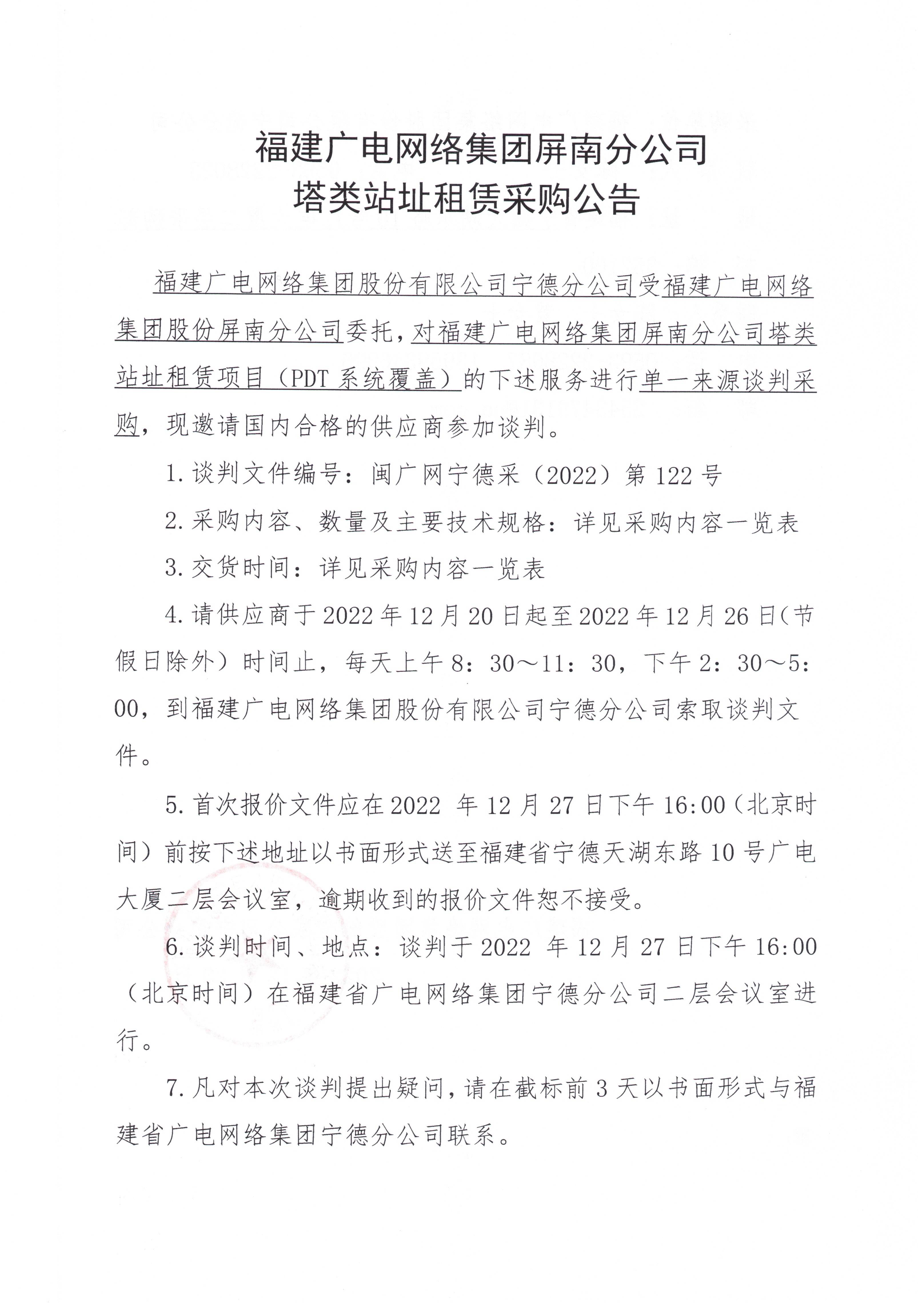 福建广电网络集团屏南分公司塔类站址租赁采购公告