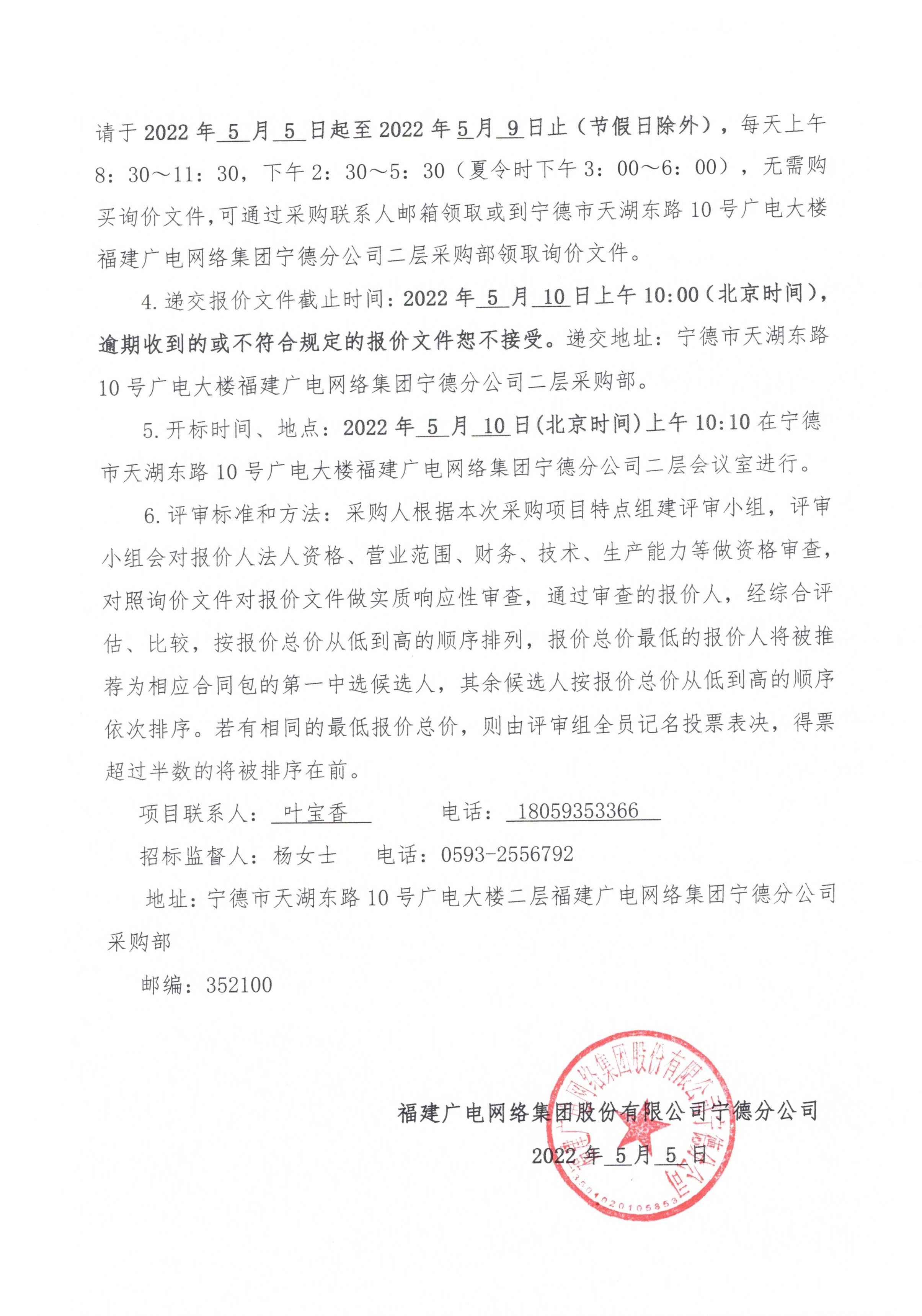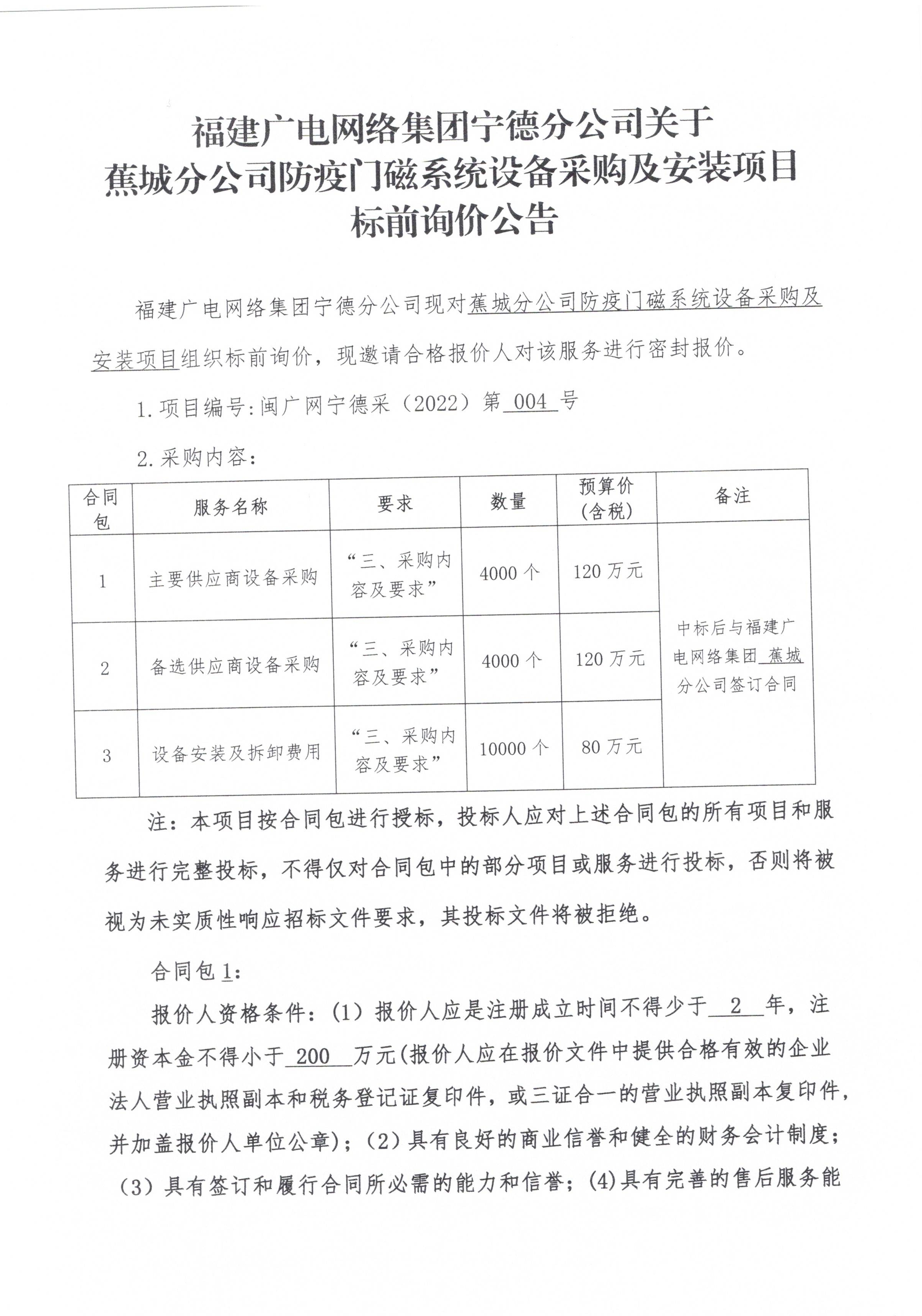 宁德分公司关于蕉城分公司防疫门磁系统设备采购及安装项目标前询价公告