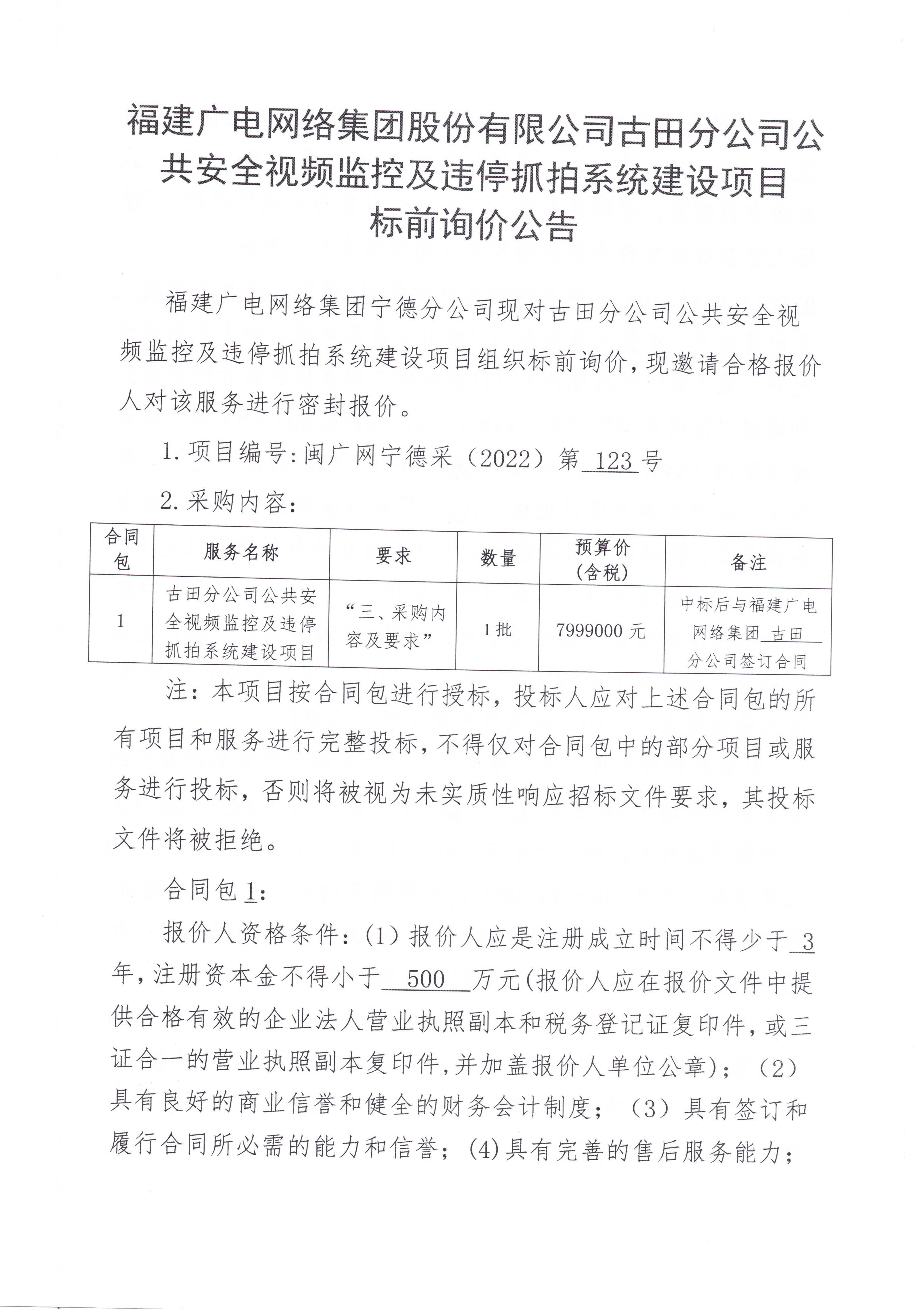 新利网上注册首页(中国)官方网站古田分公司公共安全视频监控及违停抓拍系统建设项目标前询价公告
