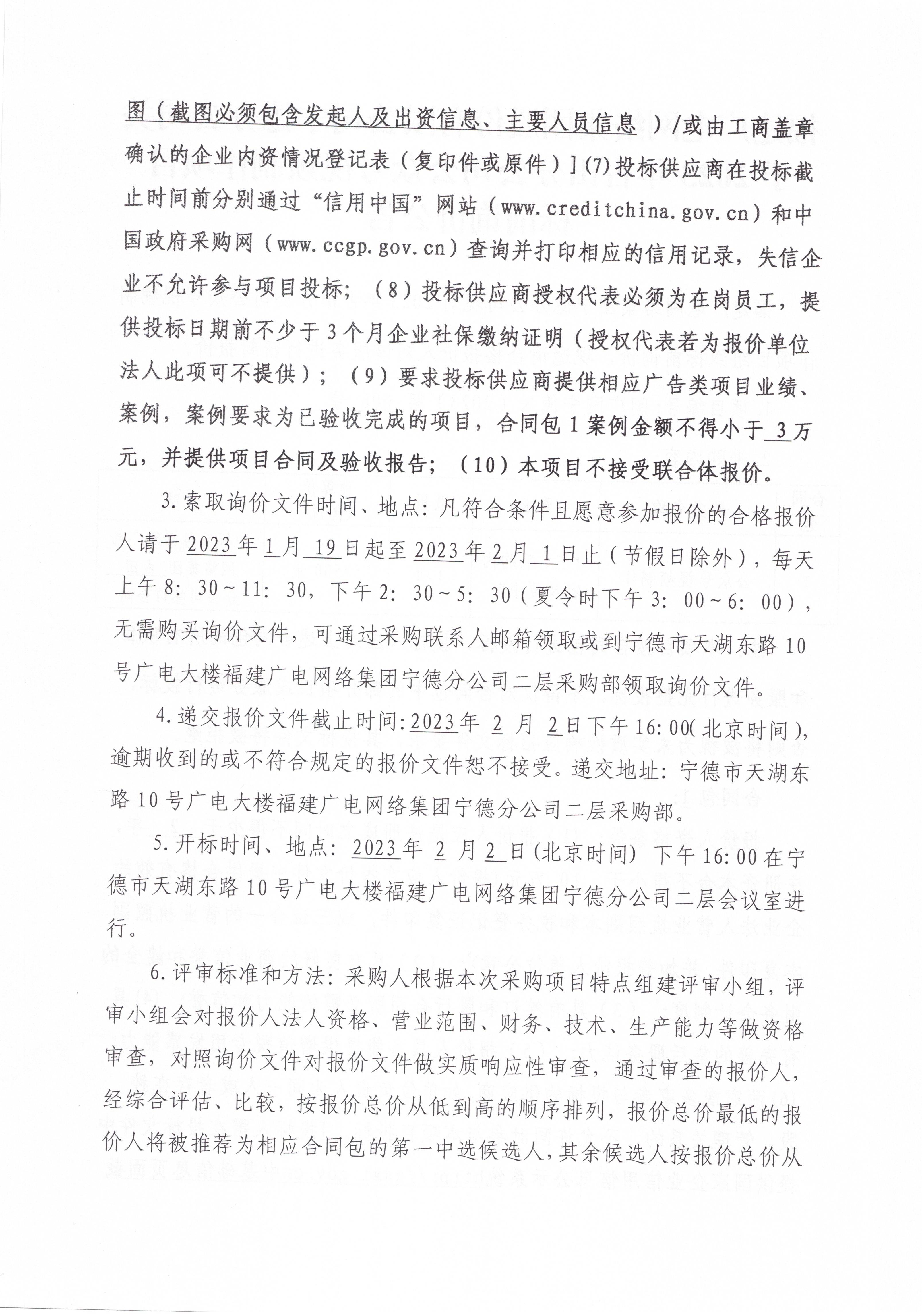 2023年古田分公司公众号视频制作项目标前询价公告