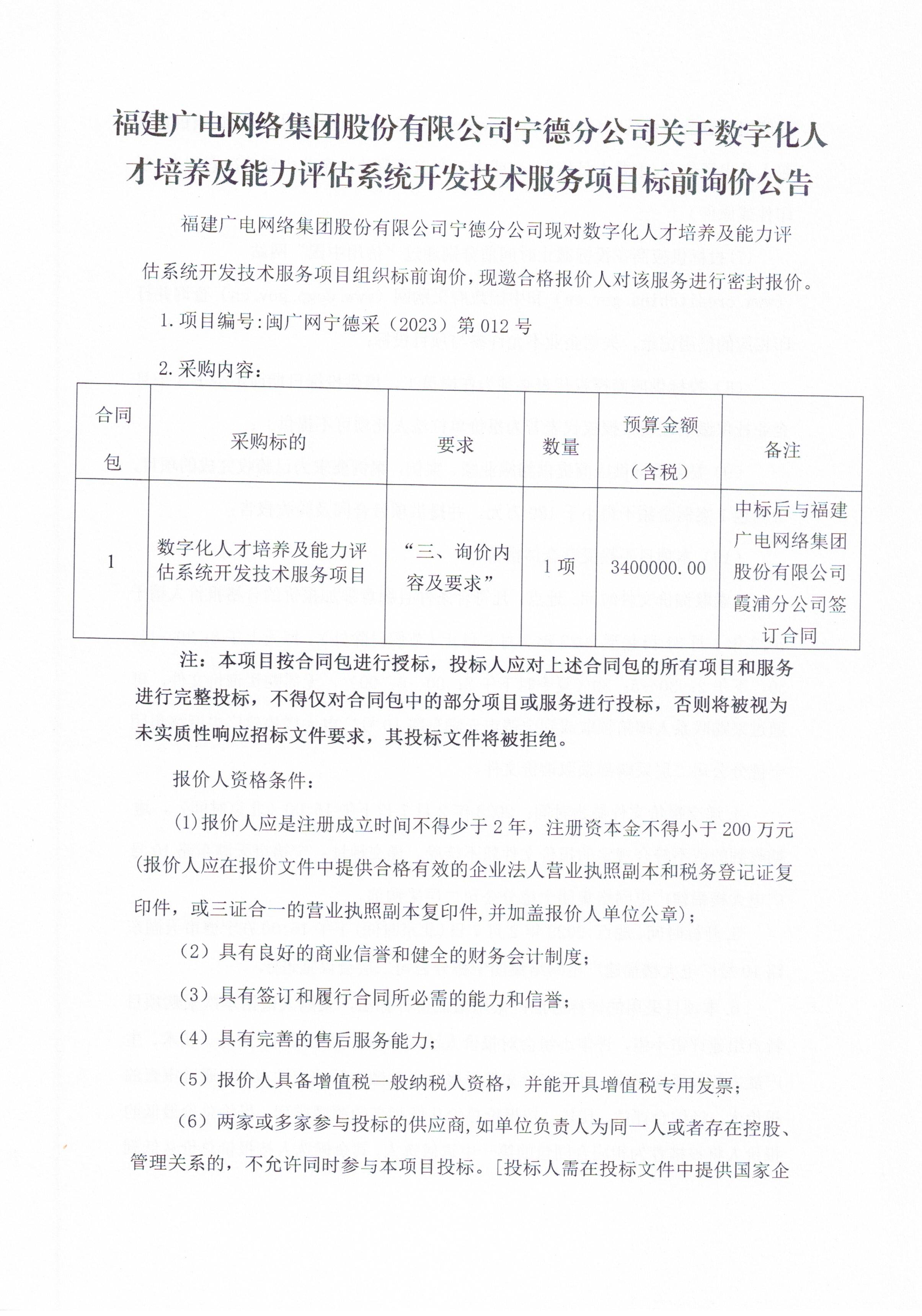 福建广电网络集团宁德分公司关于数字化人才培养及能力评估系统开发技术服务项目标前询价公告