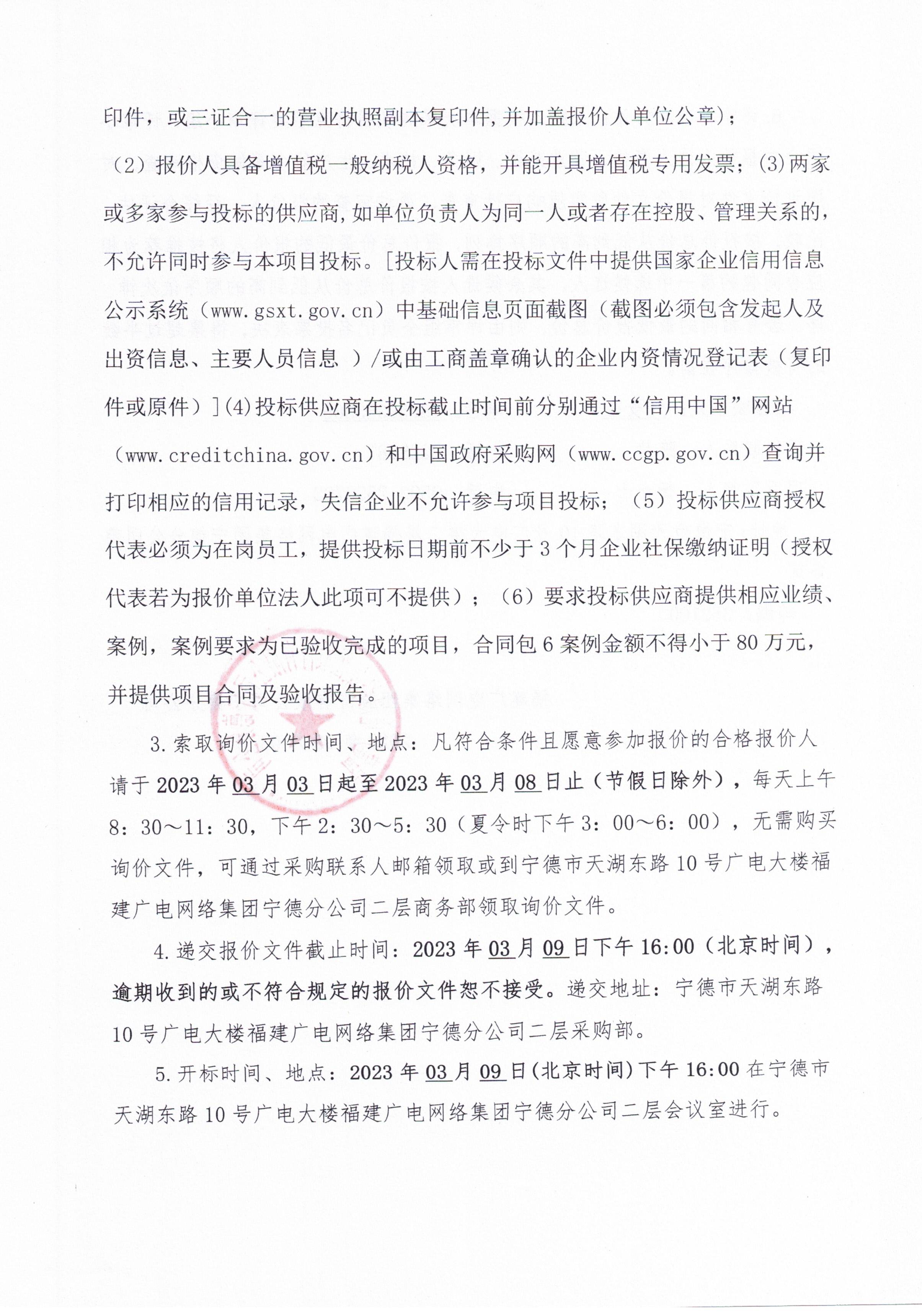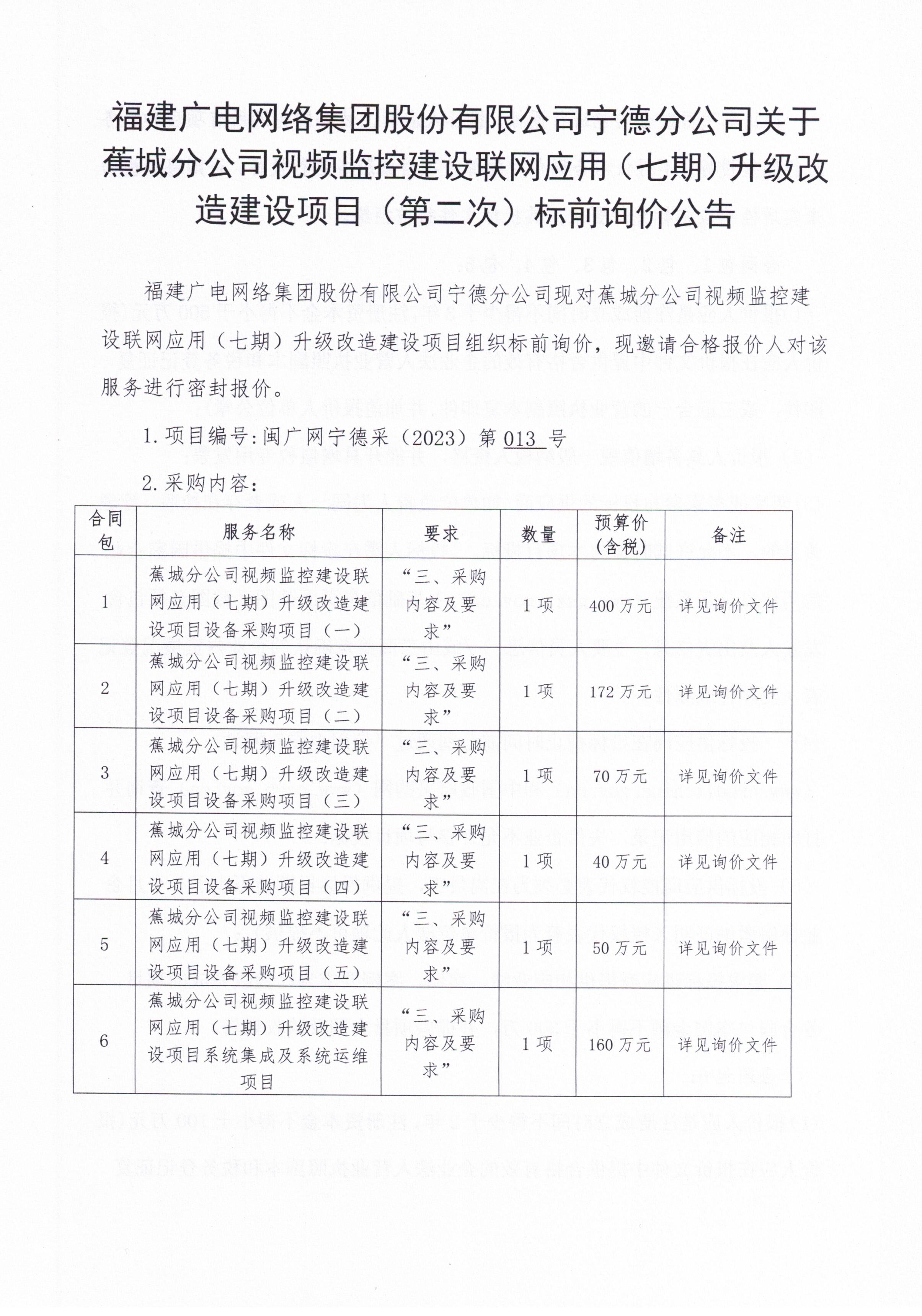 新利网上注册首页(中国)官方网站宁德分公司关于蕉城分公司视频监控建设联网应用(七期)升级改造建设项目(第二次)标前询价公告