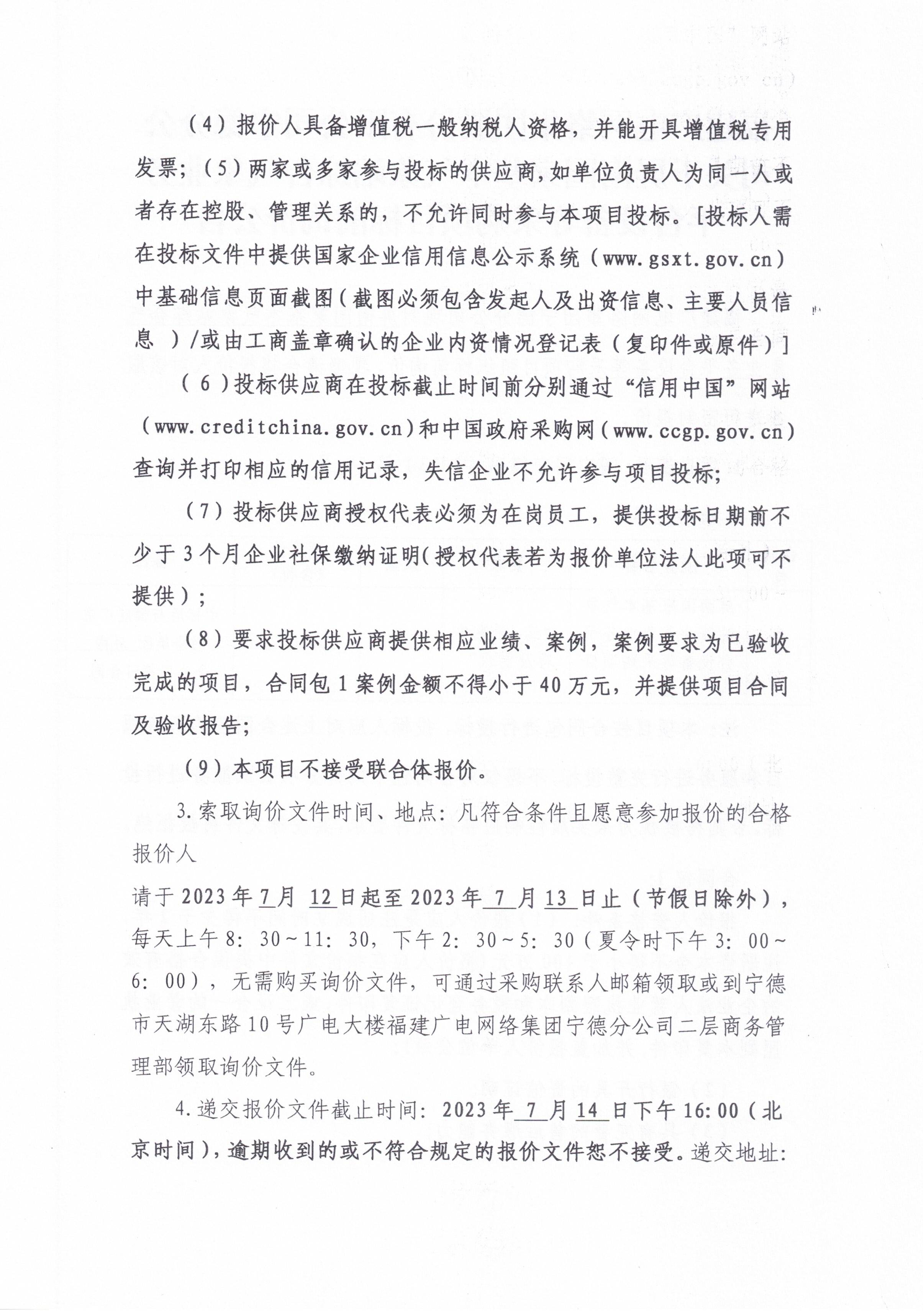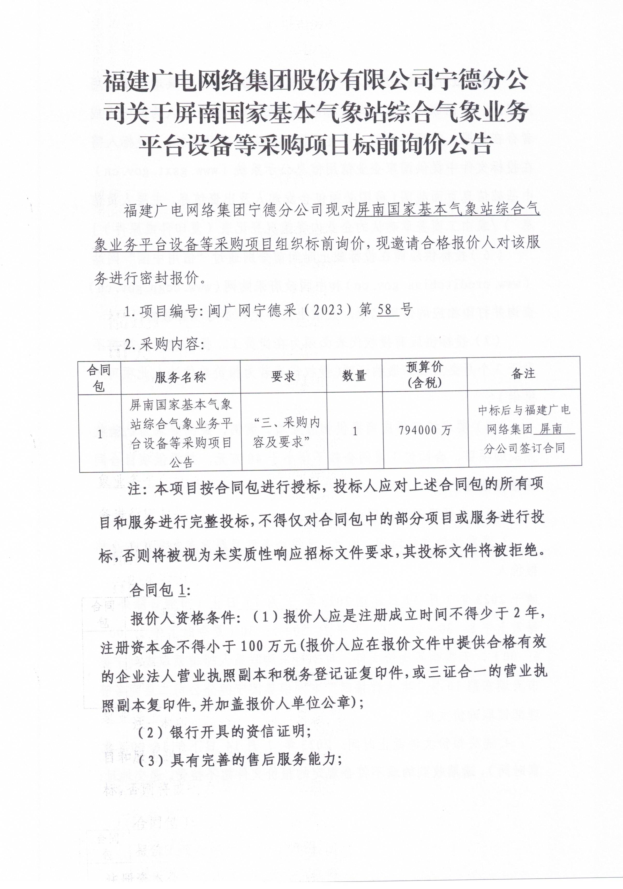 福建广电网络集团宁德分公公司关于屏南国家基本气象站综合气象业务平台设备等采购项目标前询价公告