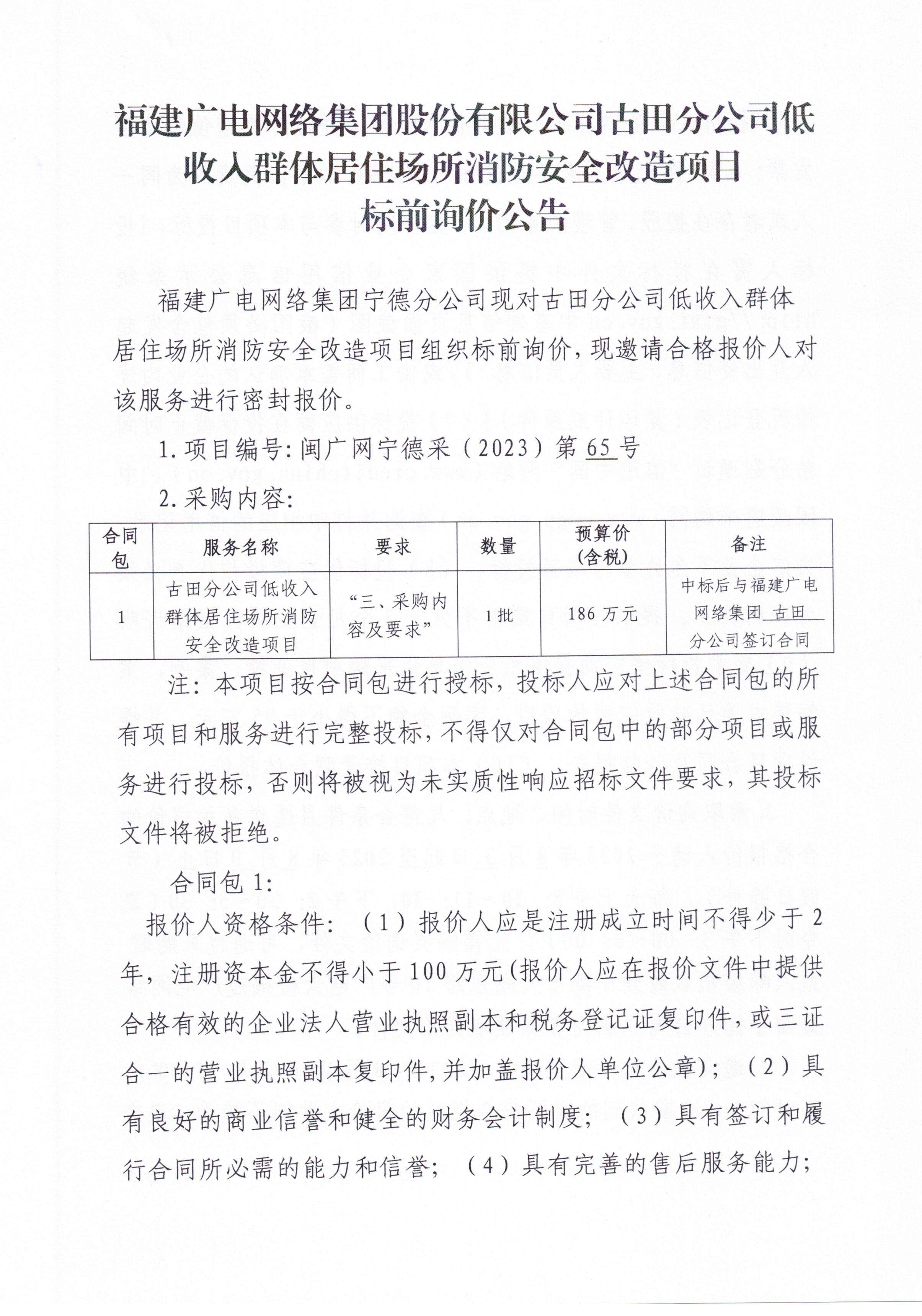 古田分公司低收入群体居住场所消防安全改造项目标前询价公告