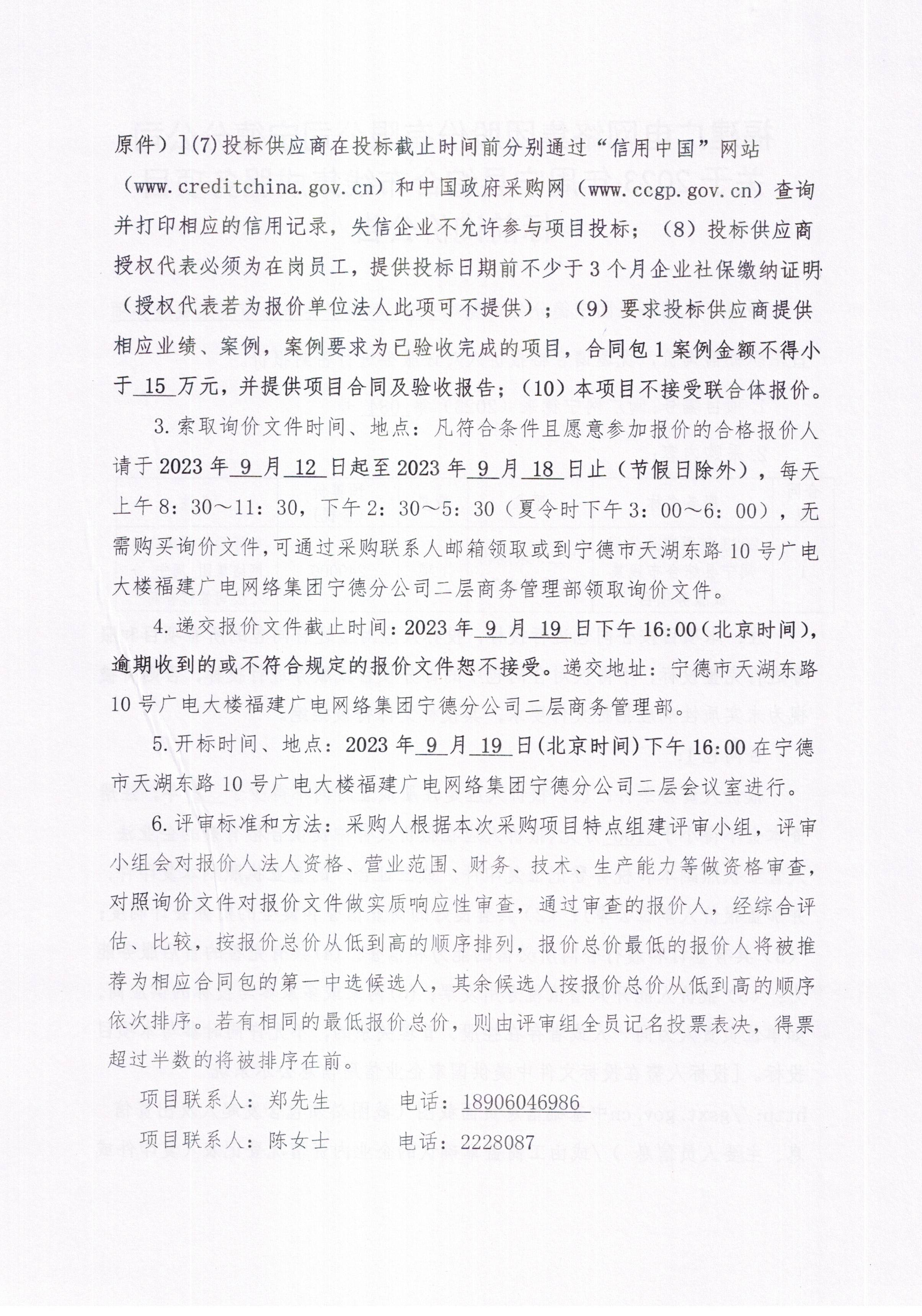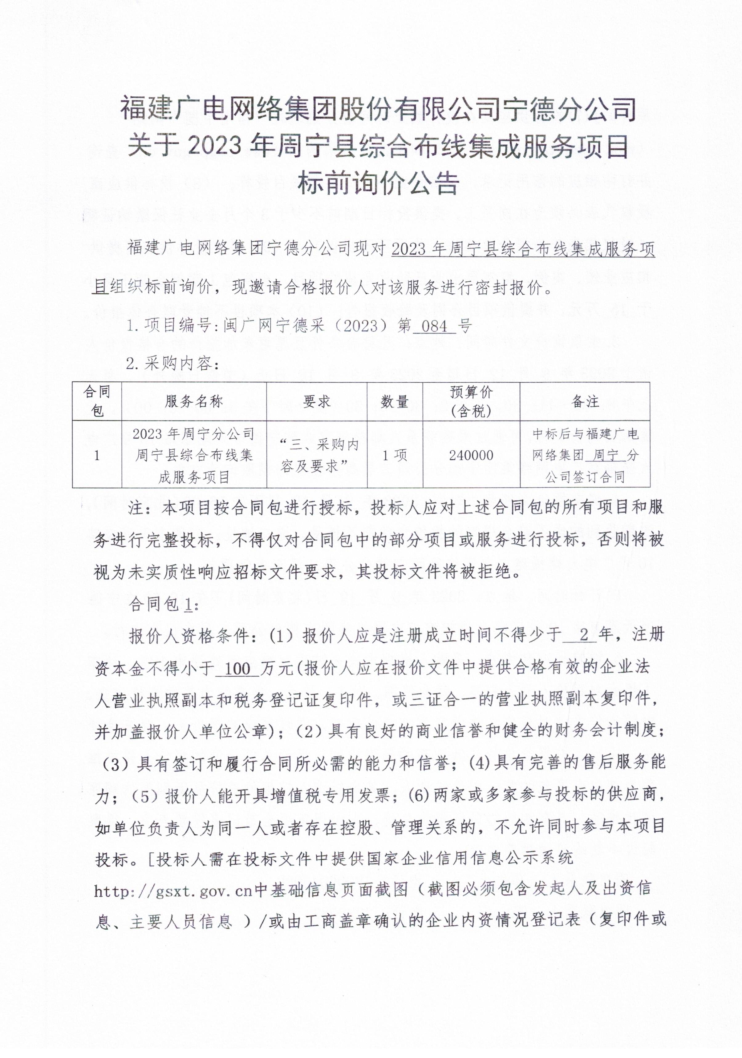 新利网上注册首页(中国)官方网站宁德分公司关于2023年周宁县综合布线集成服务项目标前询价公告