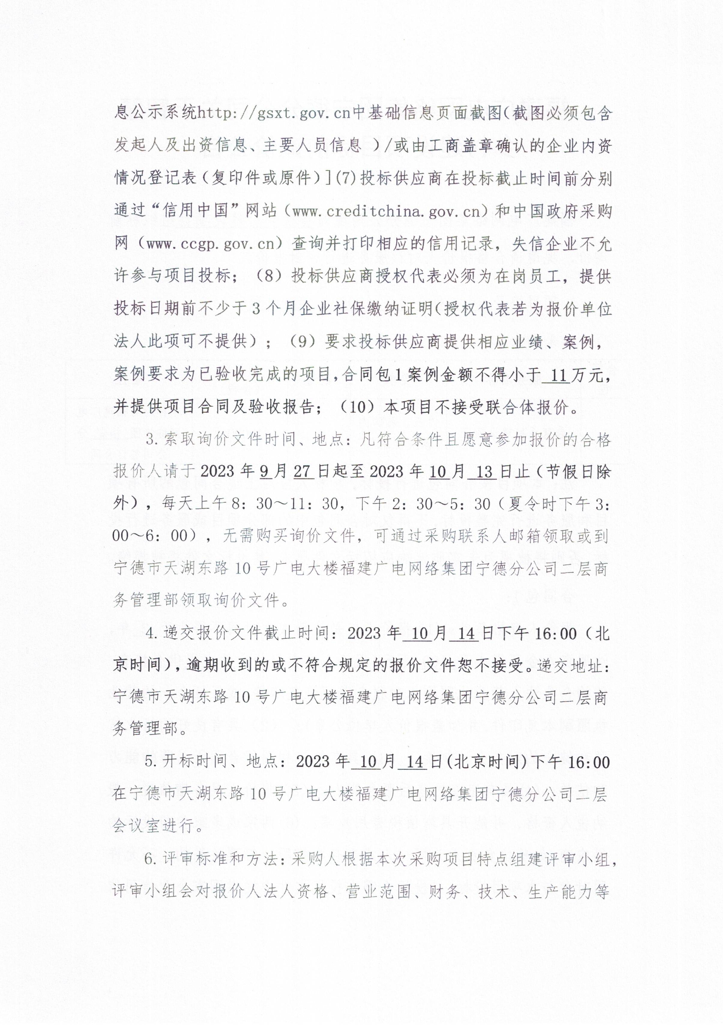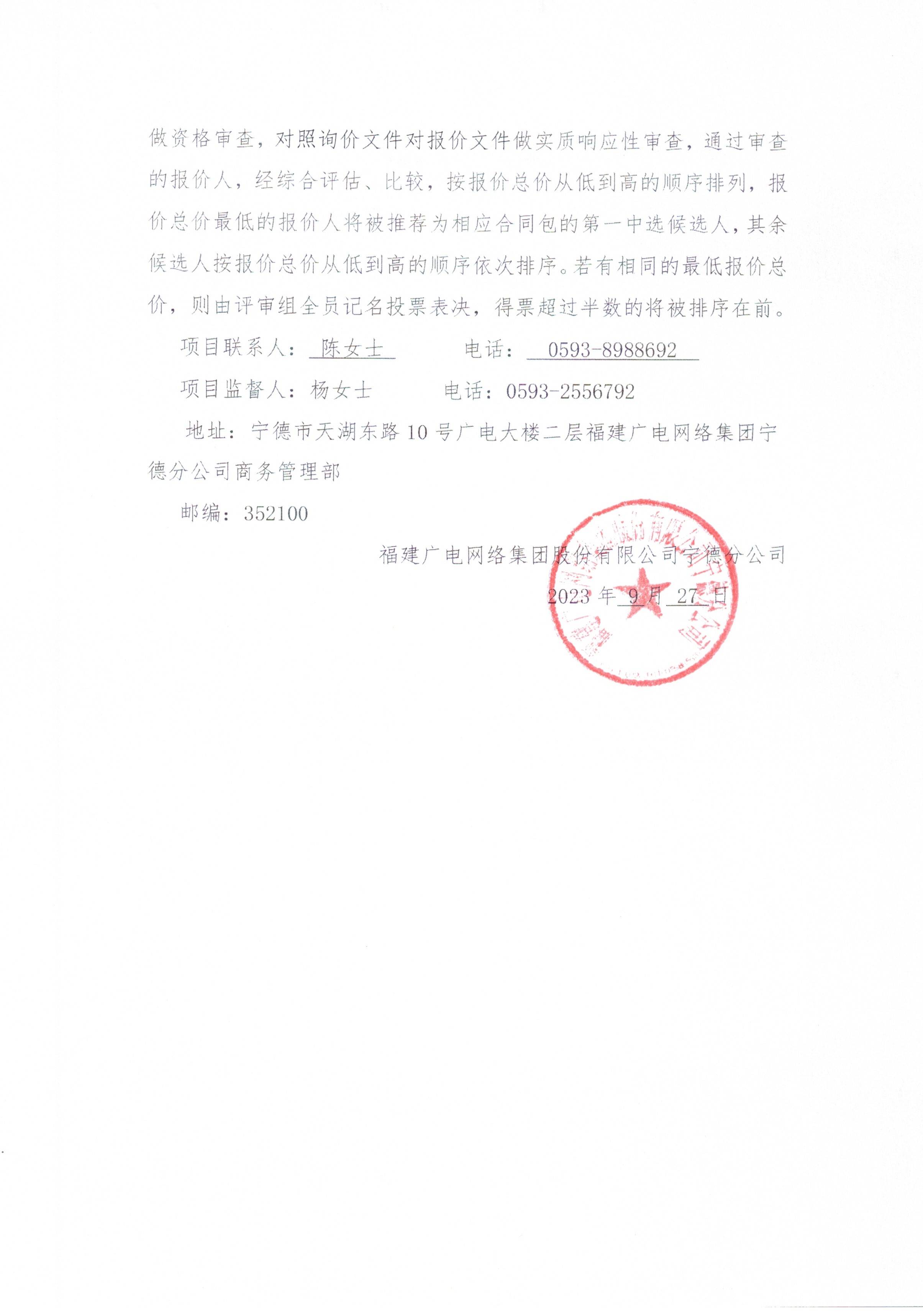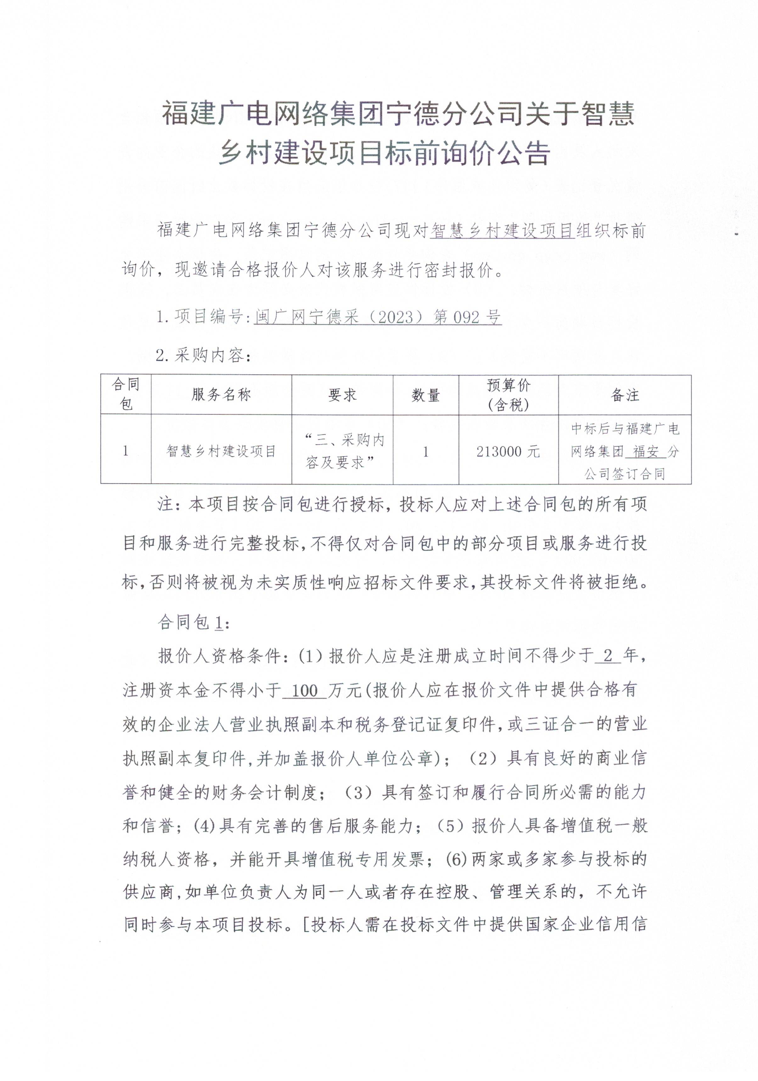 福建广电网络集团宁德分公司关于福安市溪潭镇仙石村智慧乡村建设项目标前询价公告
