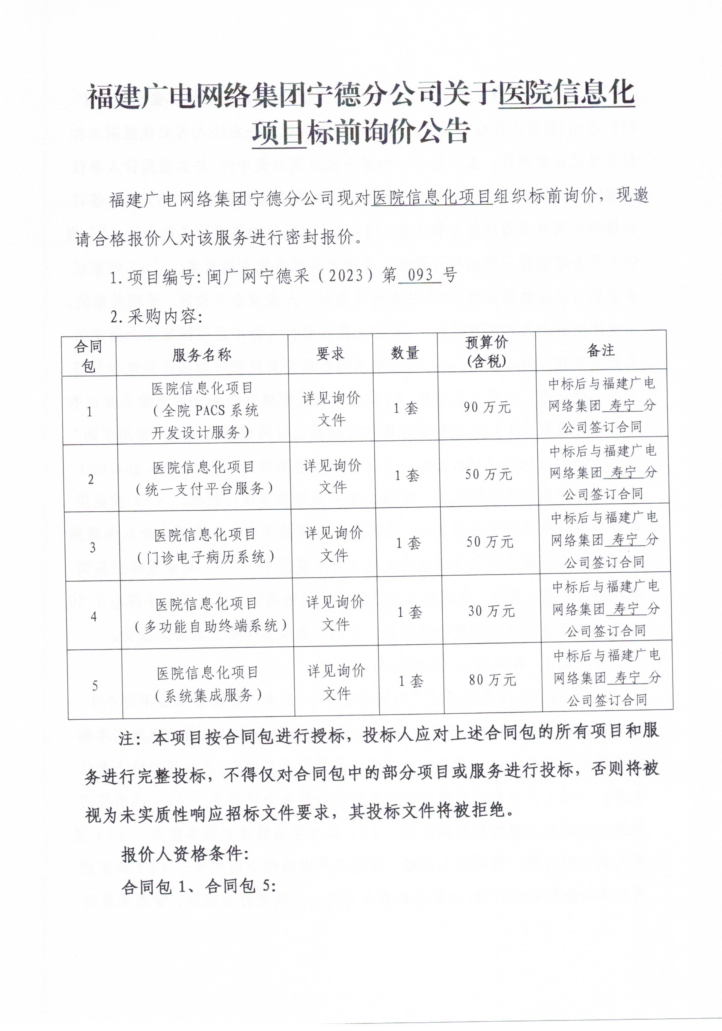 新利网上注册首页(中国)官方网站宁德分公司医院信息化项目标前询价公告