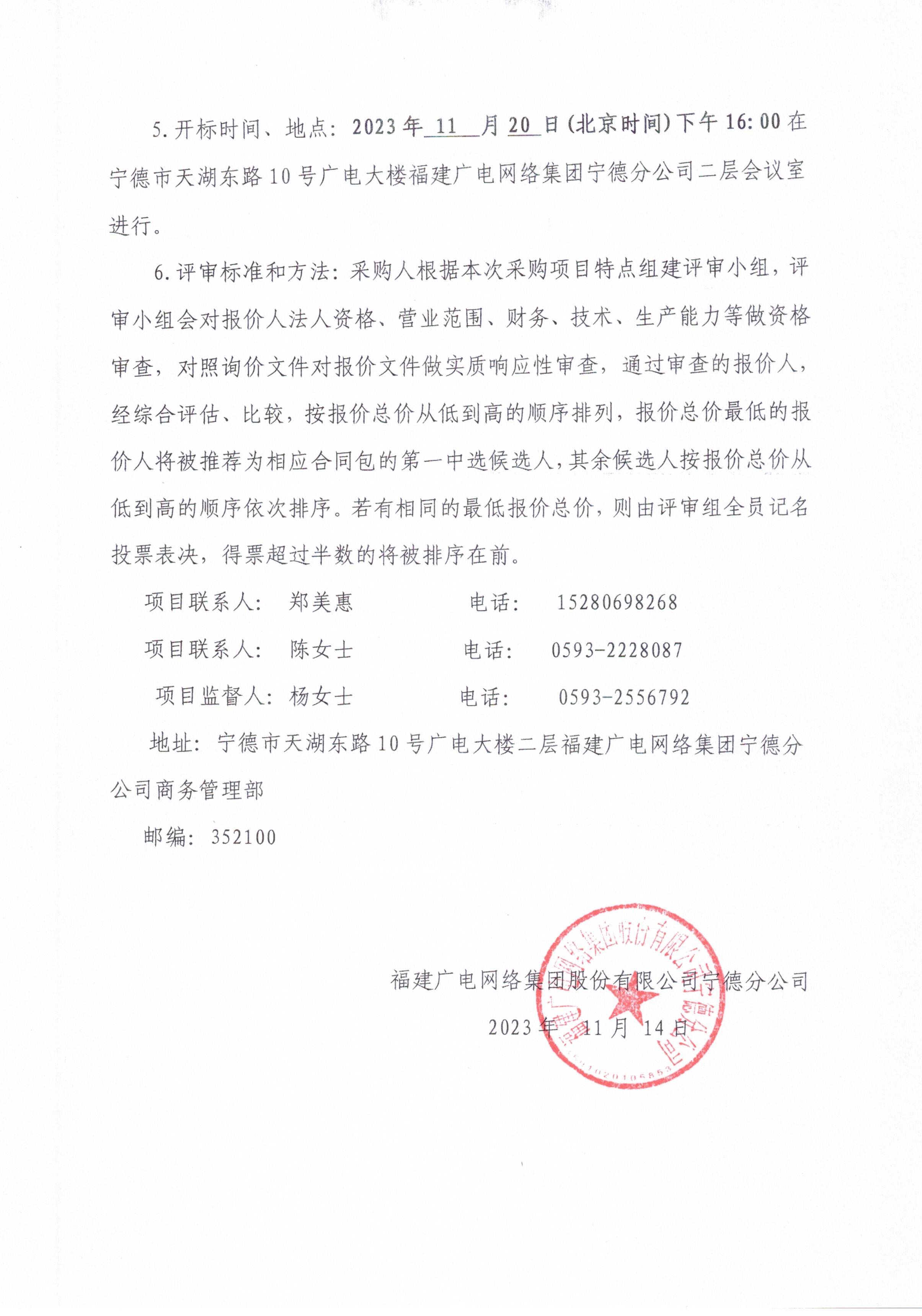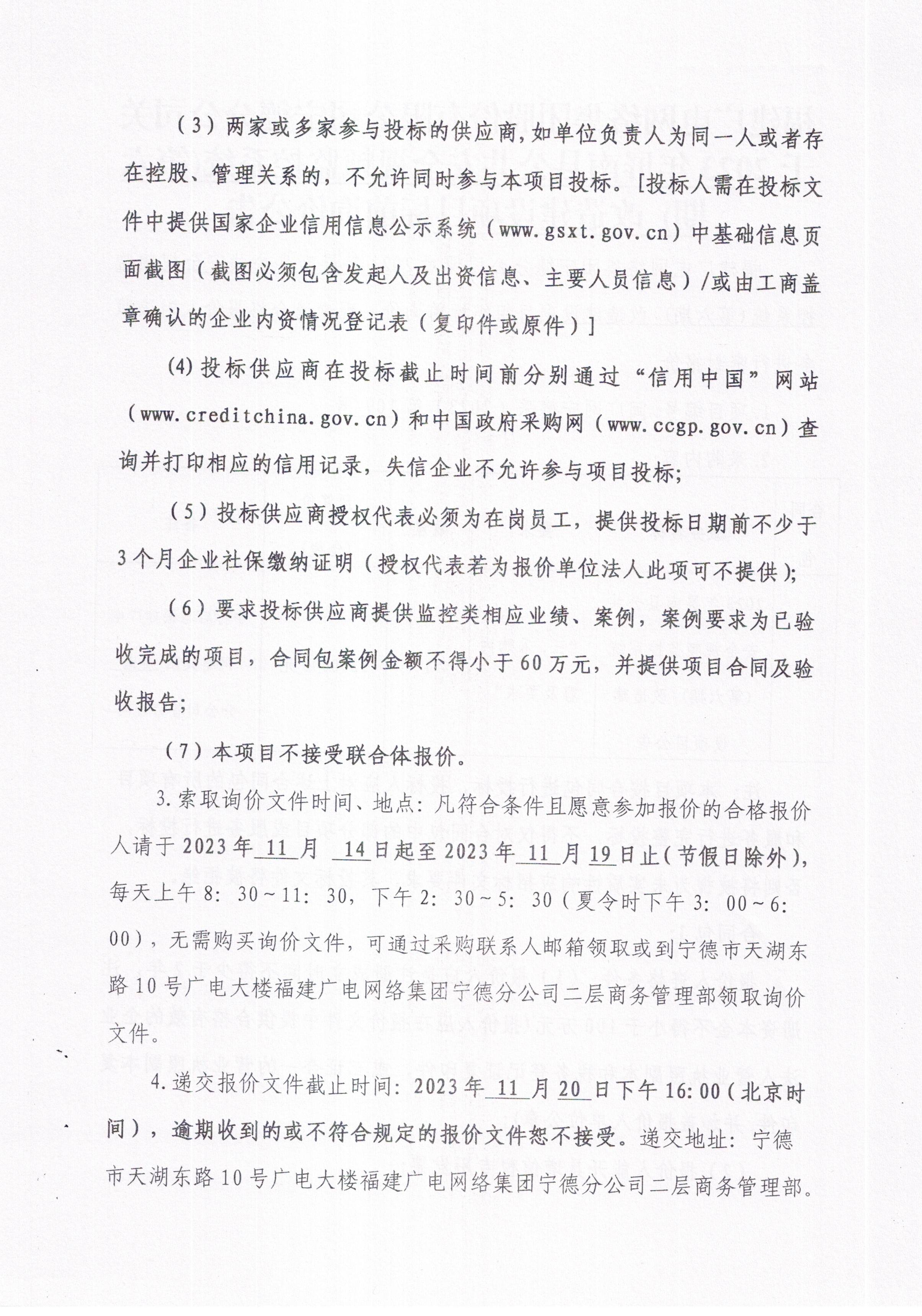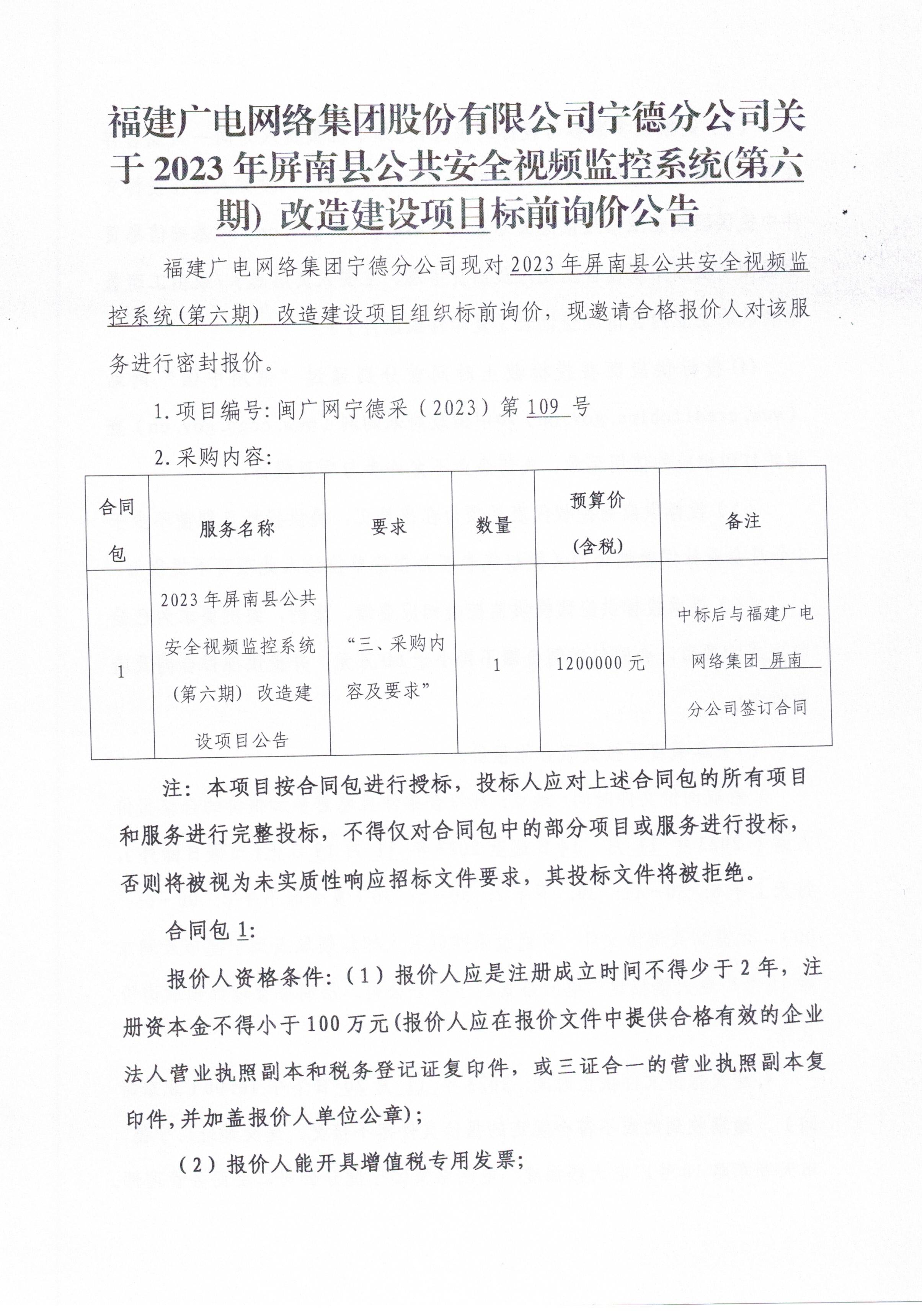 福建广电网络集团宁德分公司2023年屏南县公共安全视频监控系统(第六期) 改造建设项目标前询价公告