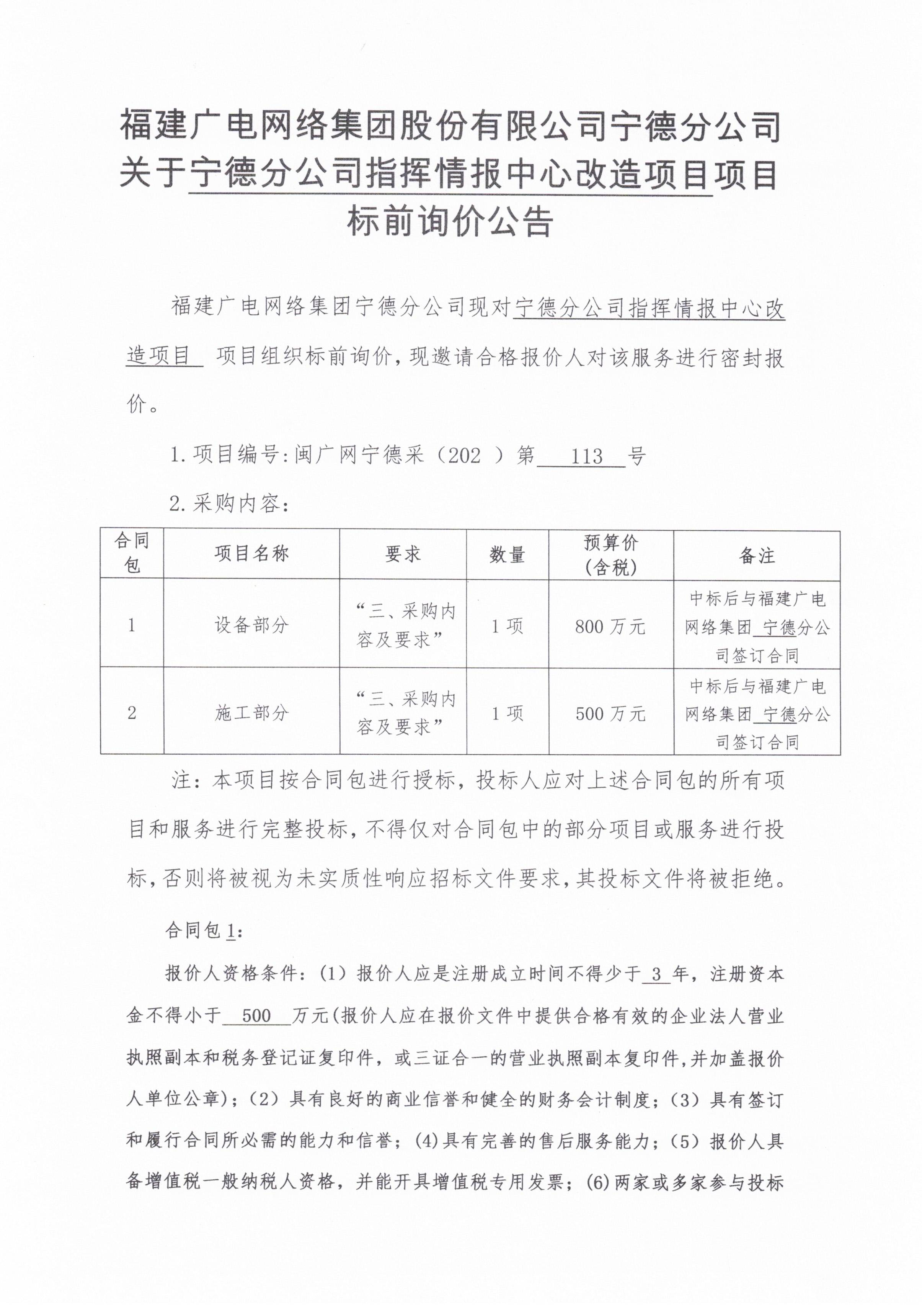 新利网上注册首页(中国)官方网站宁德分公司指挥情报中心改造项目标前询价公告