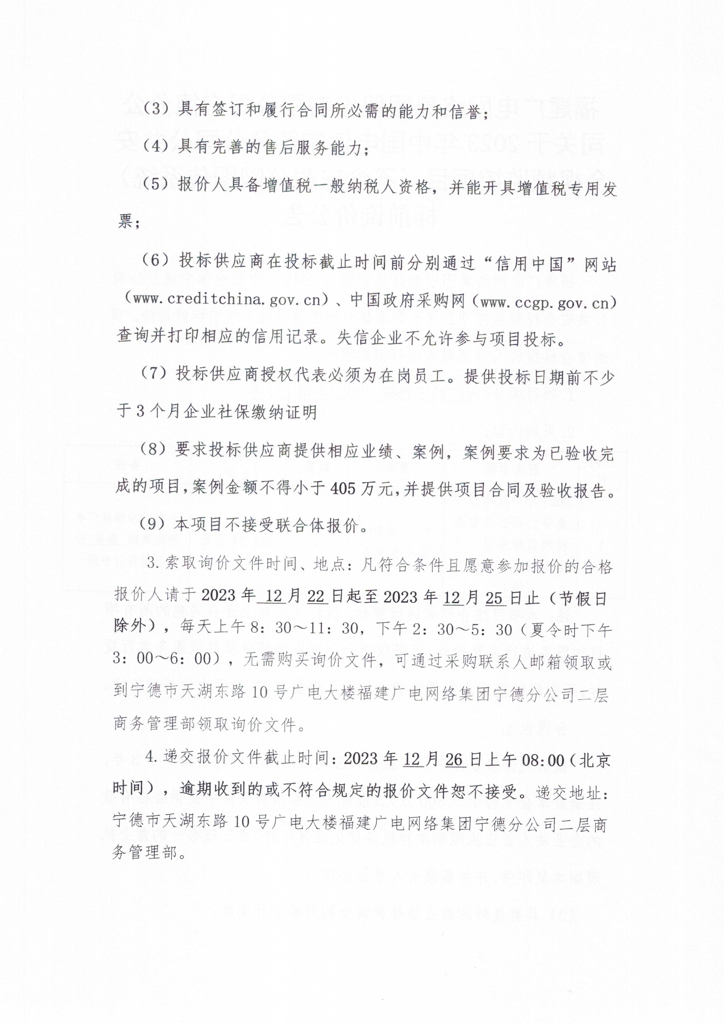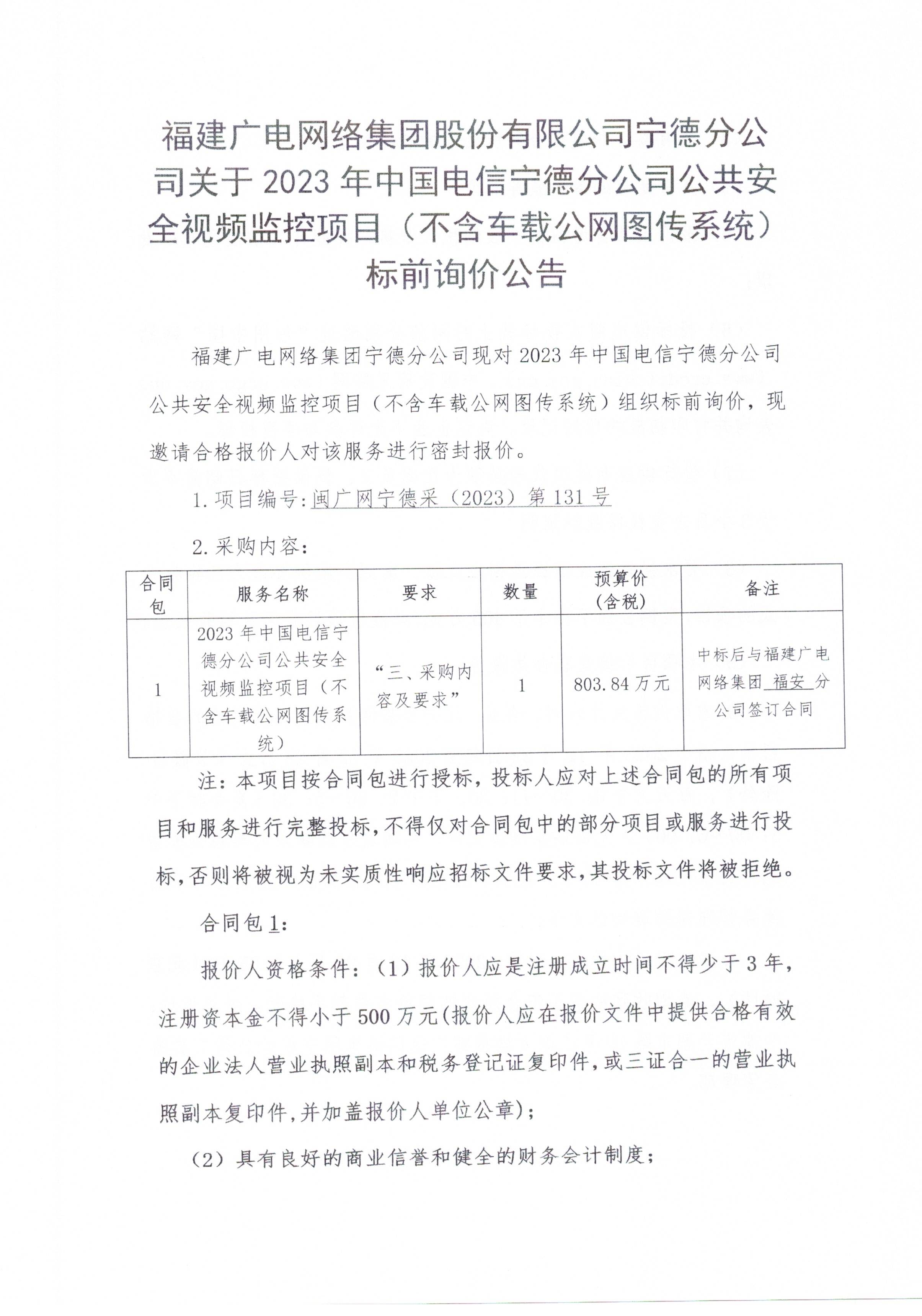 新利网上注册首页(中国)官方网站宁德分公司关于2023年中国电信宁德分公司公共安全视频监控项目(不含车载公网图传系统)标前询价公告