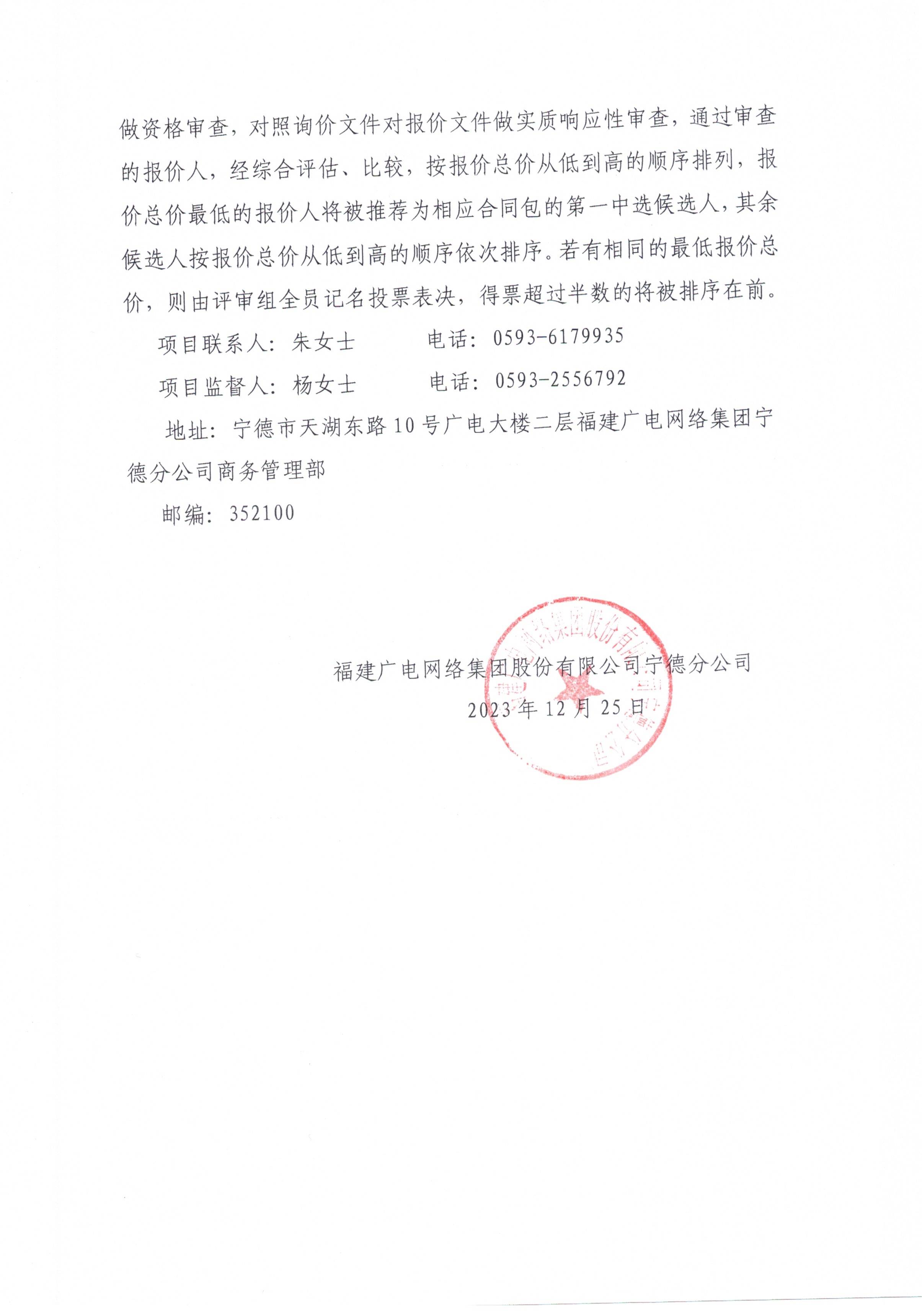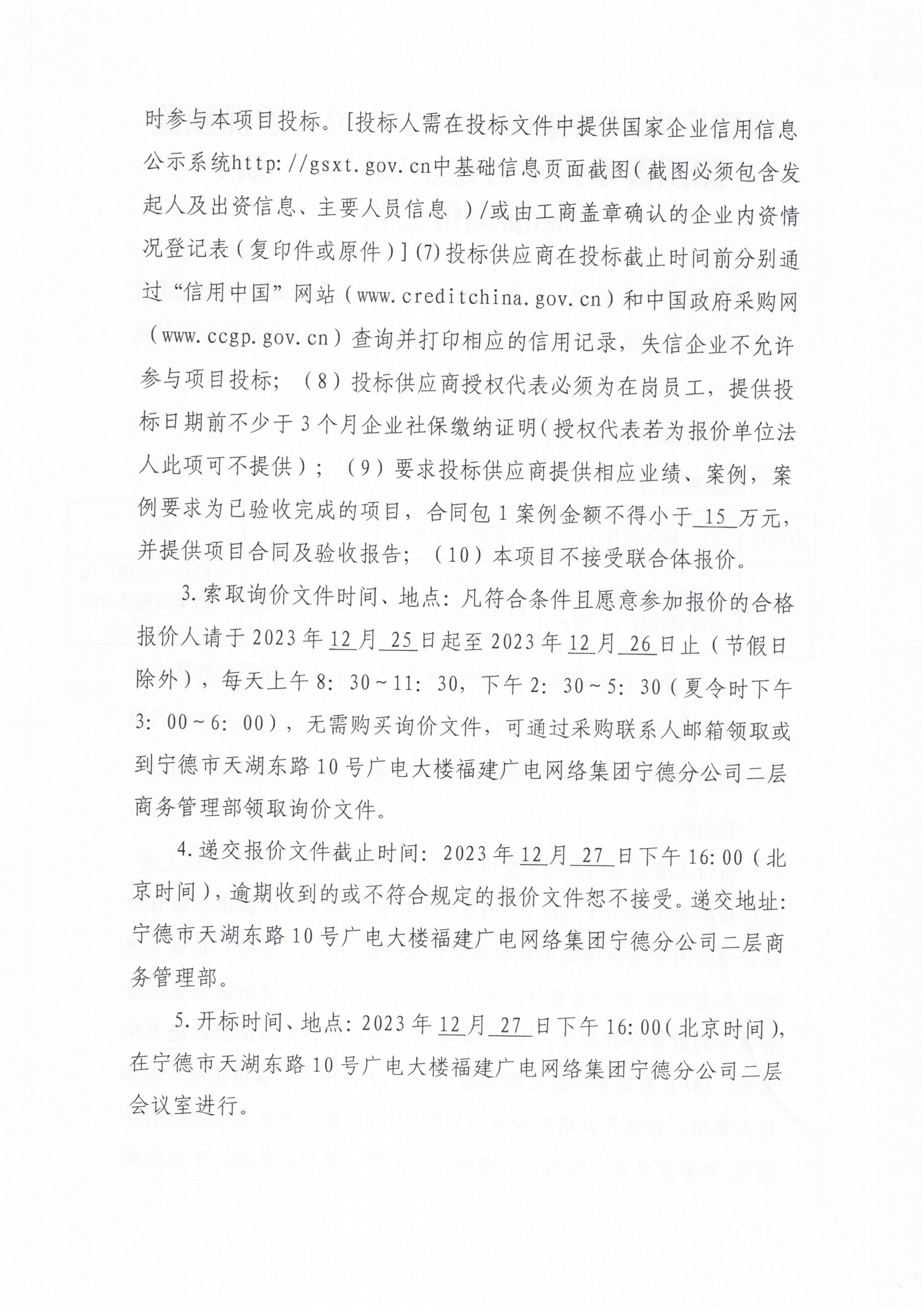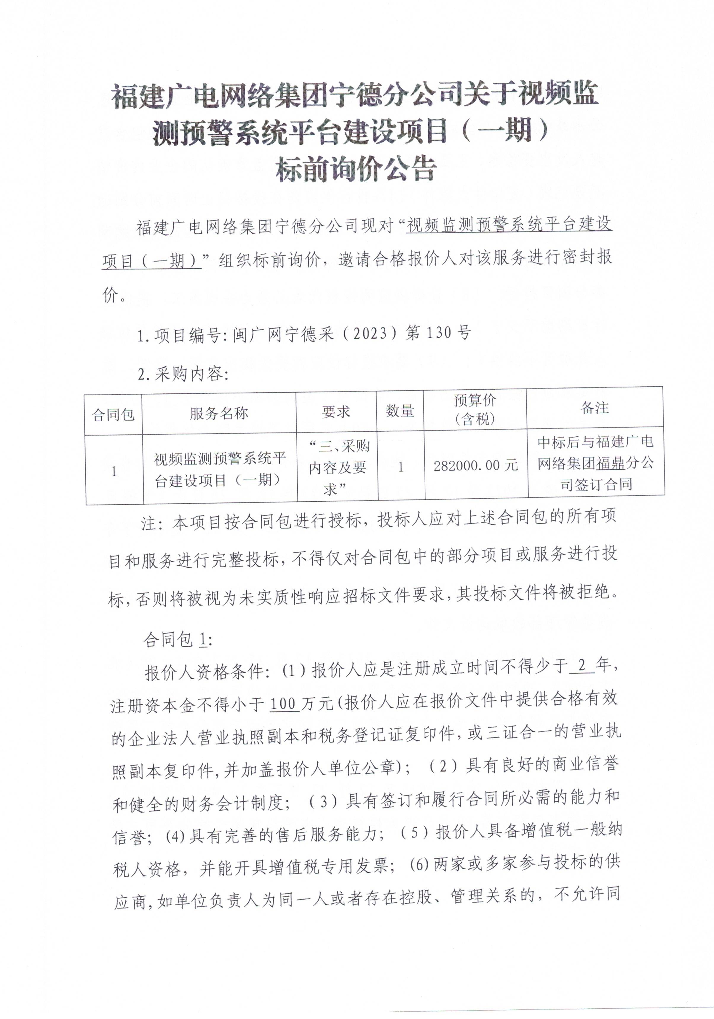 福建广电网络集团宁德分公司关于视频监测预警系统平台建设项目(一期)标前询价公告