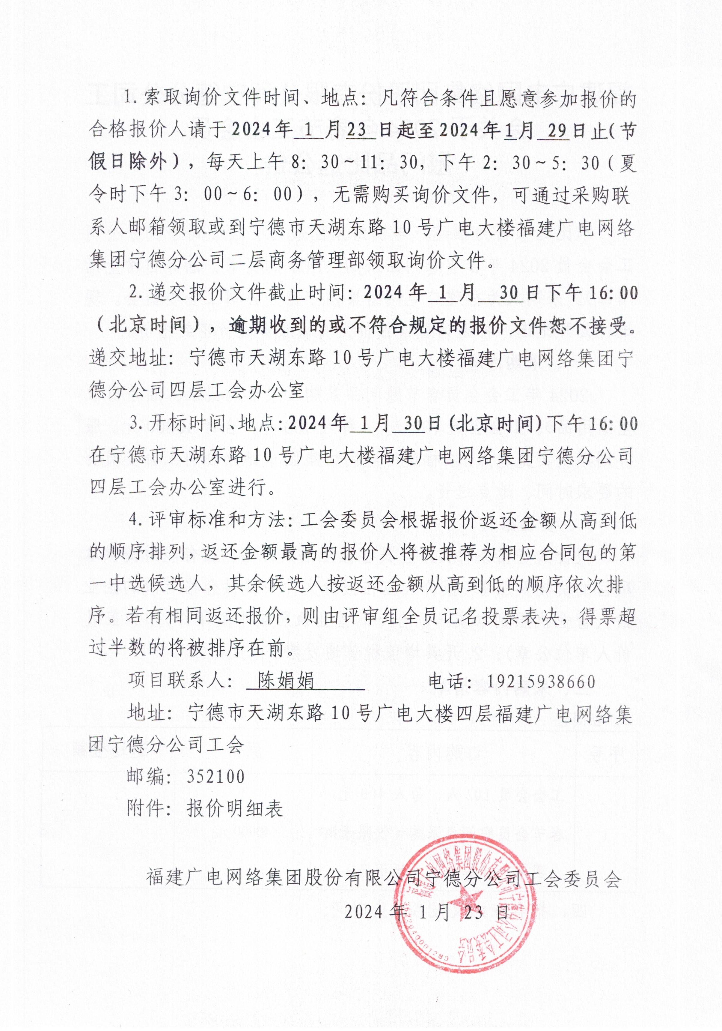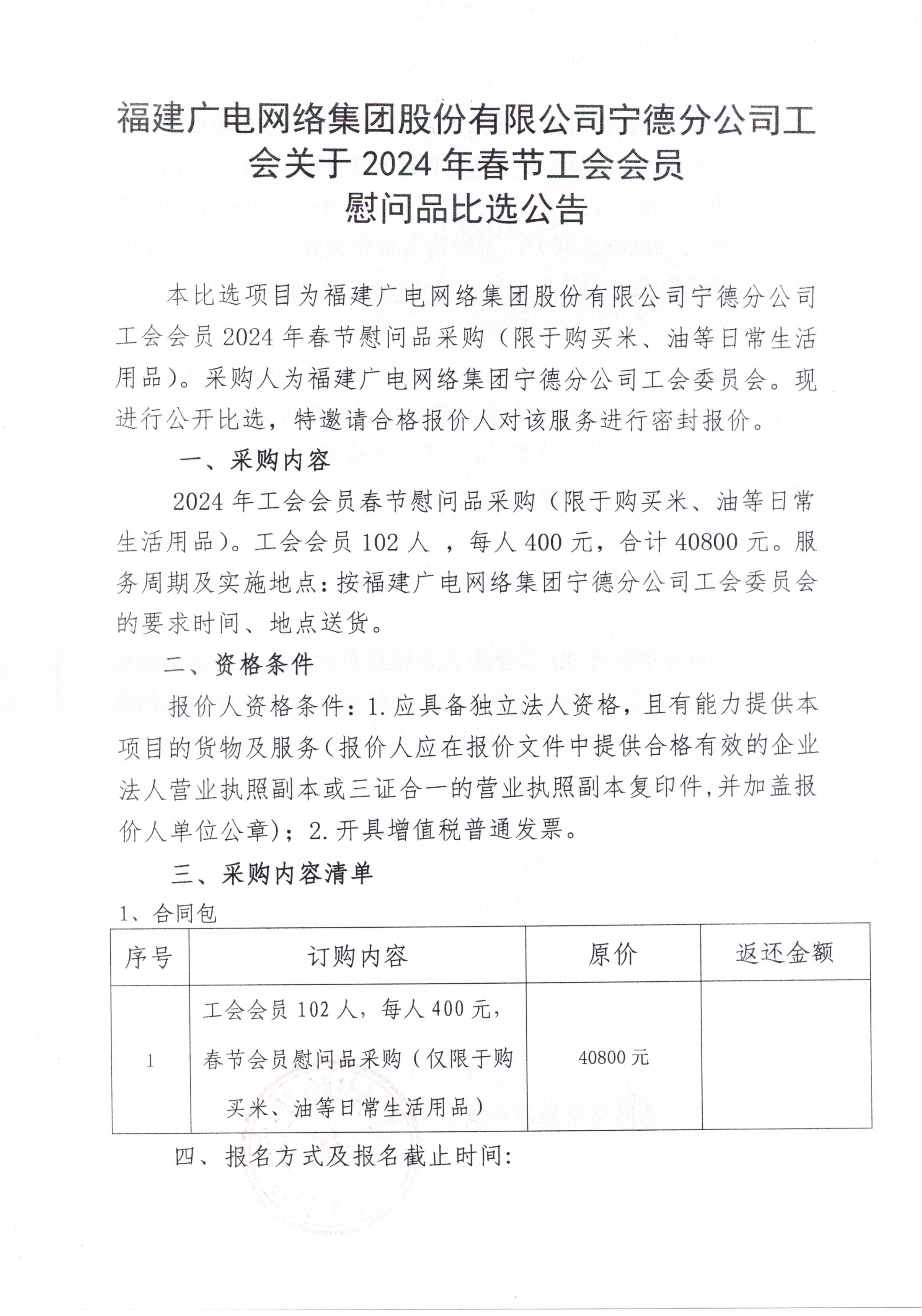 新利网上注册首页(中国)官方网站宁德分公司工会关于2024年春节会员节日慰问品比选公告