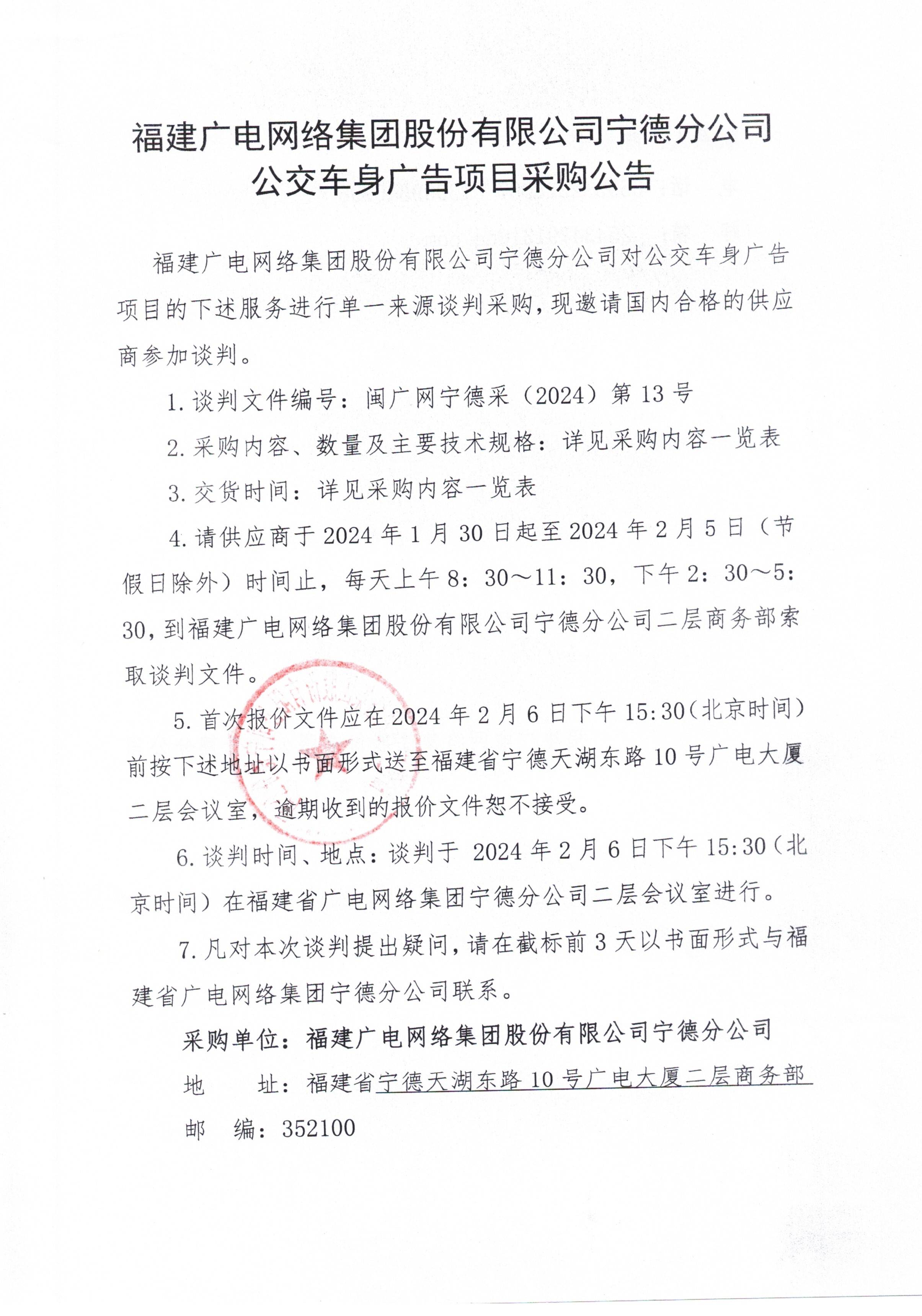 新利网上注册首页(中国)官方网站宁德分公司公交车身广告项目采购公告