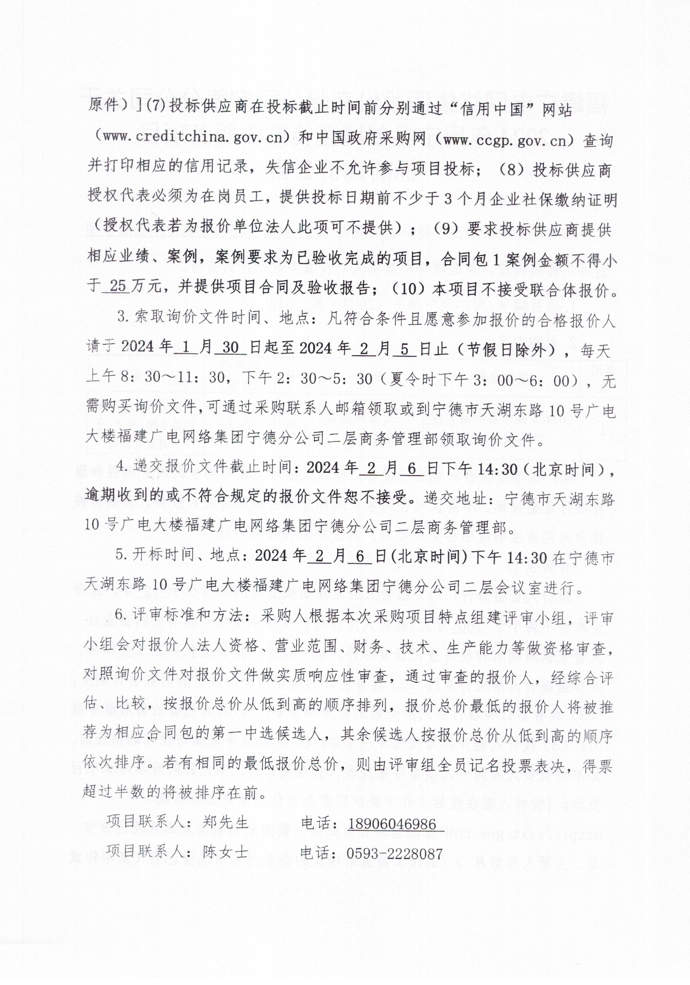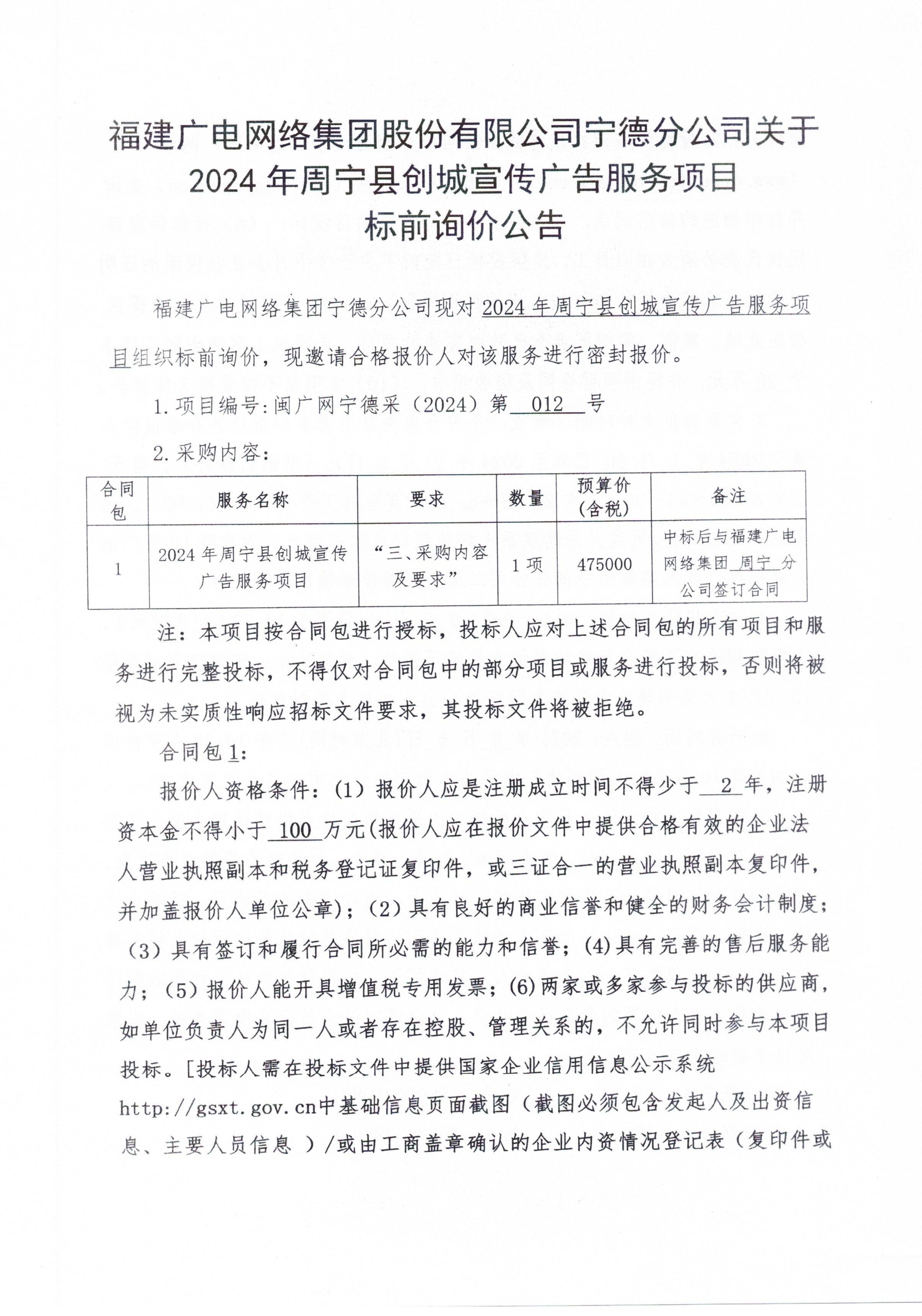 福建广电网络集团宁德分公司关于2024年周宁县创城宣传广告服务项目标前询价公告