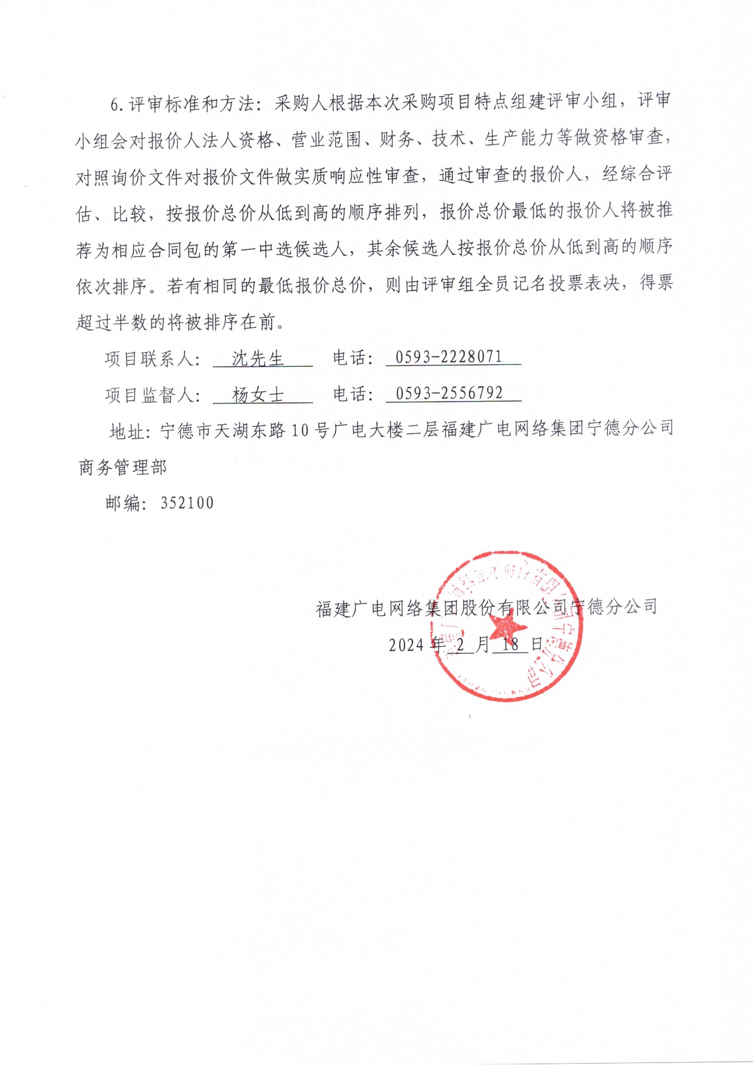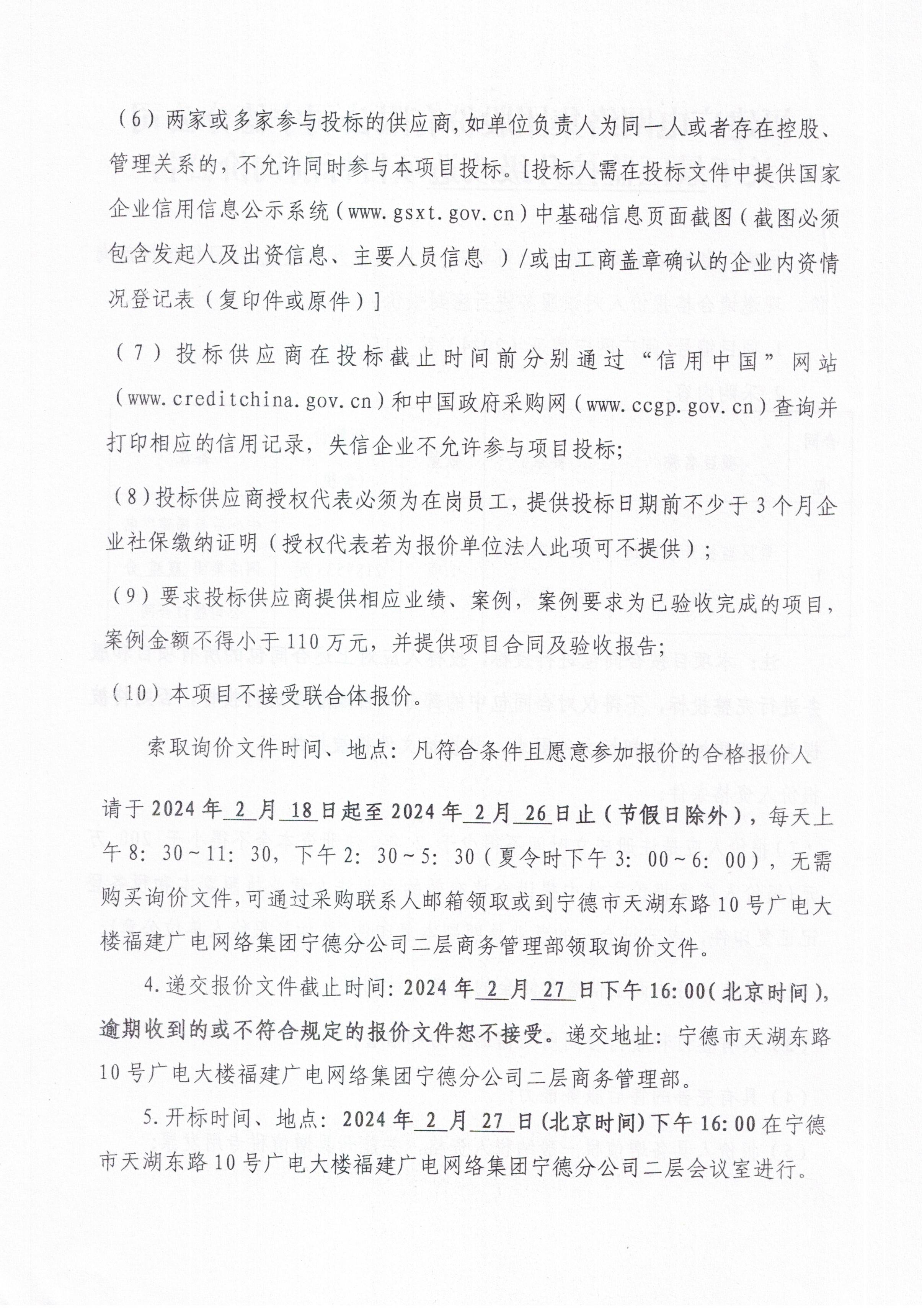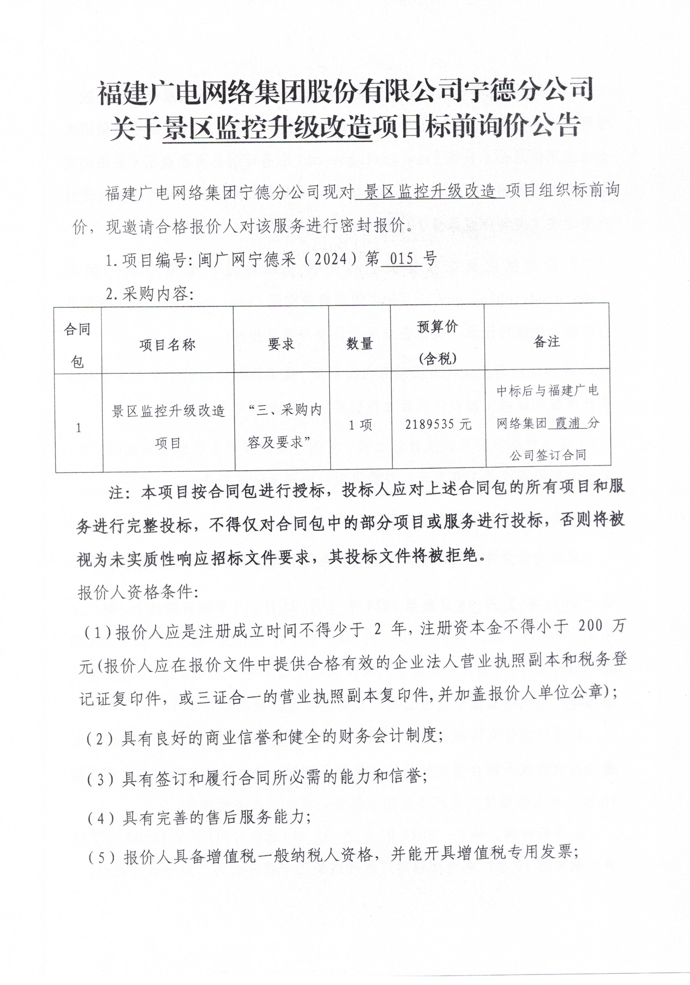 福建广电网络集团宁德分公司关于景区监控升级改造项目标前询价公告