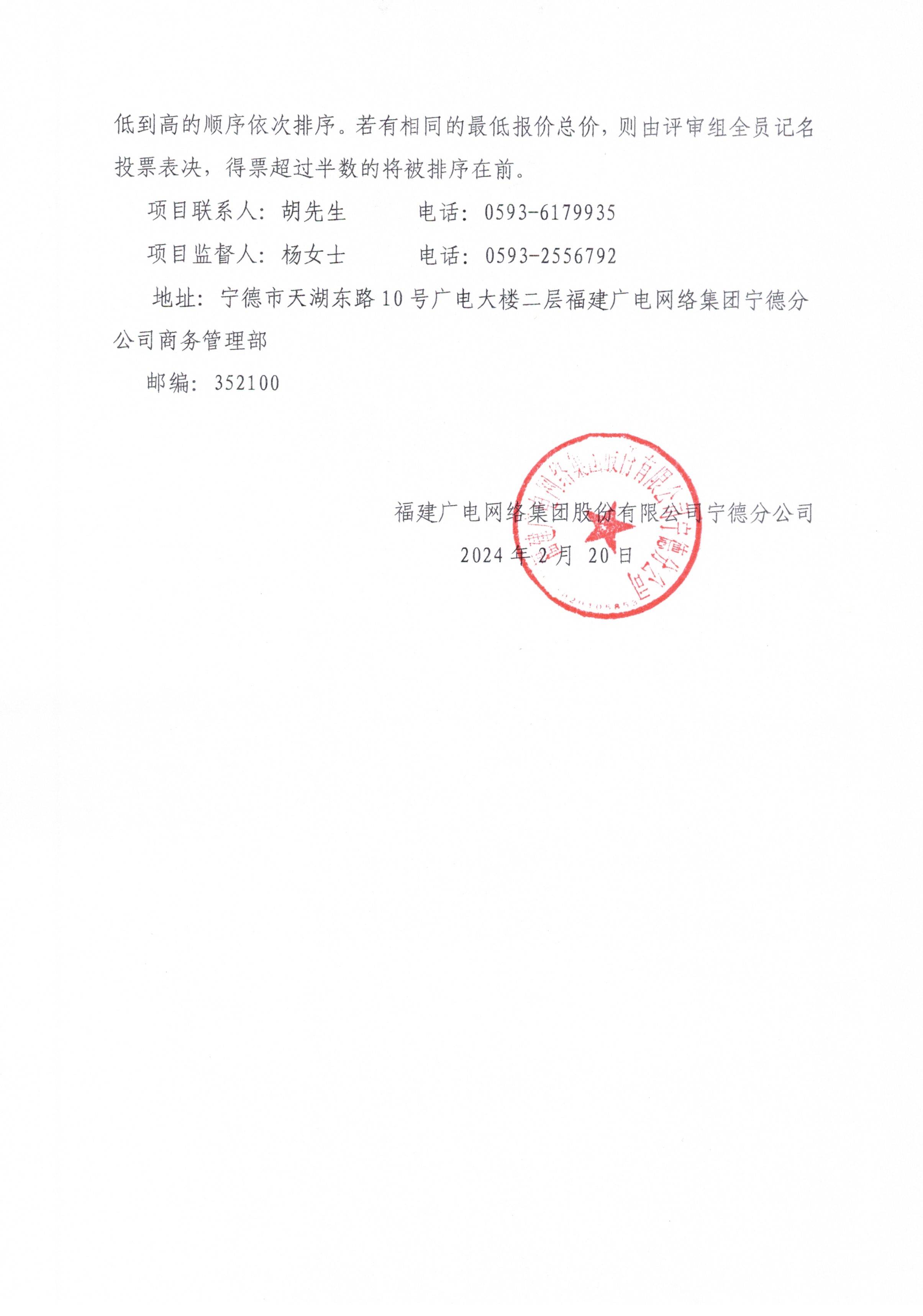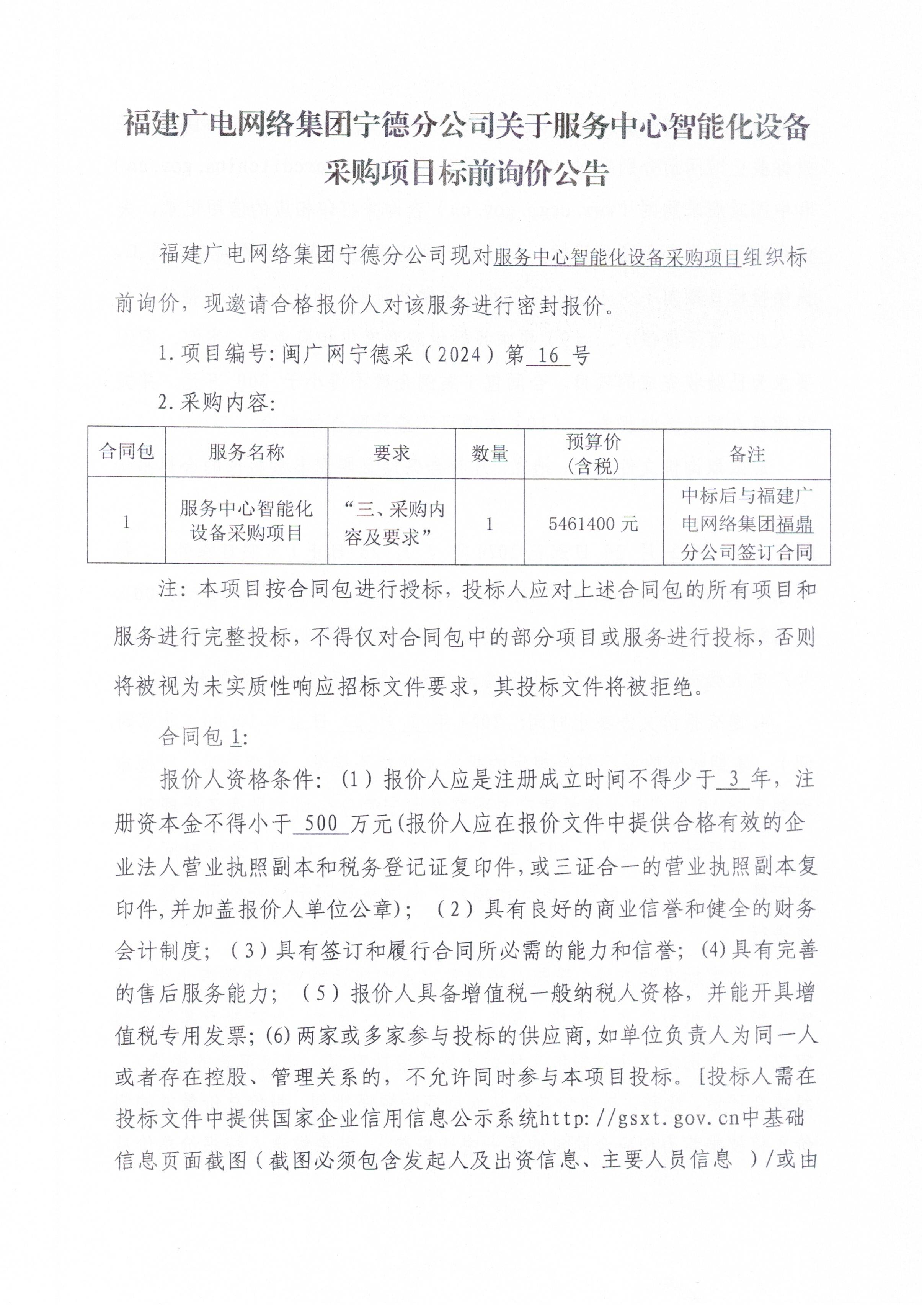 福建广电网络集团宁德分公司关于服务中心智能化设备采购项目标前询价公告