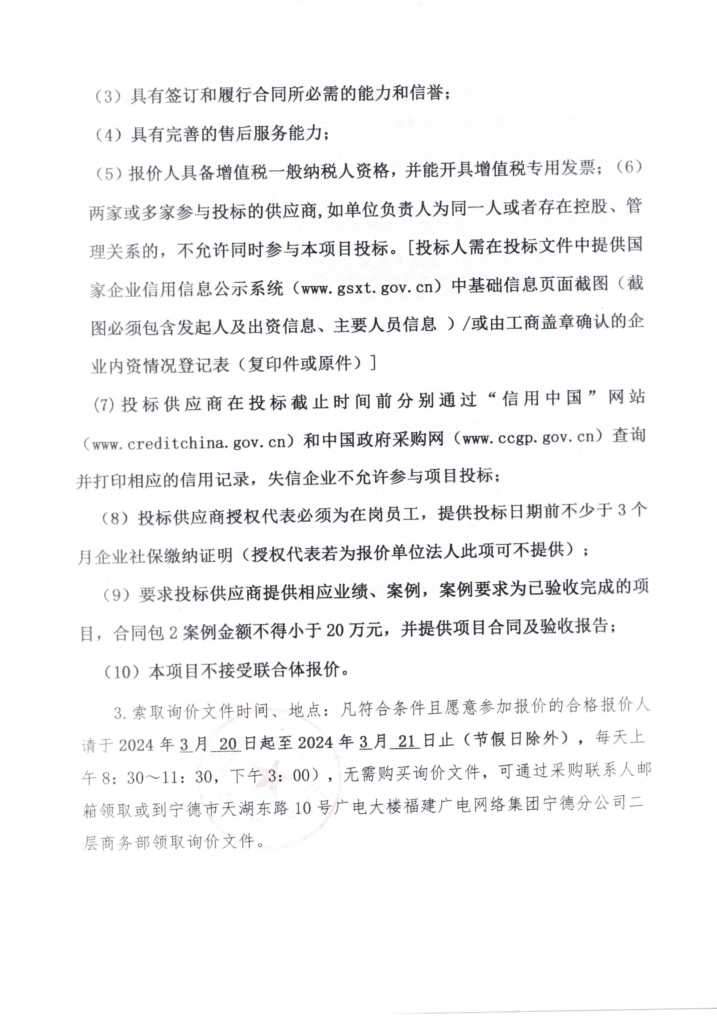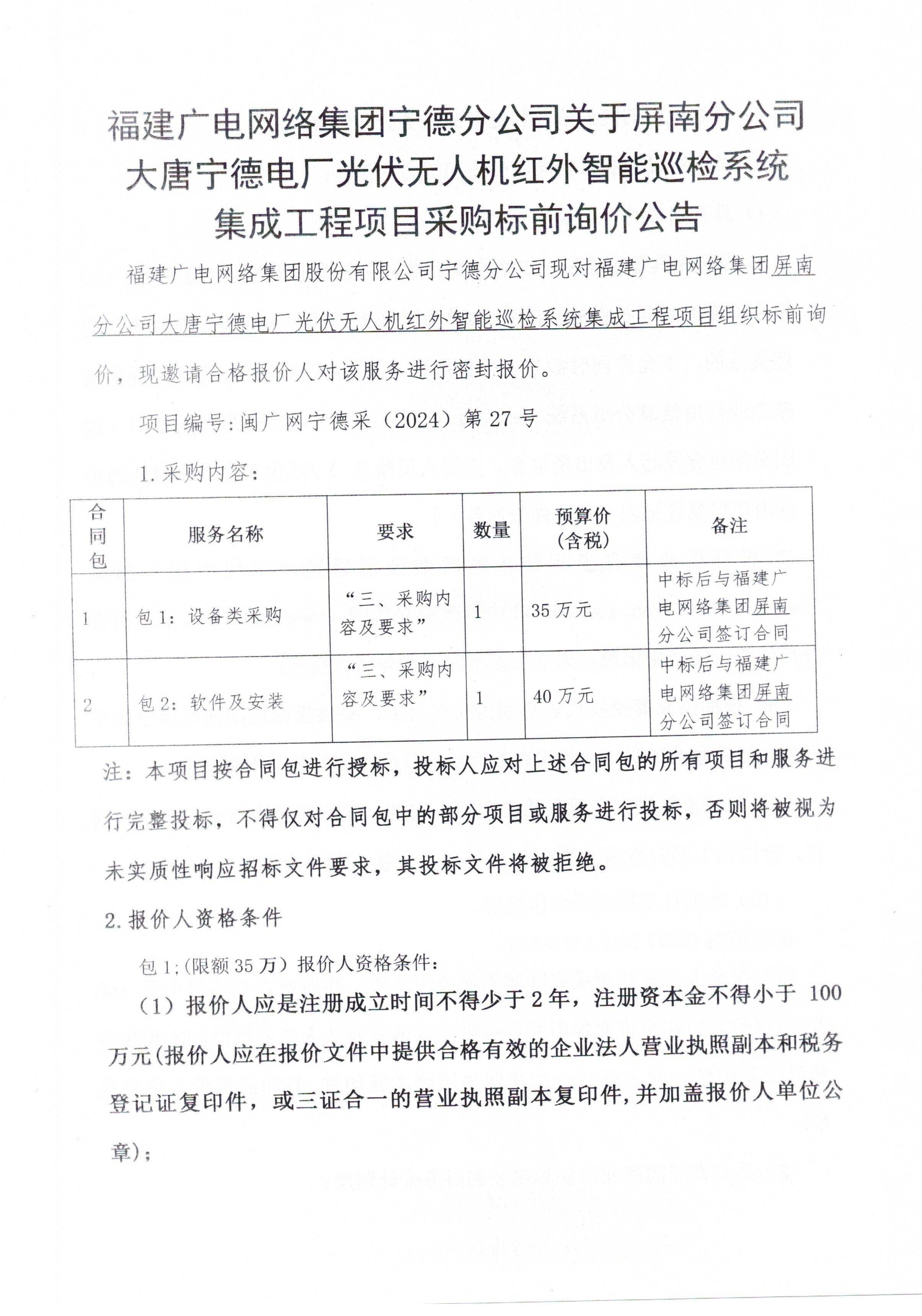 福建广电网络集团屏南分公司关于大唐宁德电厂光伏无人机红外智能巡检系统集成工程项目采购标前询价公告