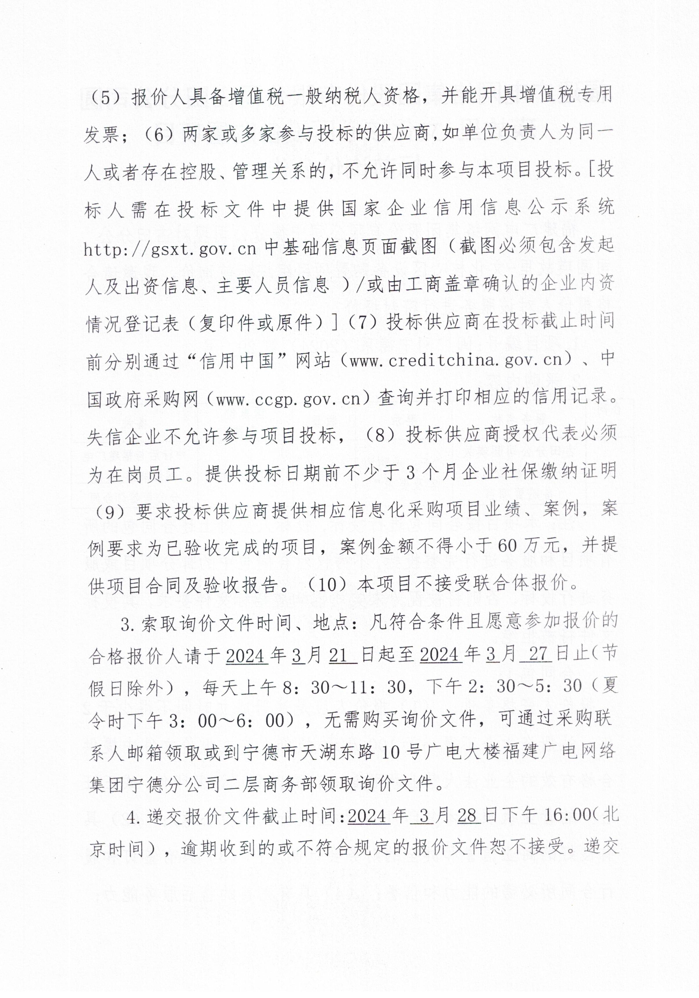 福建广电网络集团古田分公司圆瑛故里-文化核心区设备购置项目标前询价公告