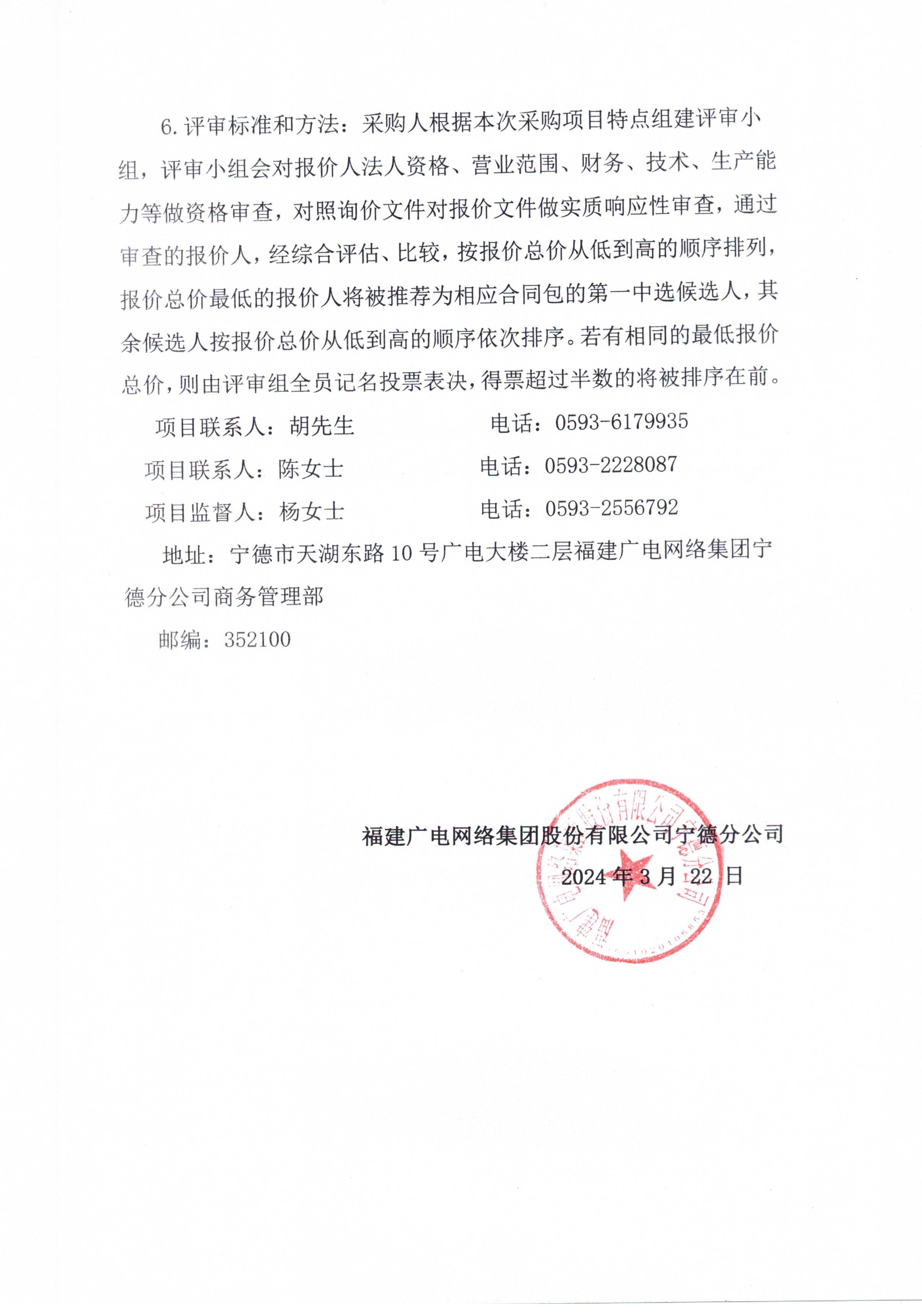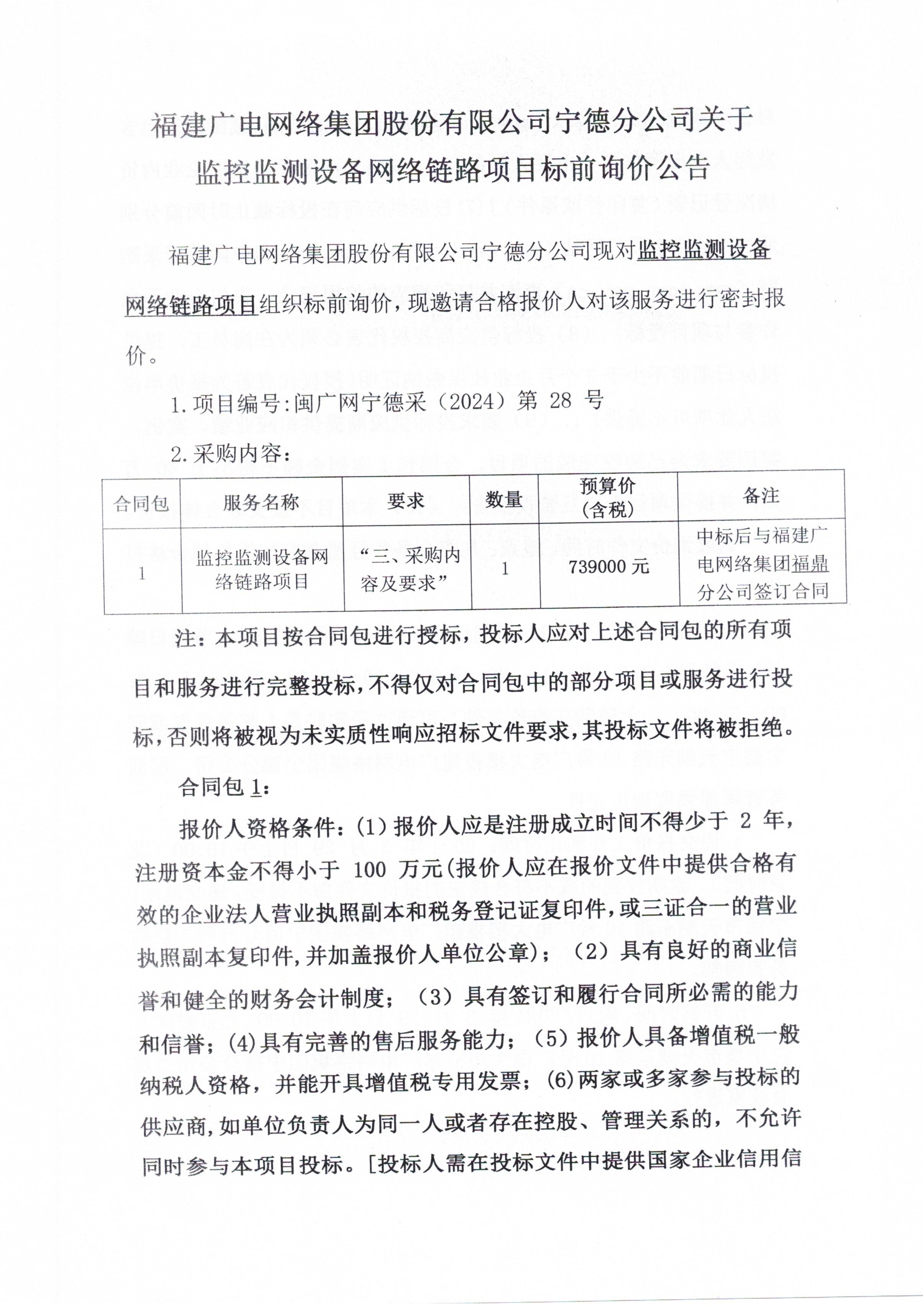 福建广电网络集团宁德分公司关于福鼎市城市管理监控监测设备网络链路项目标前询价公告