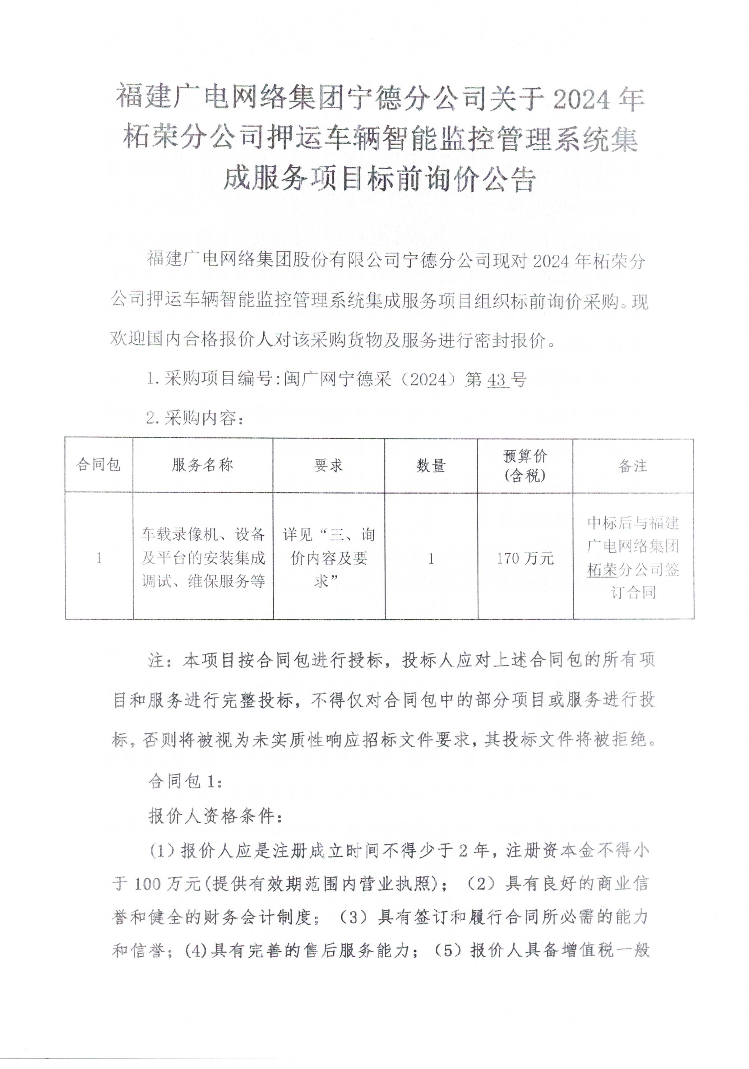 2024年柘荣分公司押运车辆智能监控管理系统集成服务项目