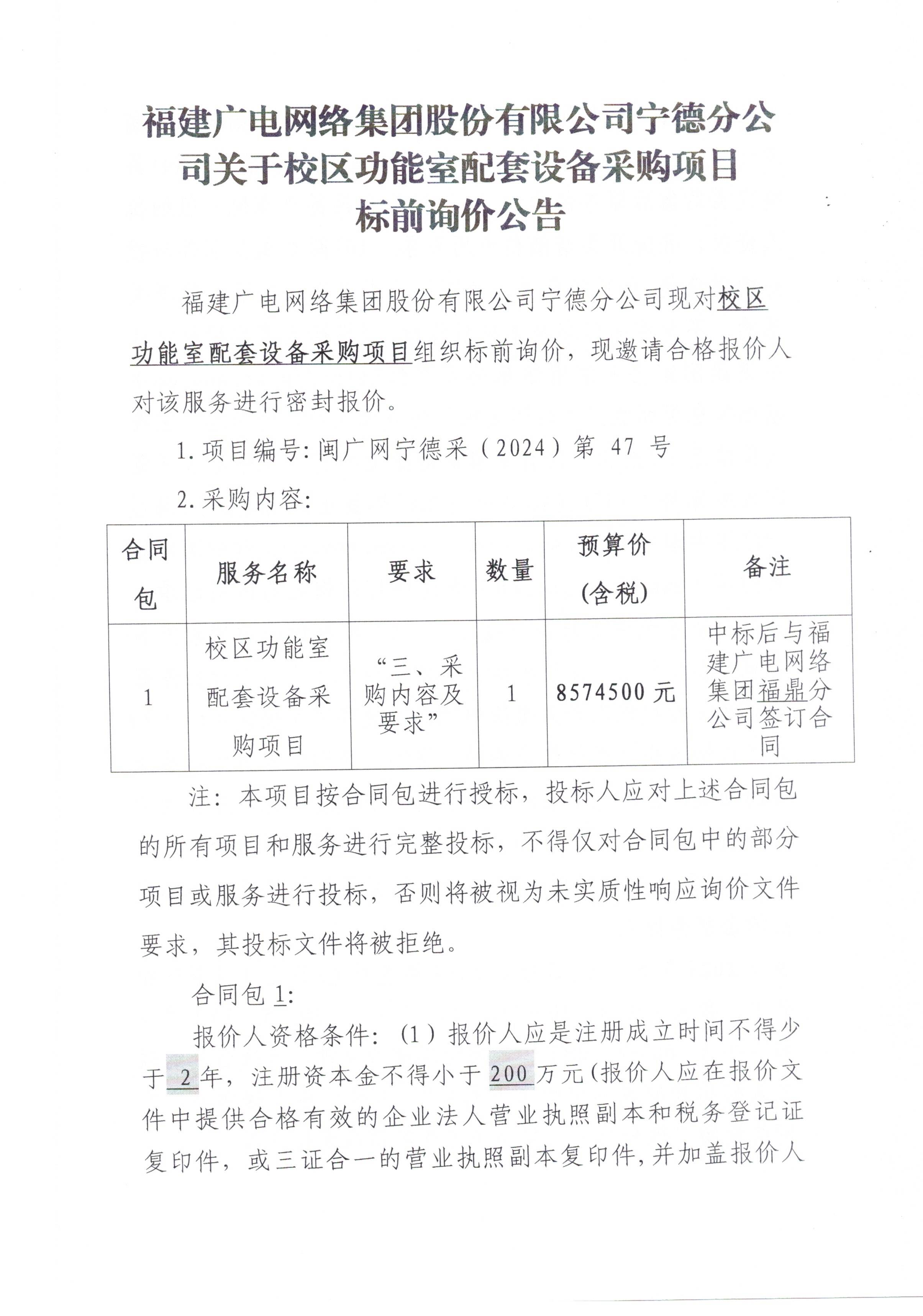 新利网上注册首页(中国)官方网站宁德分公司关于校区功能室配套设备采购项目