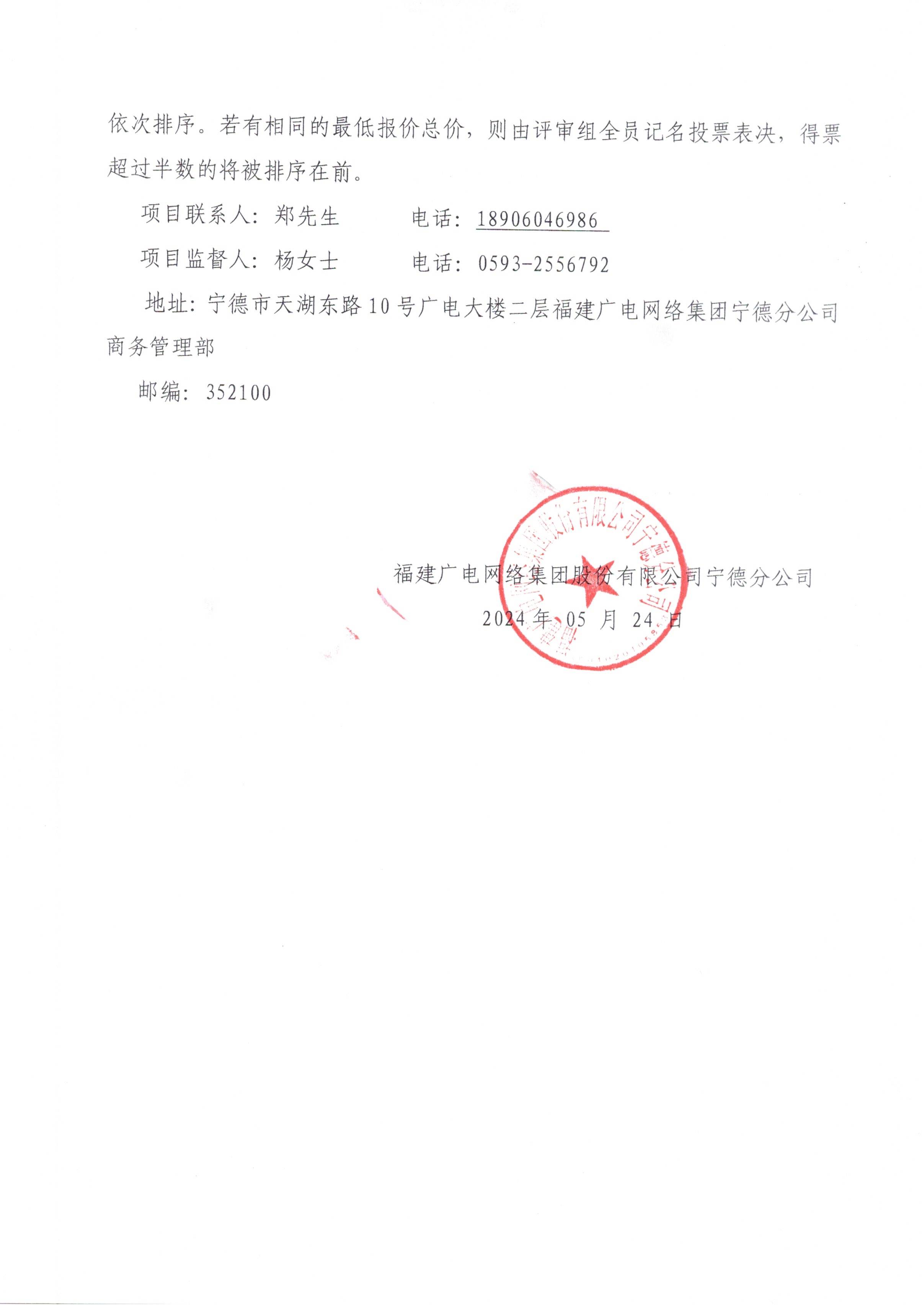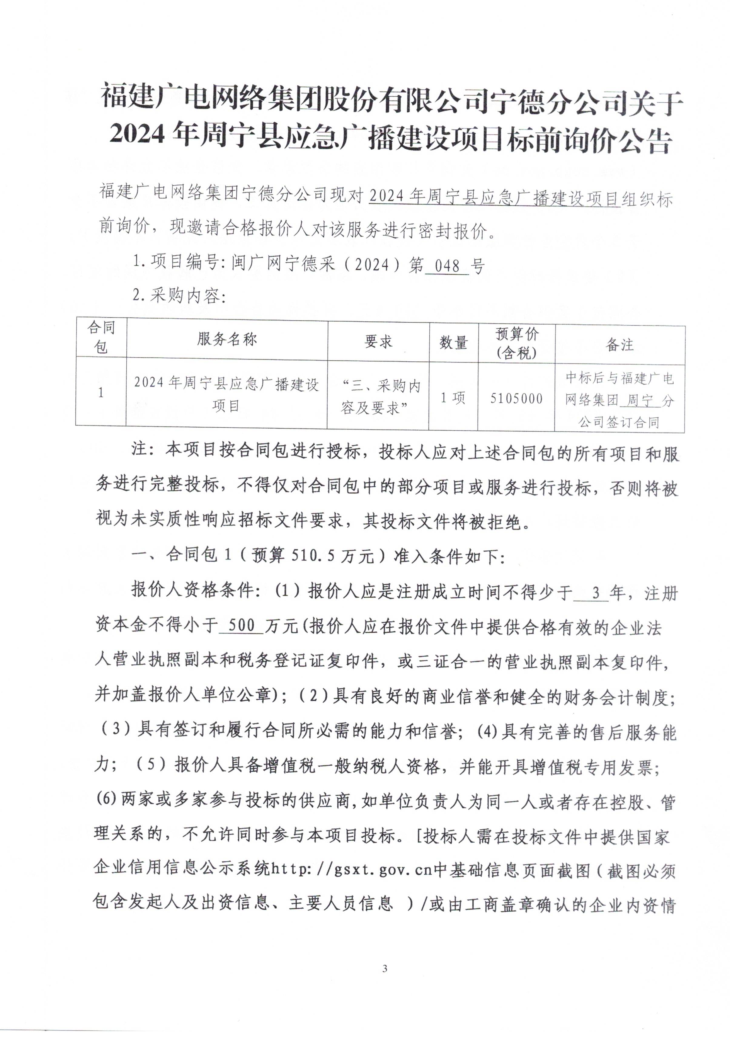 新利网上注册首页(中国)官方网站宁德分公司关于2024年周宁县应急广播建设项目标前询价公告
