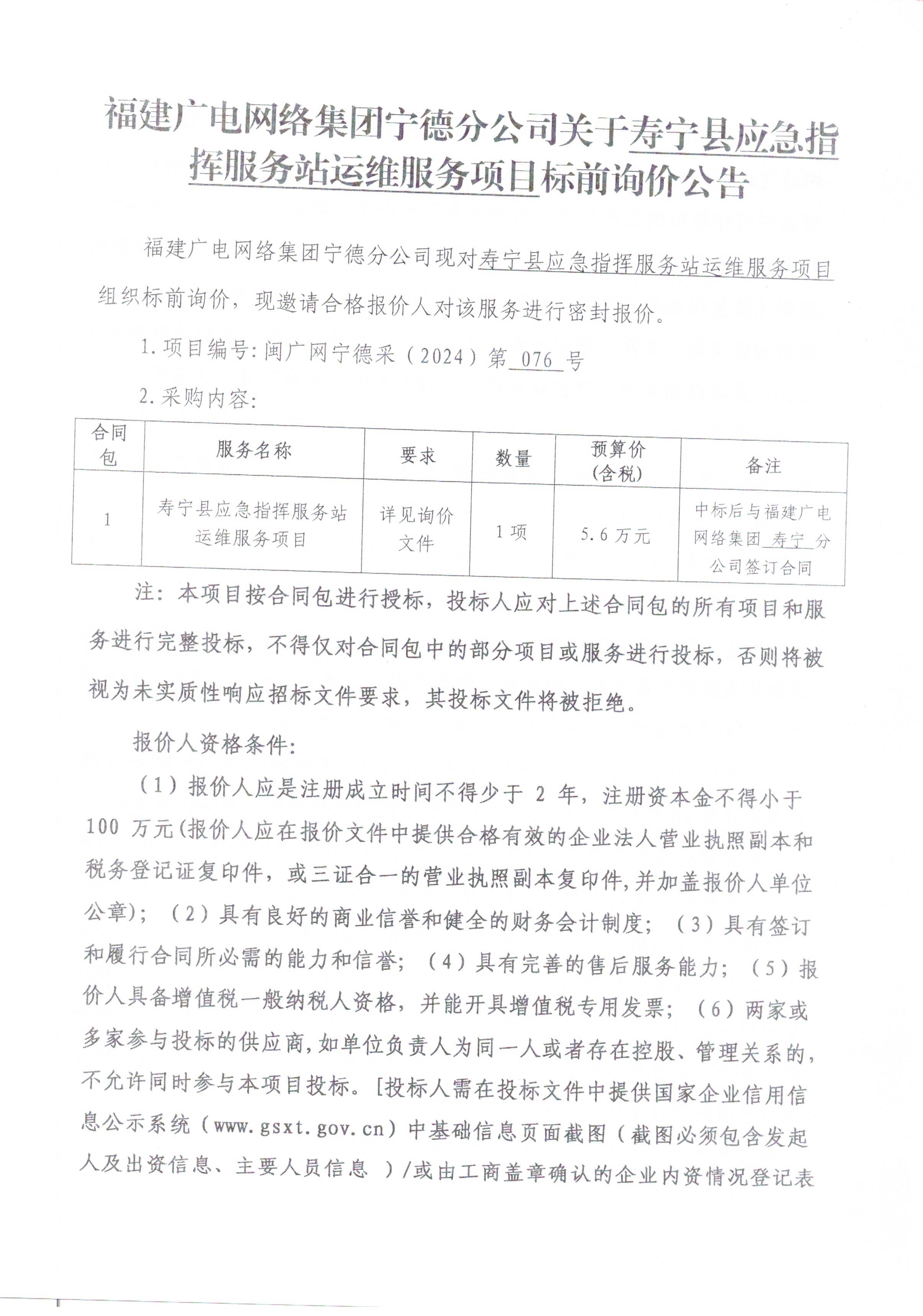 福建广电网维集团宁德分公司关于寿宁县应急指挥服务站运维服务项目