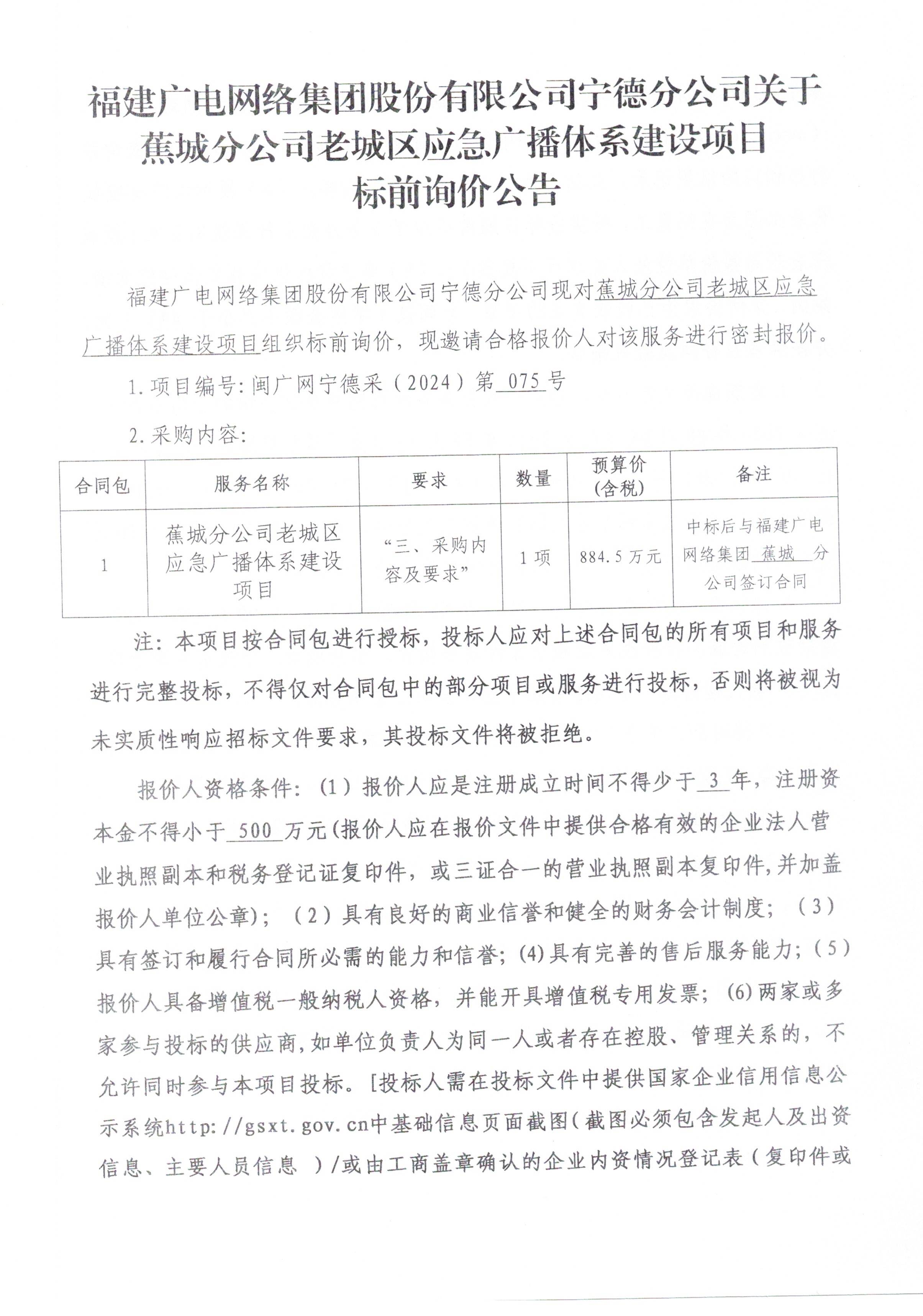 新利网上注册首页(中国)官方网站宁德分公司关于蕉城区应急广播体系建设项目
