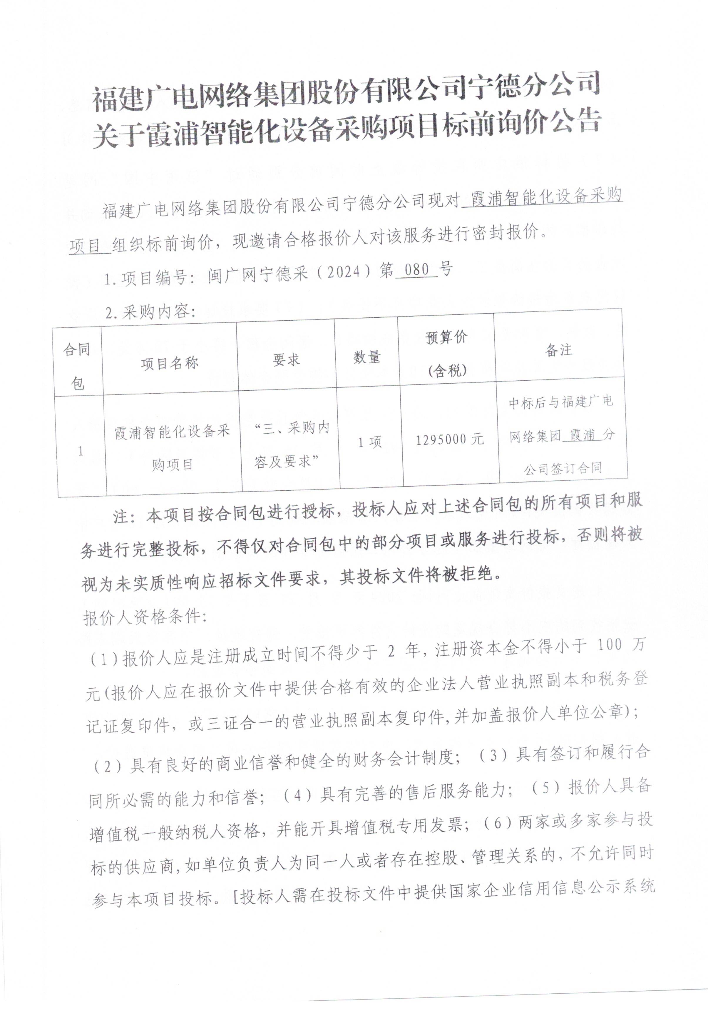 新利网上注册首页(中国)官方网站宁德分公司关于霞浦智能化设备采购项目