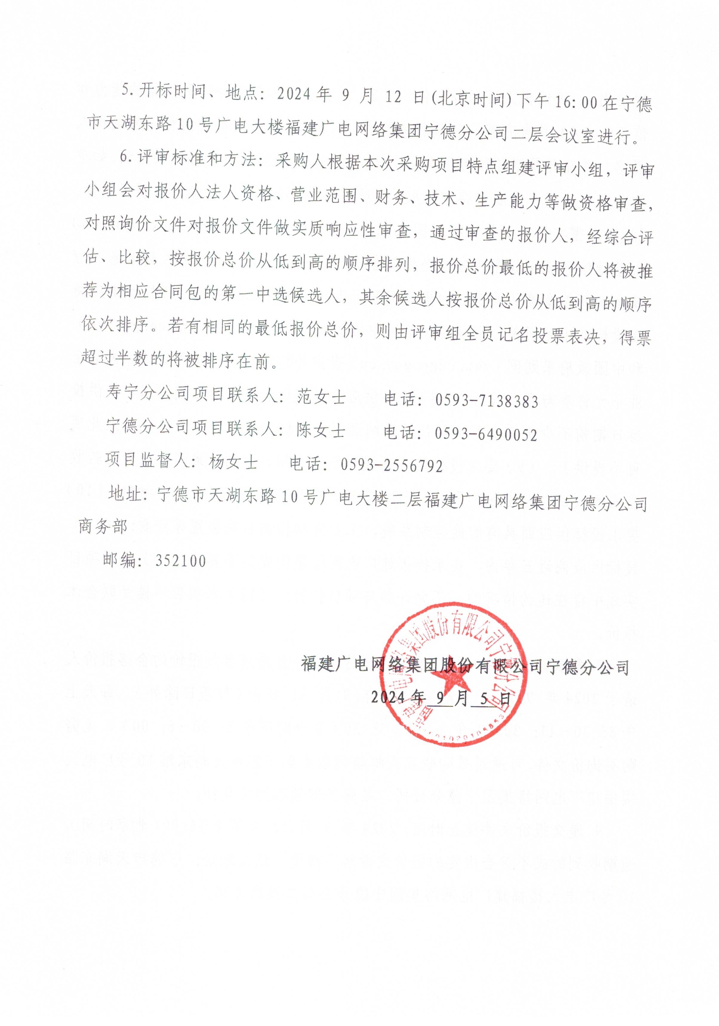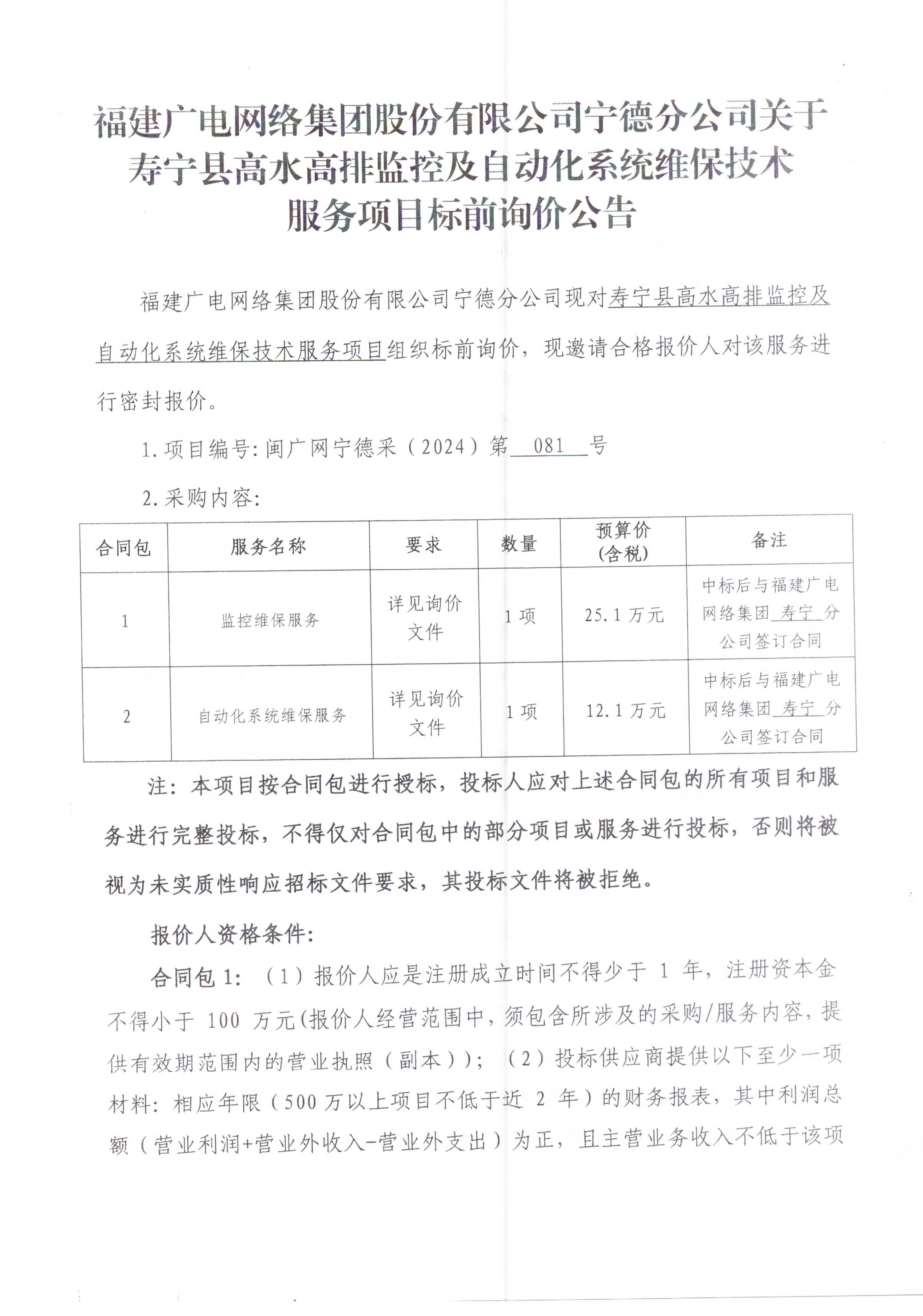 福建省广电网络集团股份有限公司宁德分公司关于寿宁县高水高排监控及自动化系统维保技术服务项目