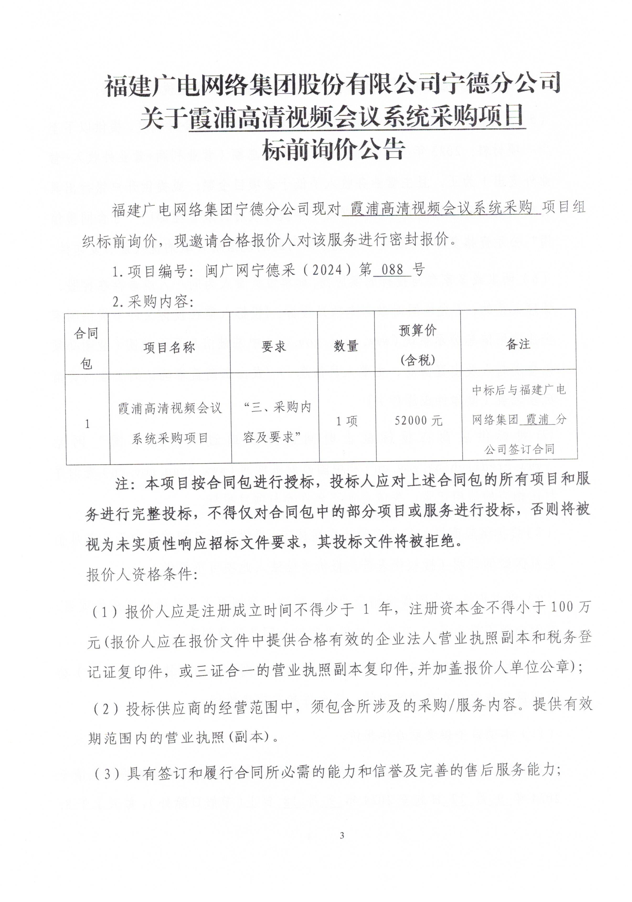 新利网上注册首页(中国)官方网站霞浦分公司高清视频会议系统采购项目