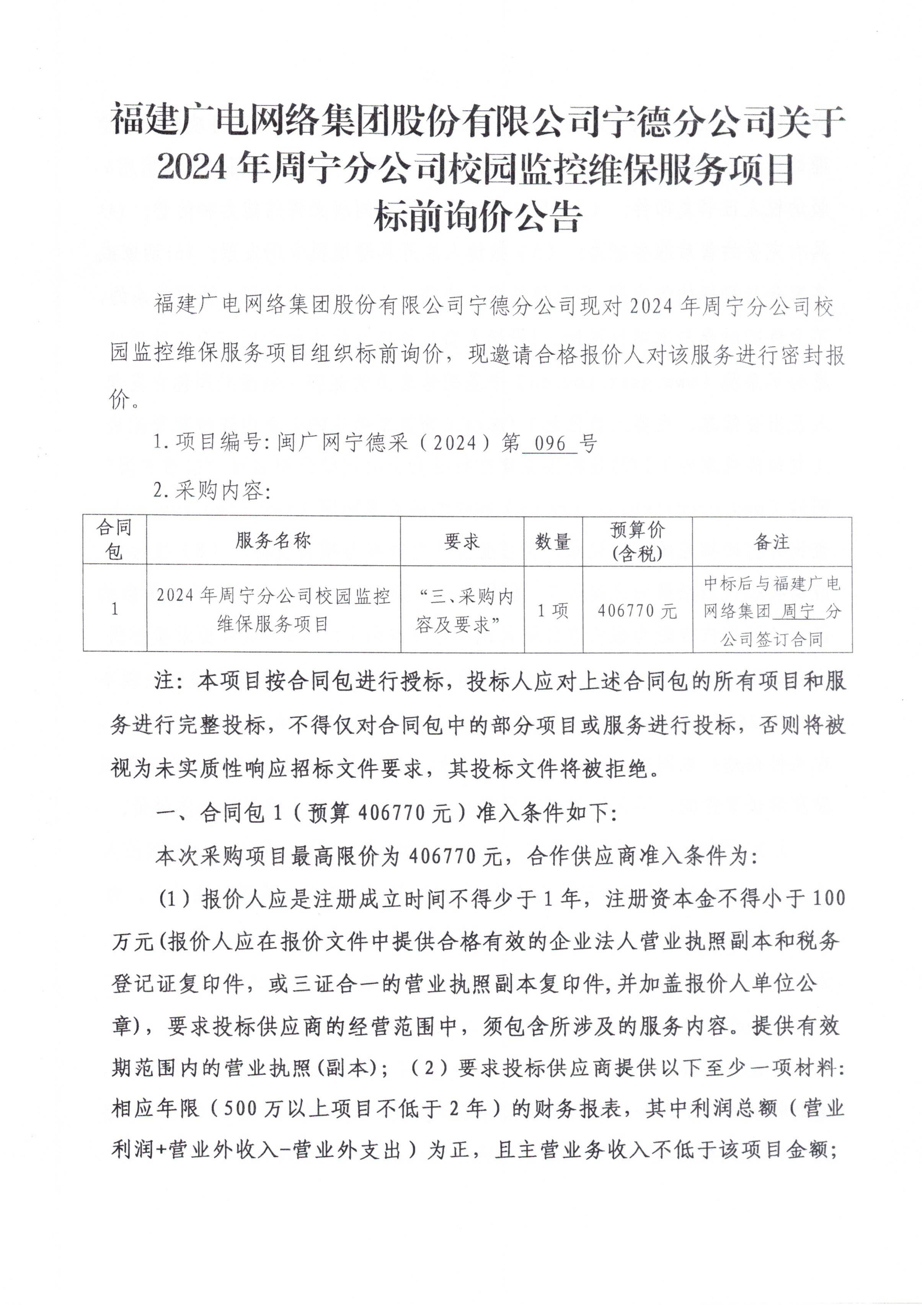 2024年周宁分公司校园监控维保服务项目