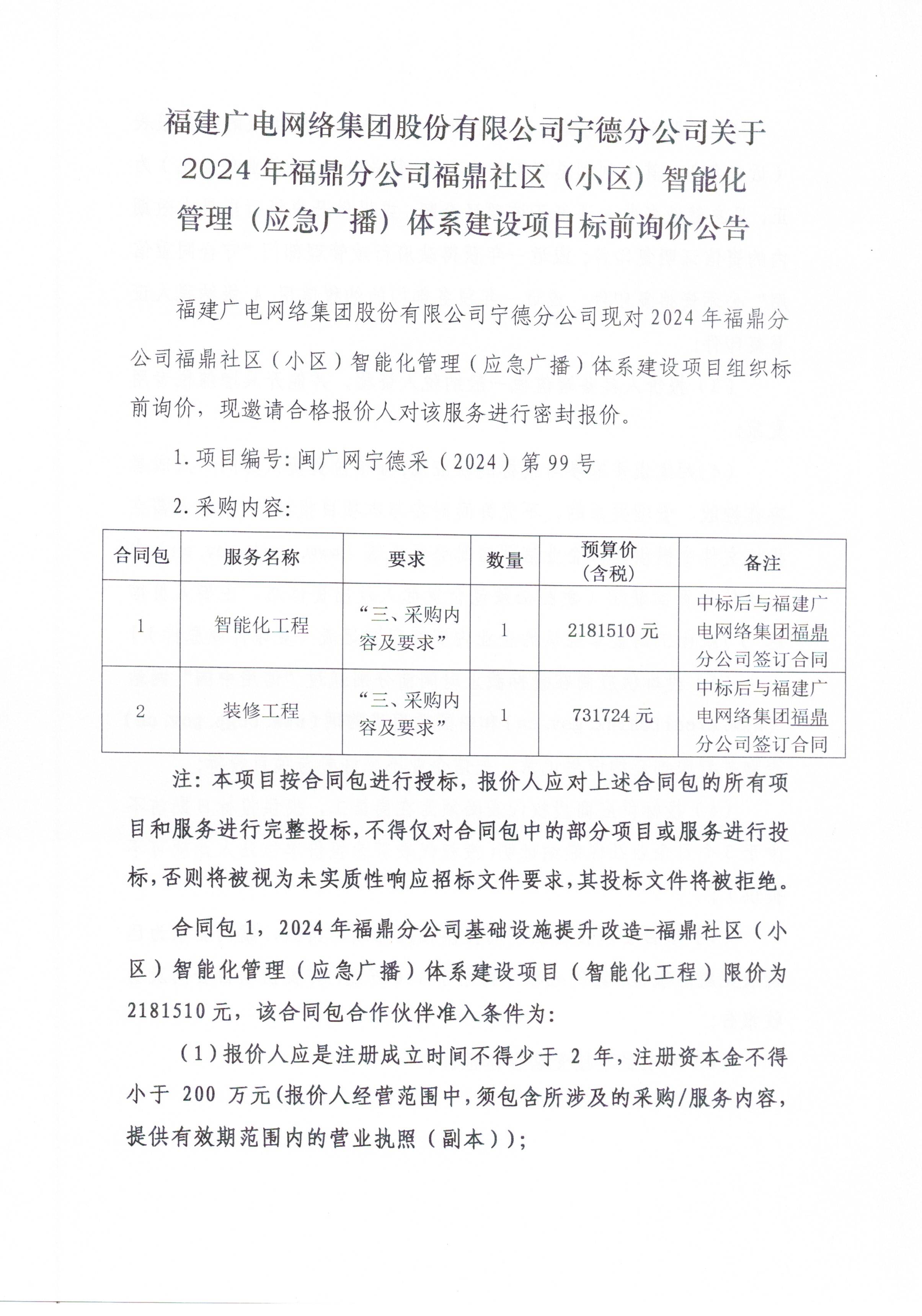 2024年福鼎分公司福鼎社区(小区)智能化管理(应急广播)体系建设项目(标前询价)