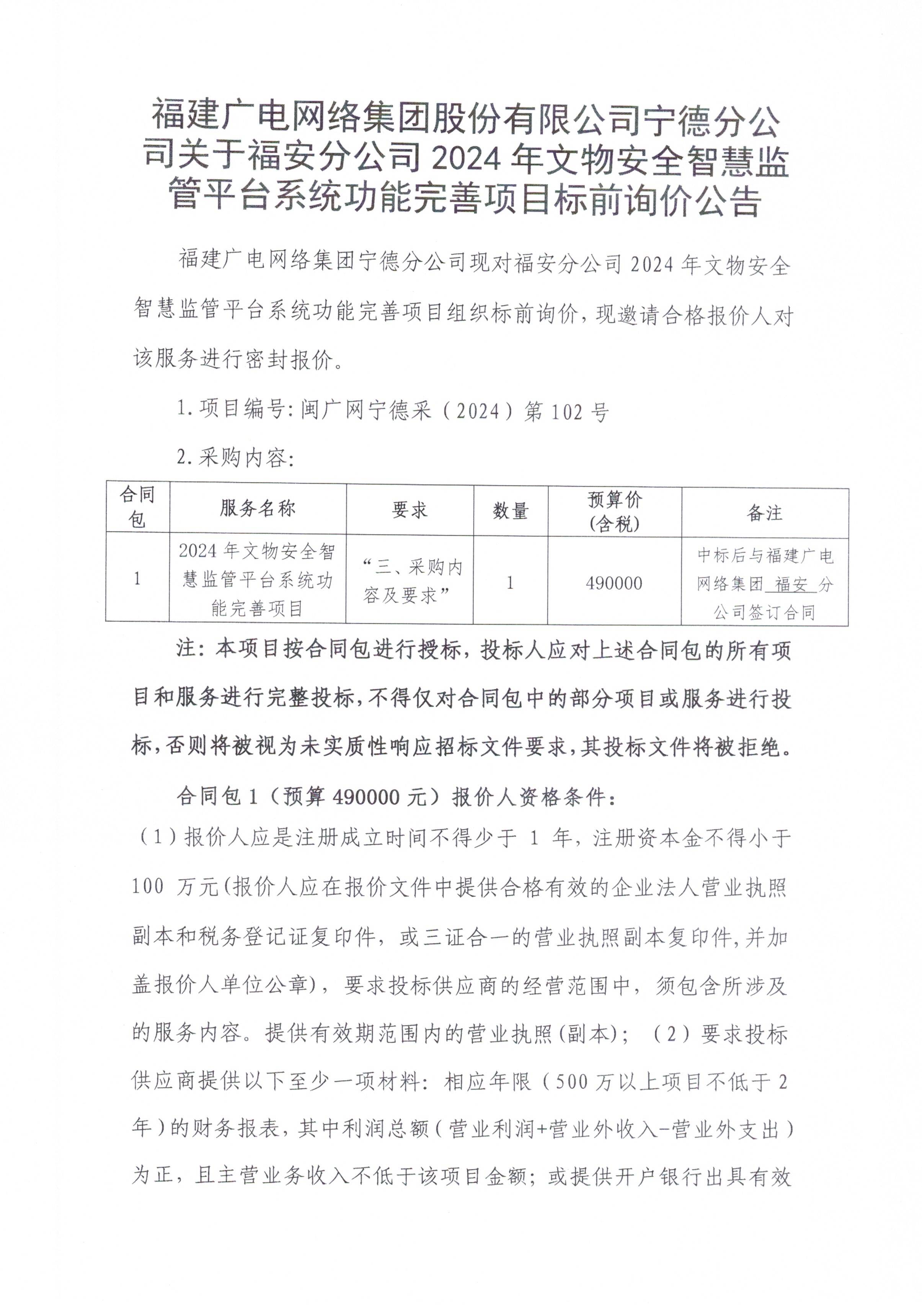 文物安全智慧监管平台系统功能完善项目