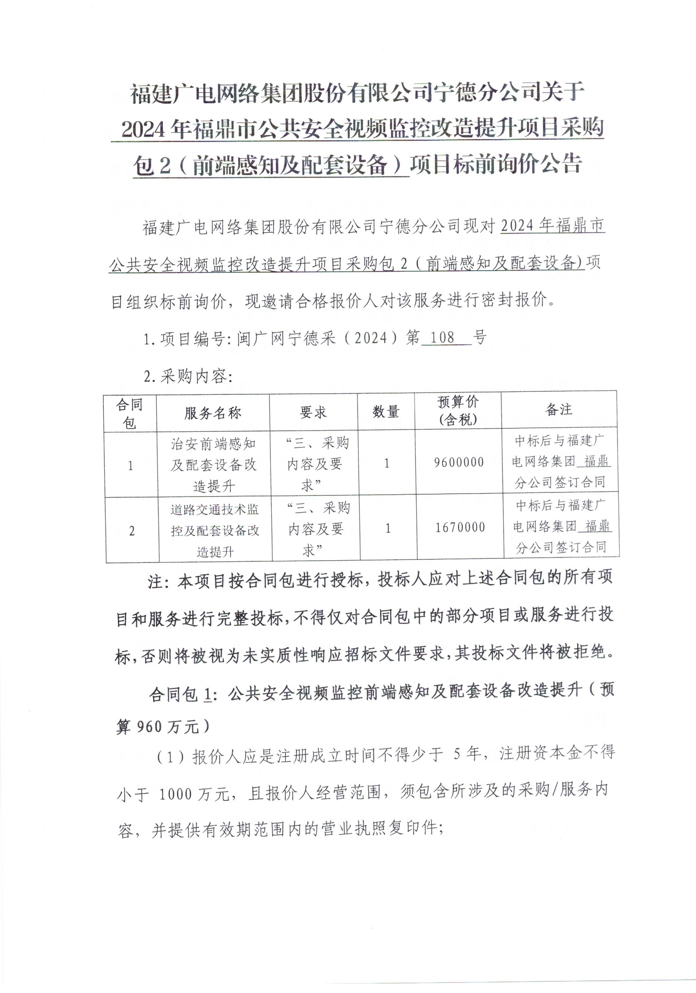 2024年福鼎市公共安全视频监控改造提升项目包二(前端感知及配套服务)